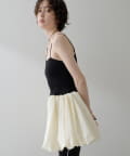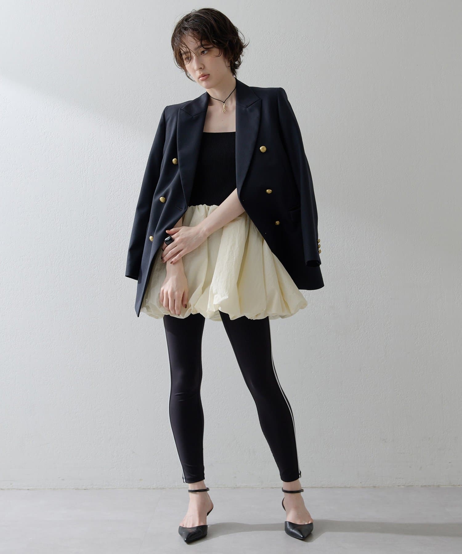 ■一枚ではもちろん、ジャケットやニットを重ねて裾からバルーン部分を覗かせるスタイリングもおすすめ。