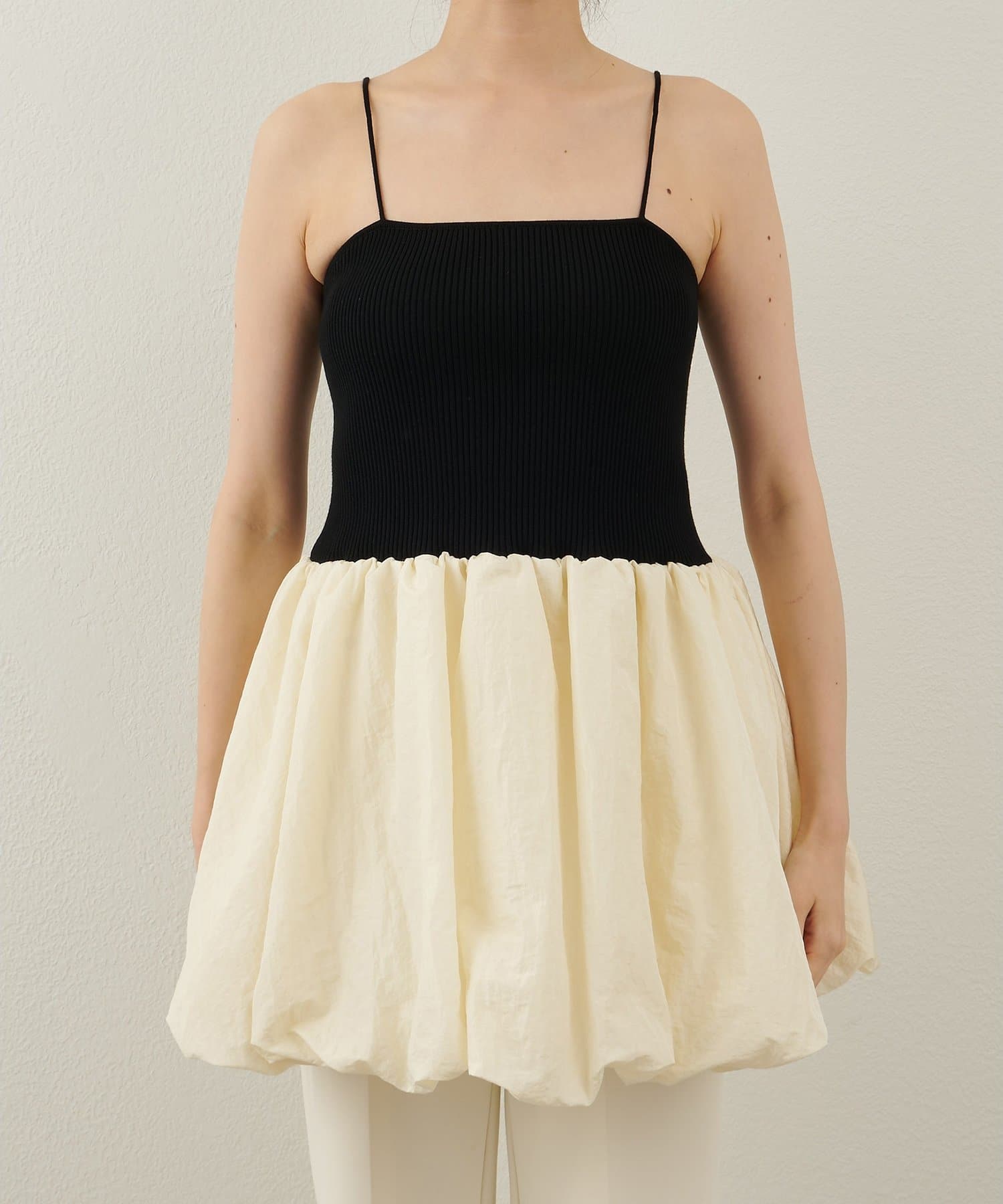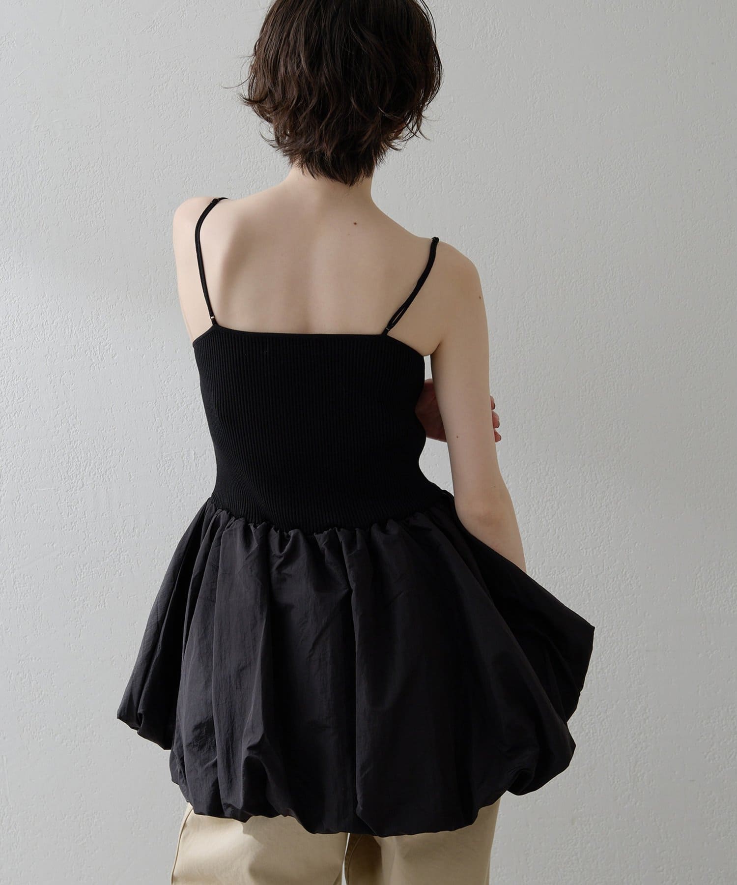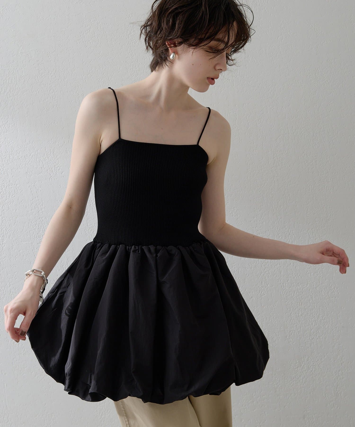 ■ニットとタフタ素材がドッキングしたキャミソールニット。