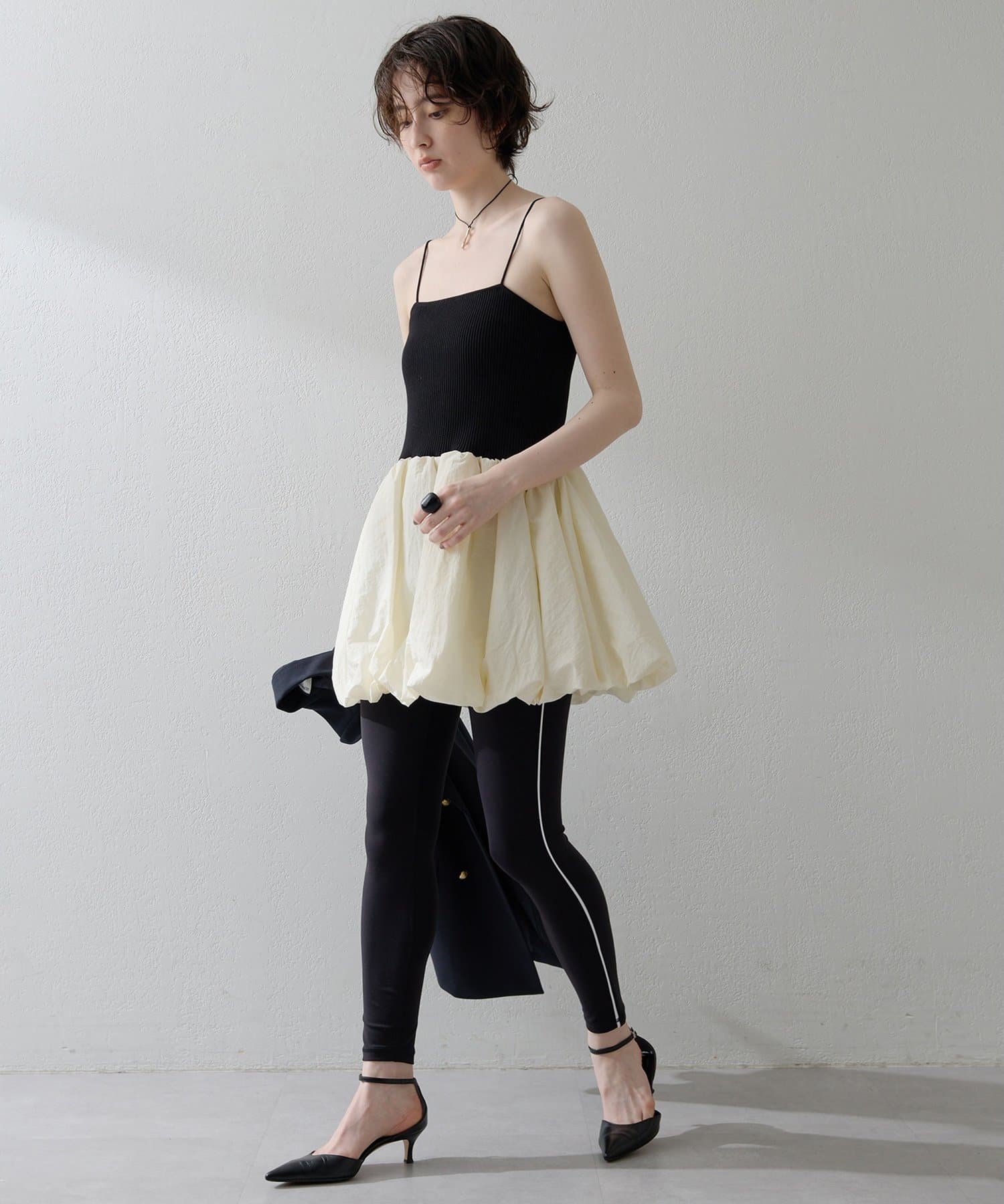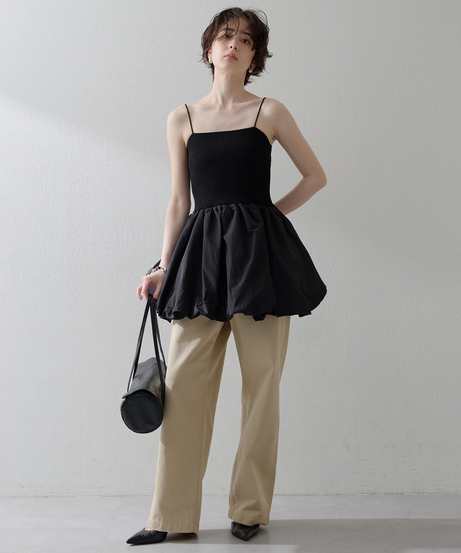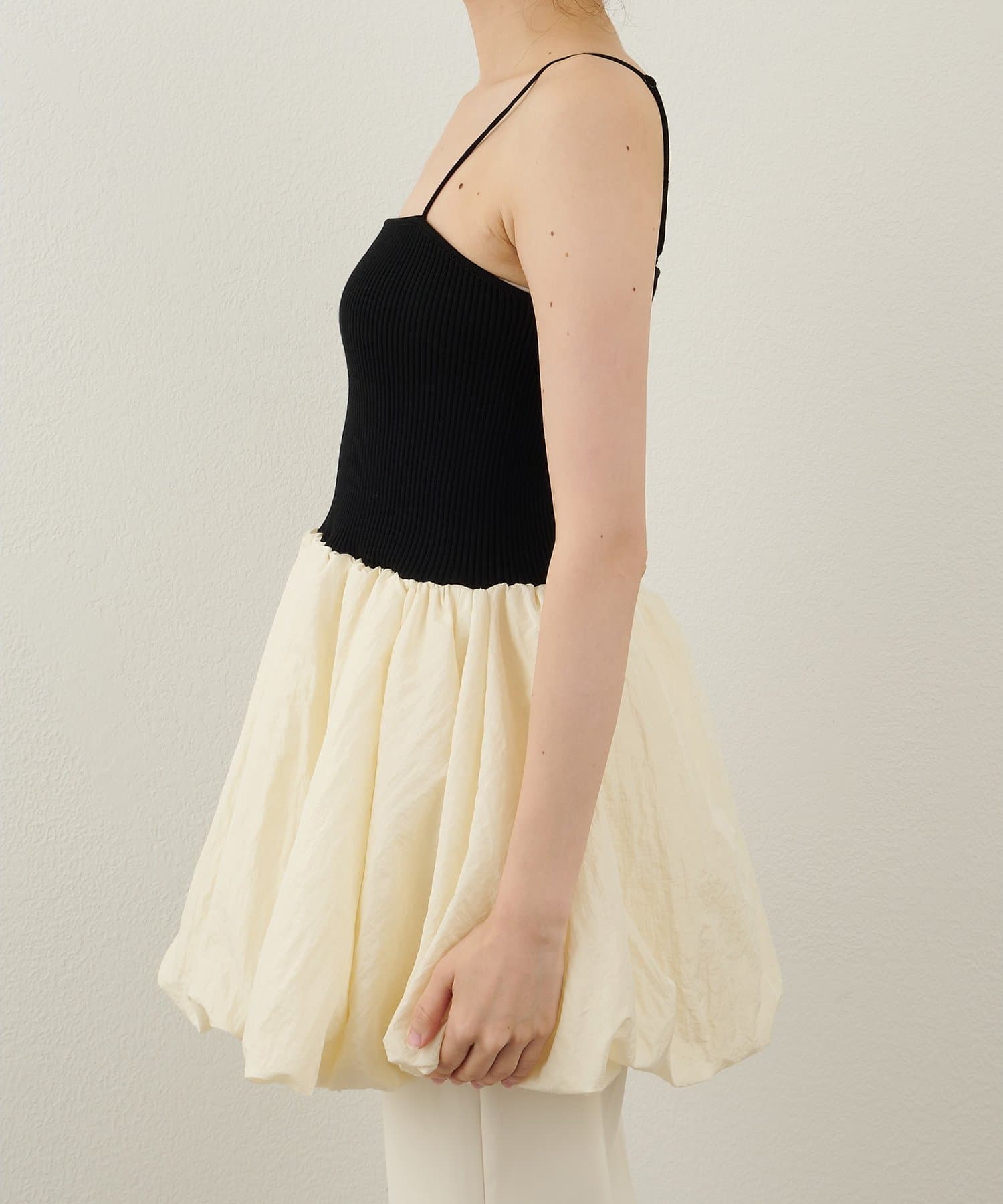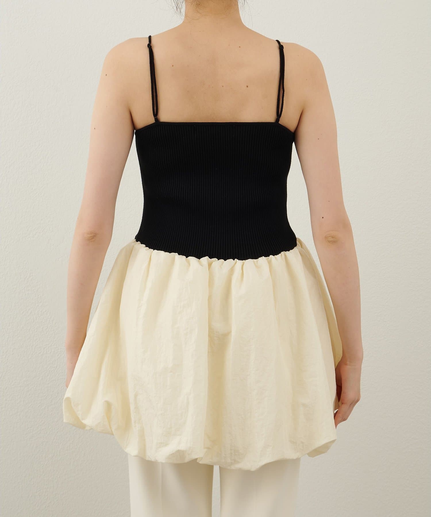 ■ニットとタフタ素材がドッキングしたキャミソールニット。