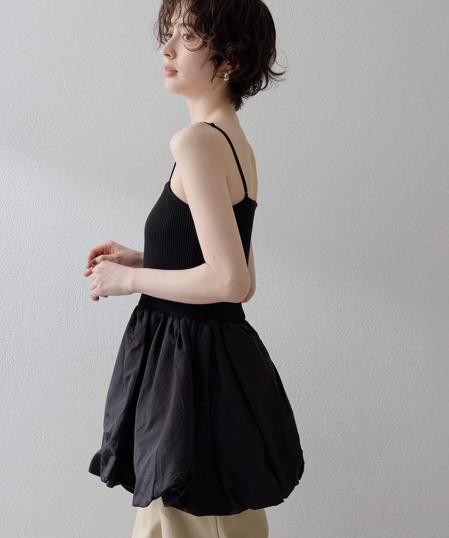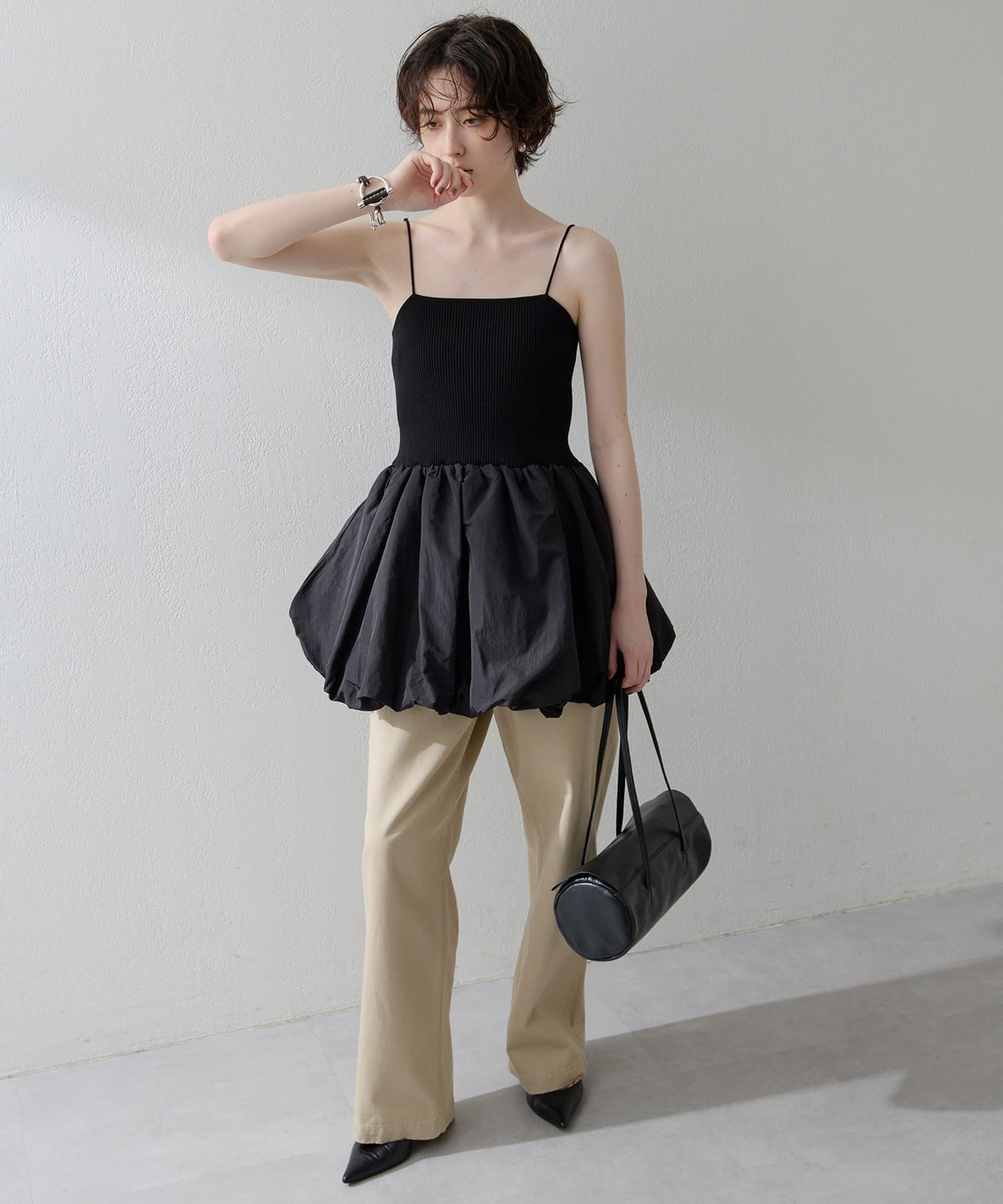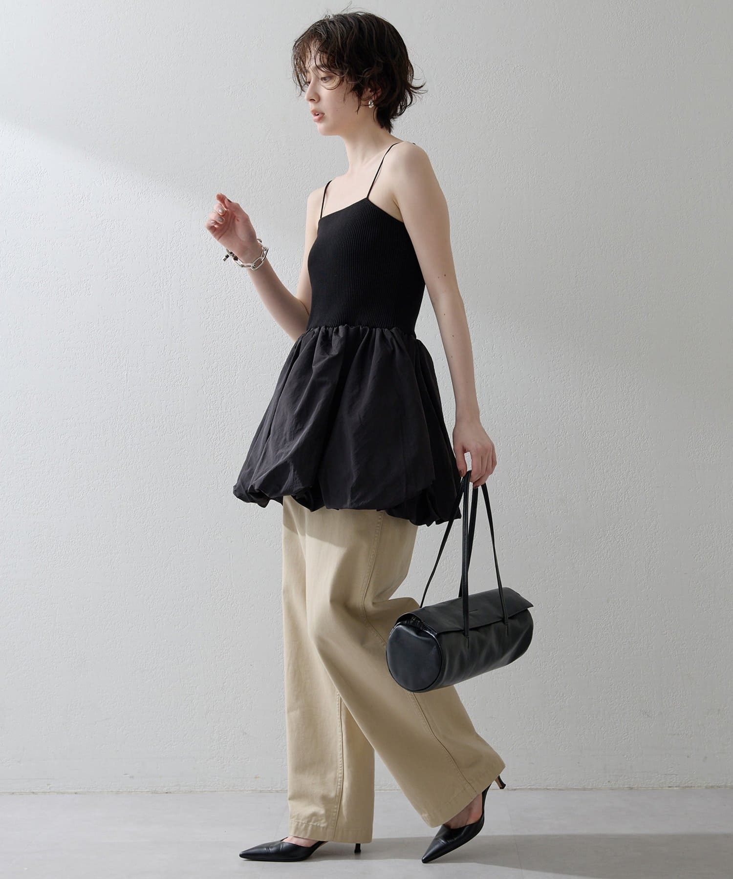 異素材コンビとシルエットで魅せる、大人のキャミニット