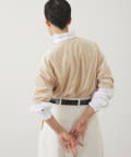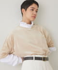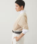 ■首元が浅めのVネックでラフな印象になりすぎず、中にシャツなどを合わせたレイヤードスタイルもおすすめ。