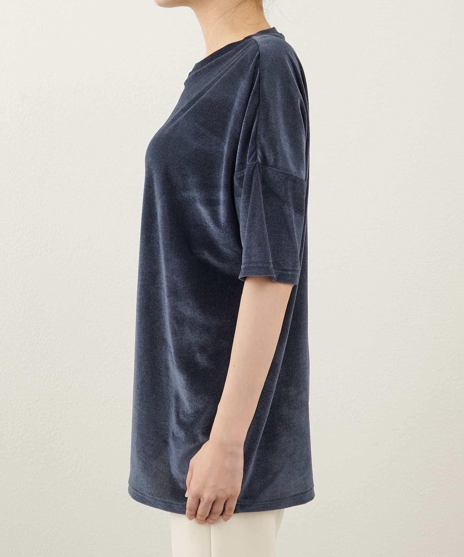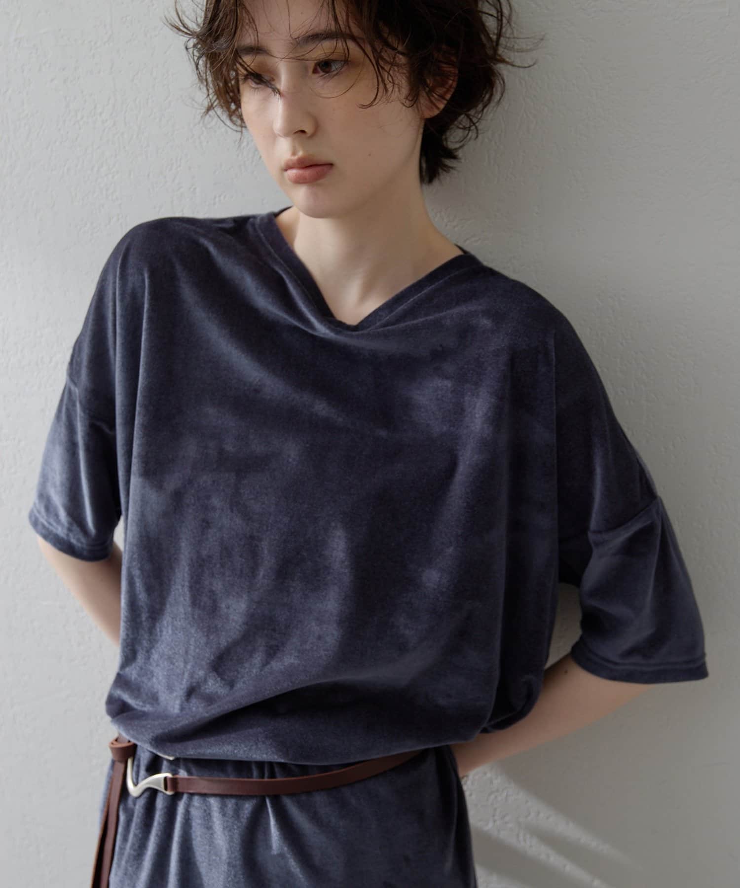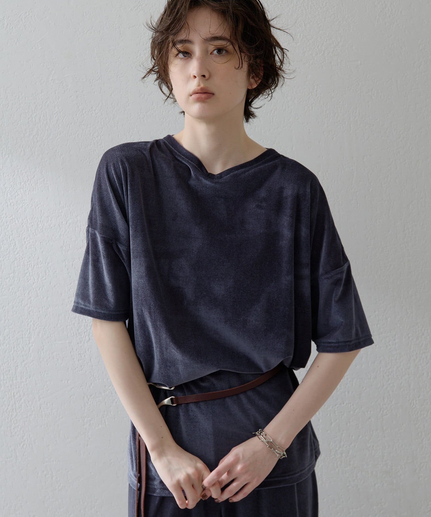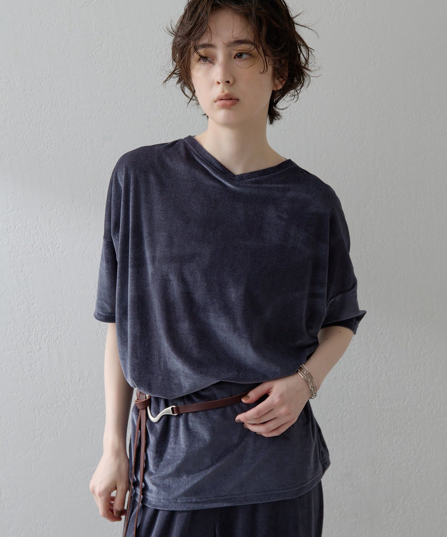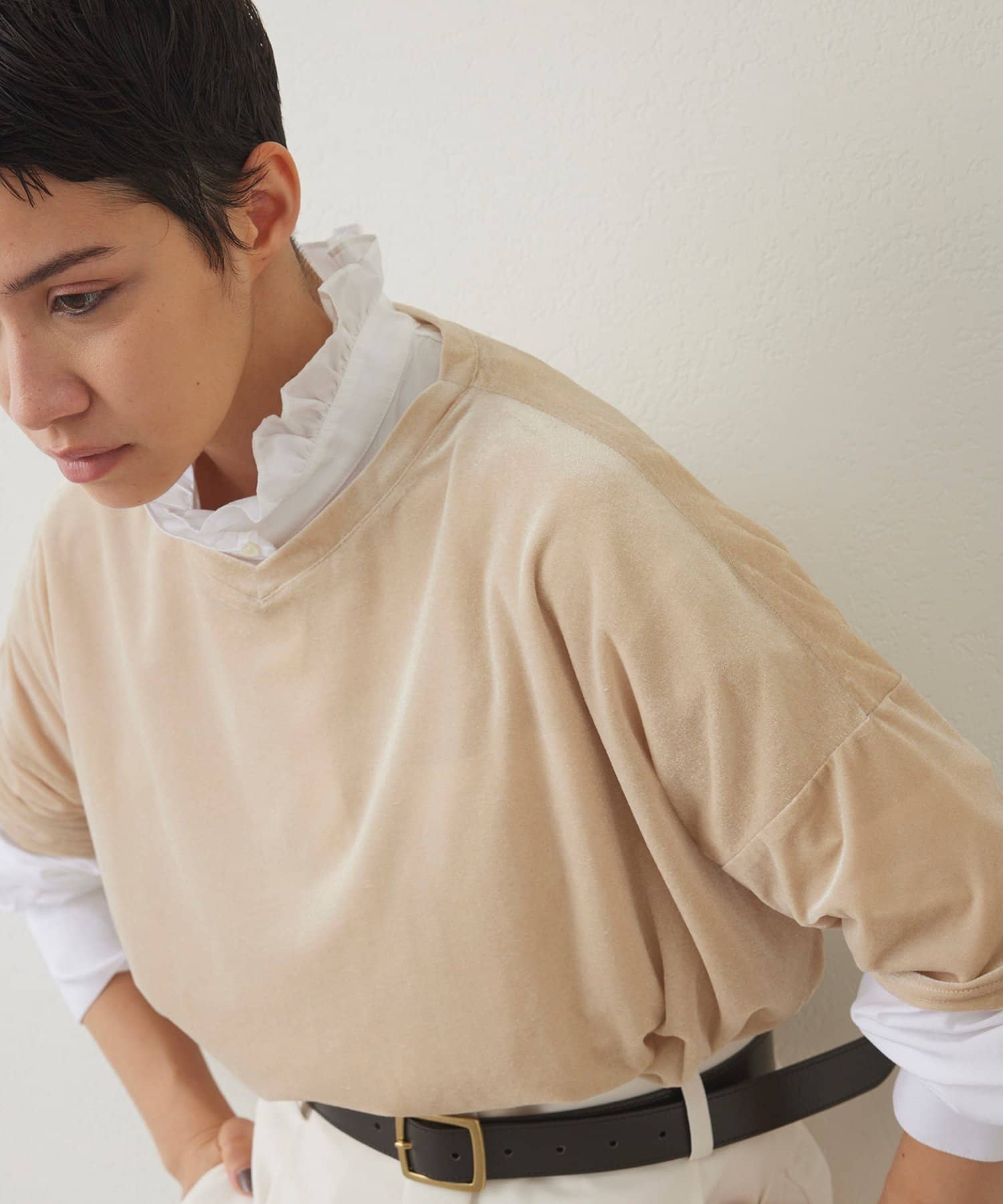 上品なカジュアル感を楽しめる、軽やかベロアTシャツ