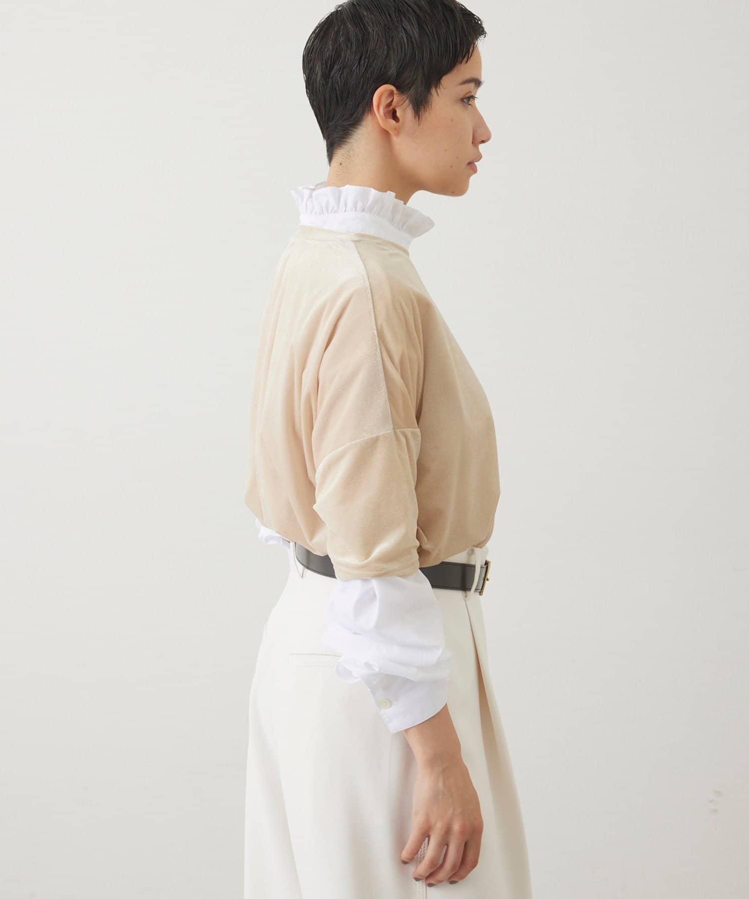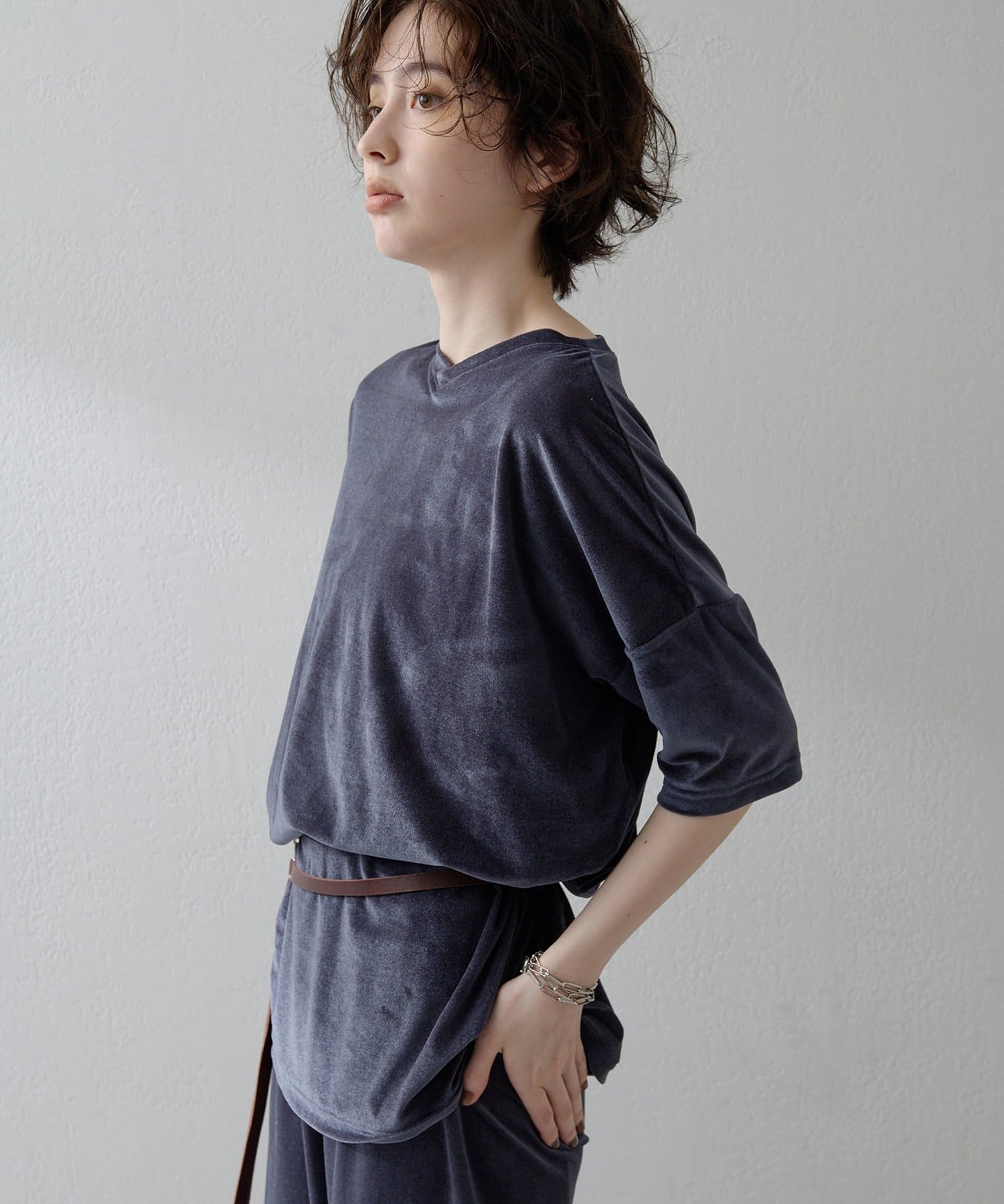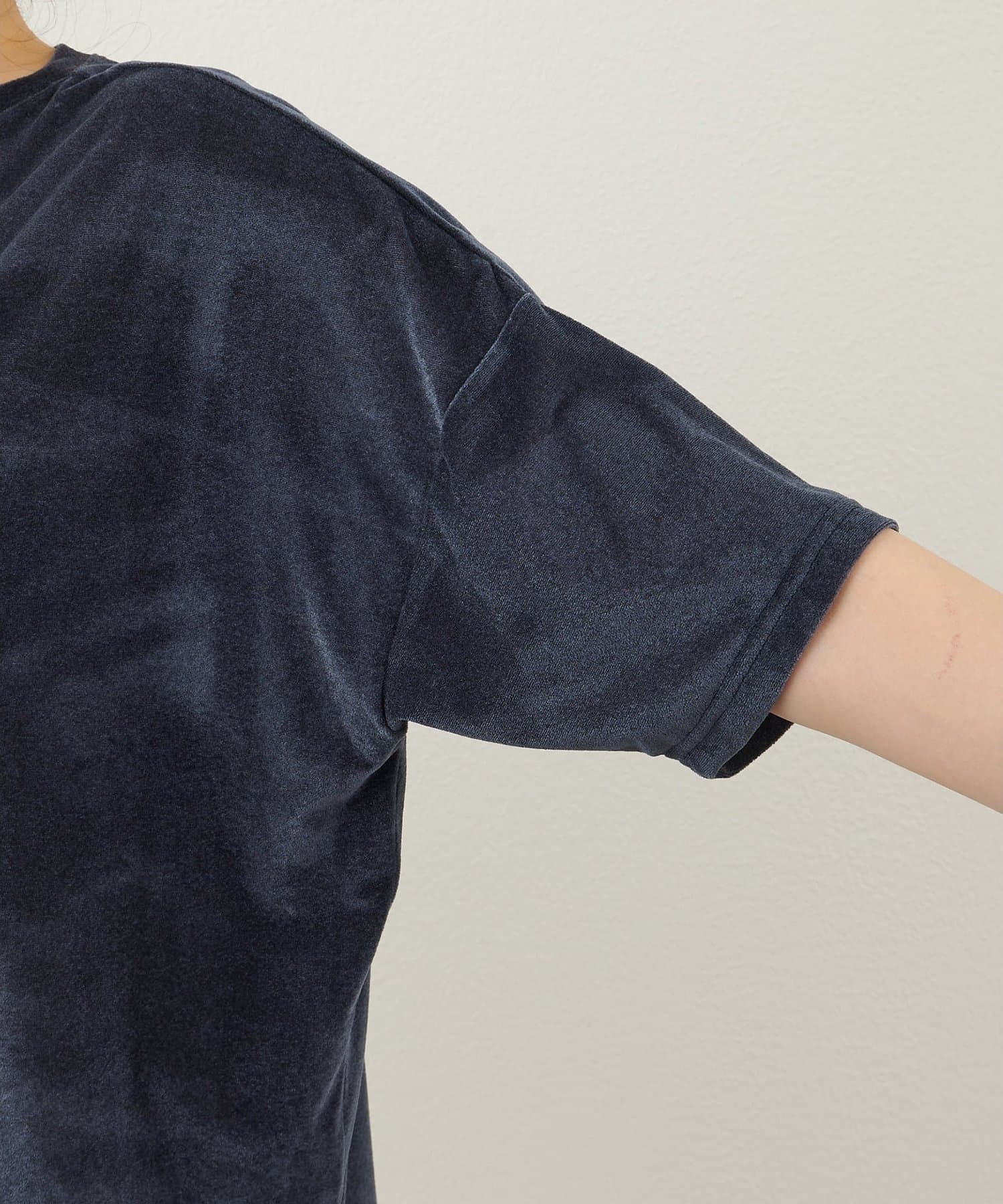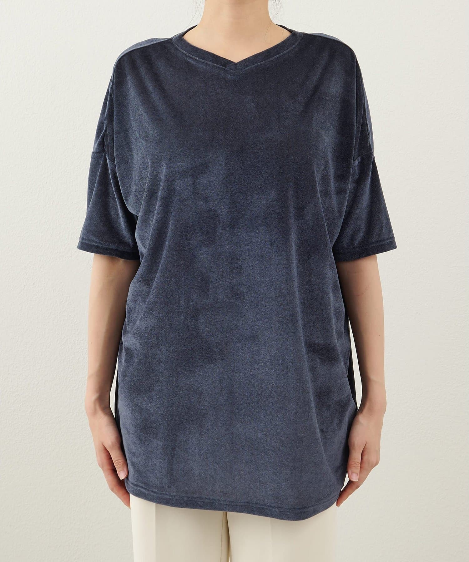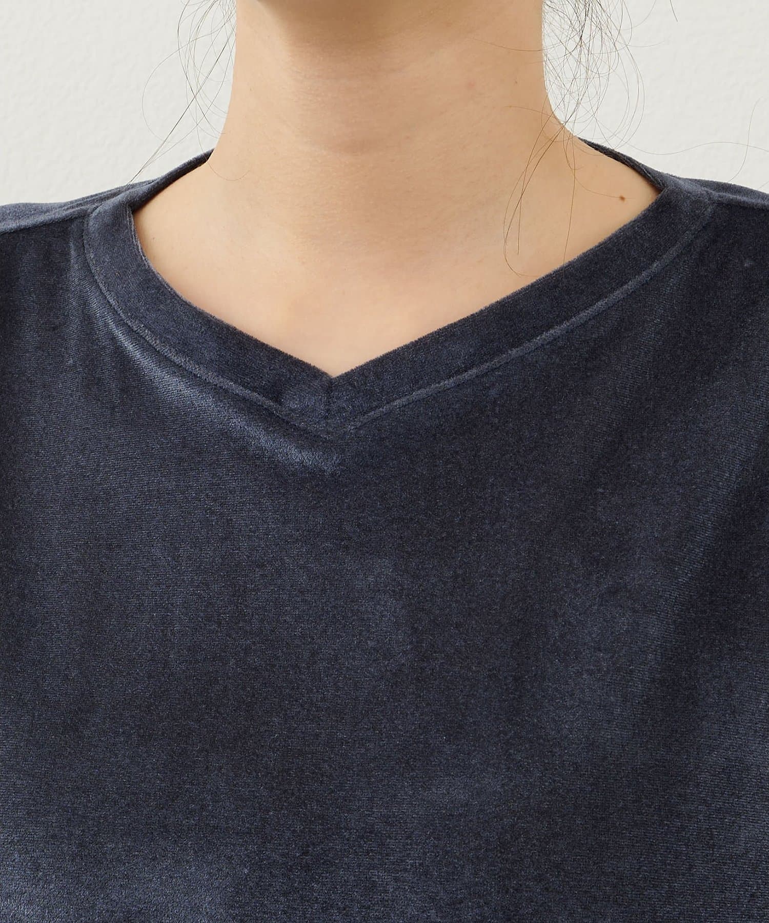 上品なカジュアル感を楽しめる、軽やかベロアTシャツ