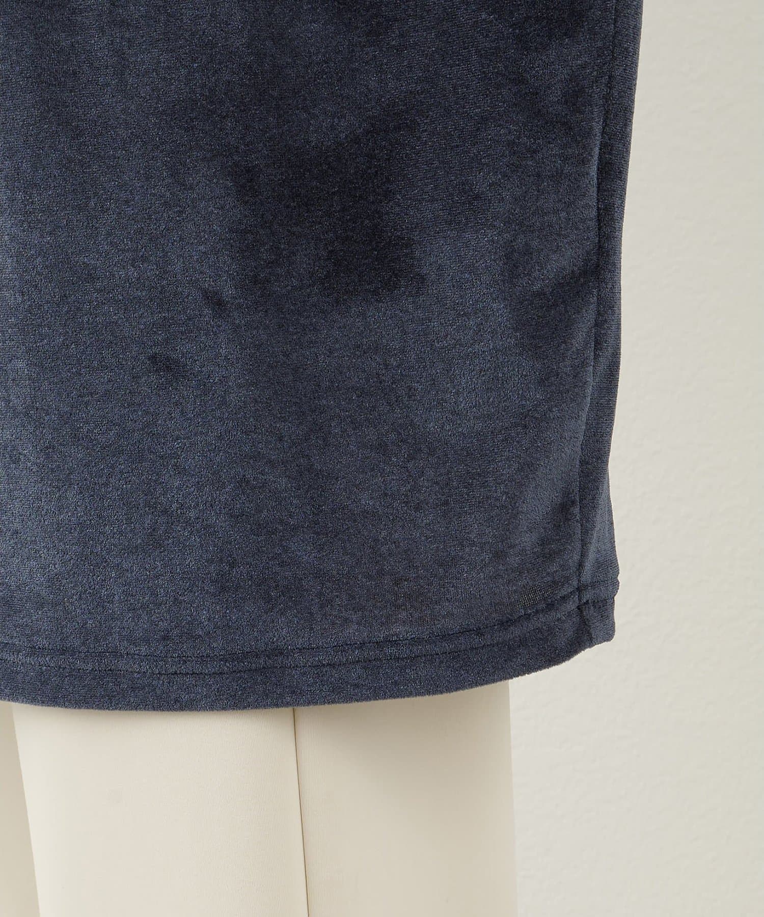 ■ポリウレタンがしっかり入った柔らかで軽やかなベロアトリコット素材が心地よい一枚。