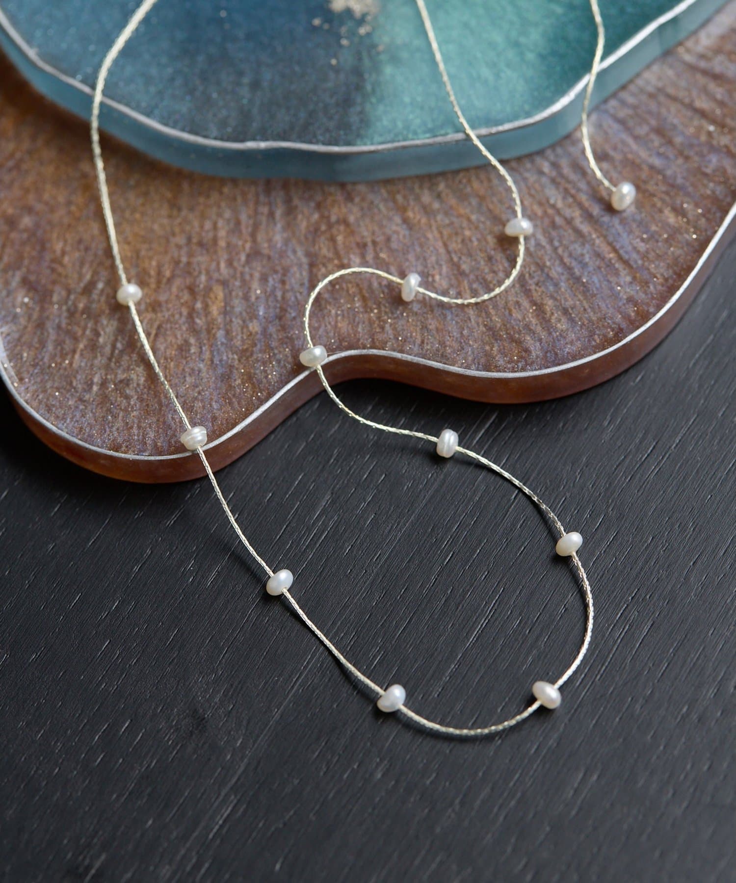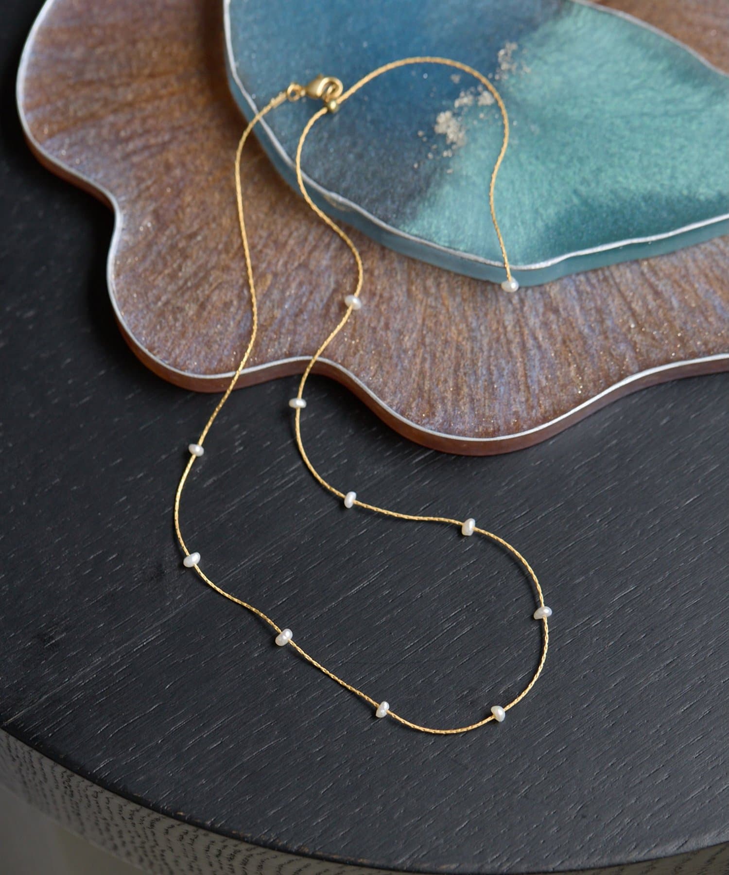 ■華奢なチェーンに小粒の淡水パールを散りばめたチョーカーネックレス。