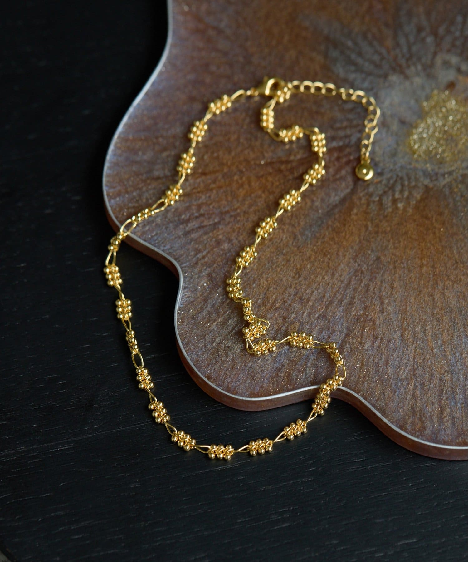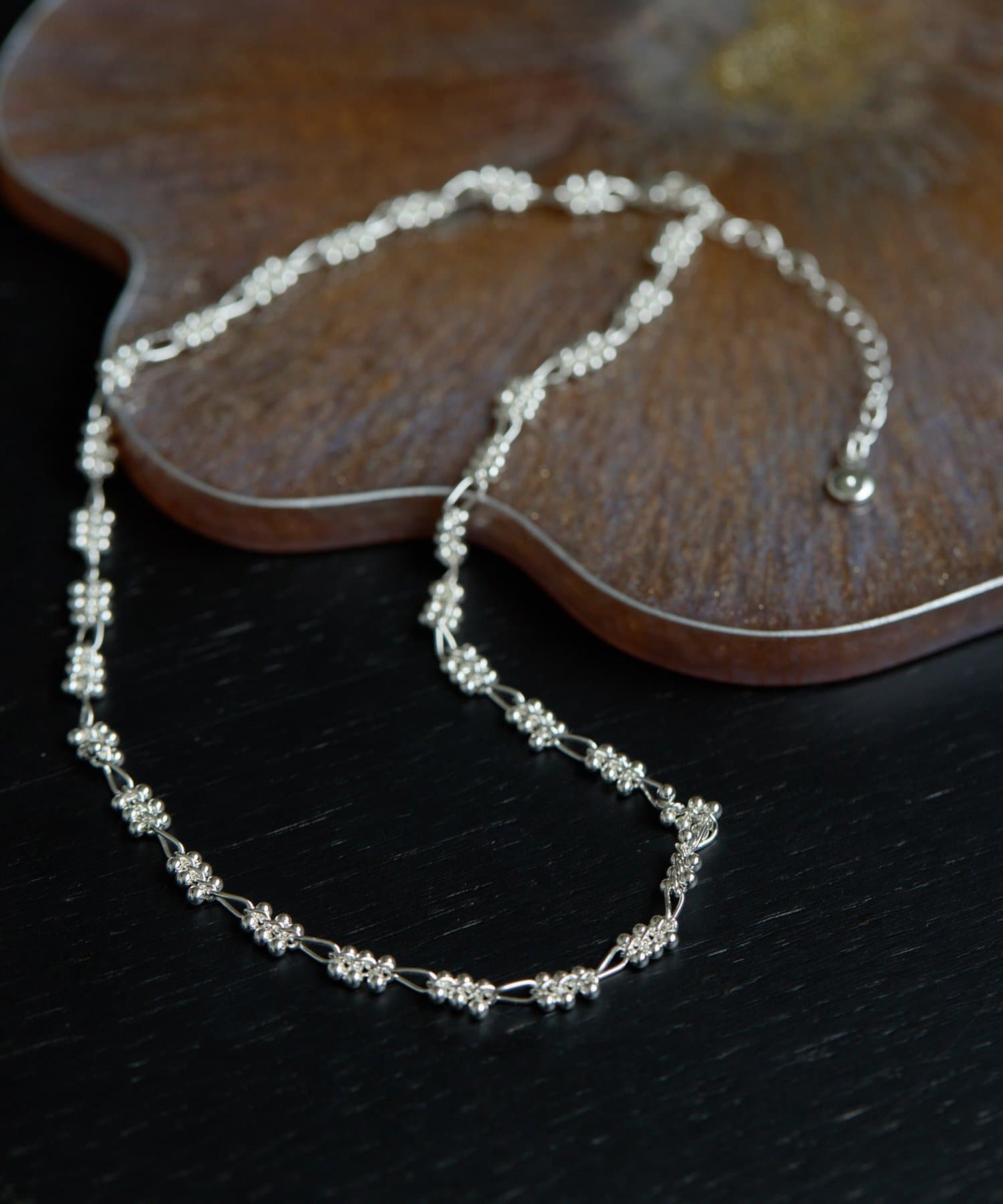 ■粒々のチェーンデザインが印象的なネックレス。