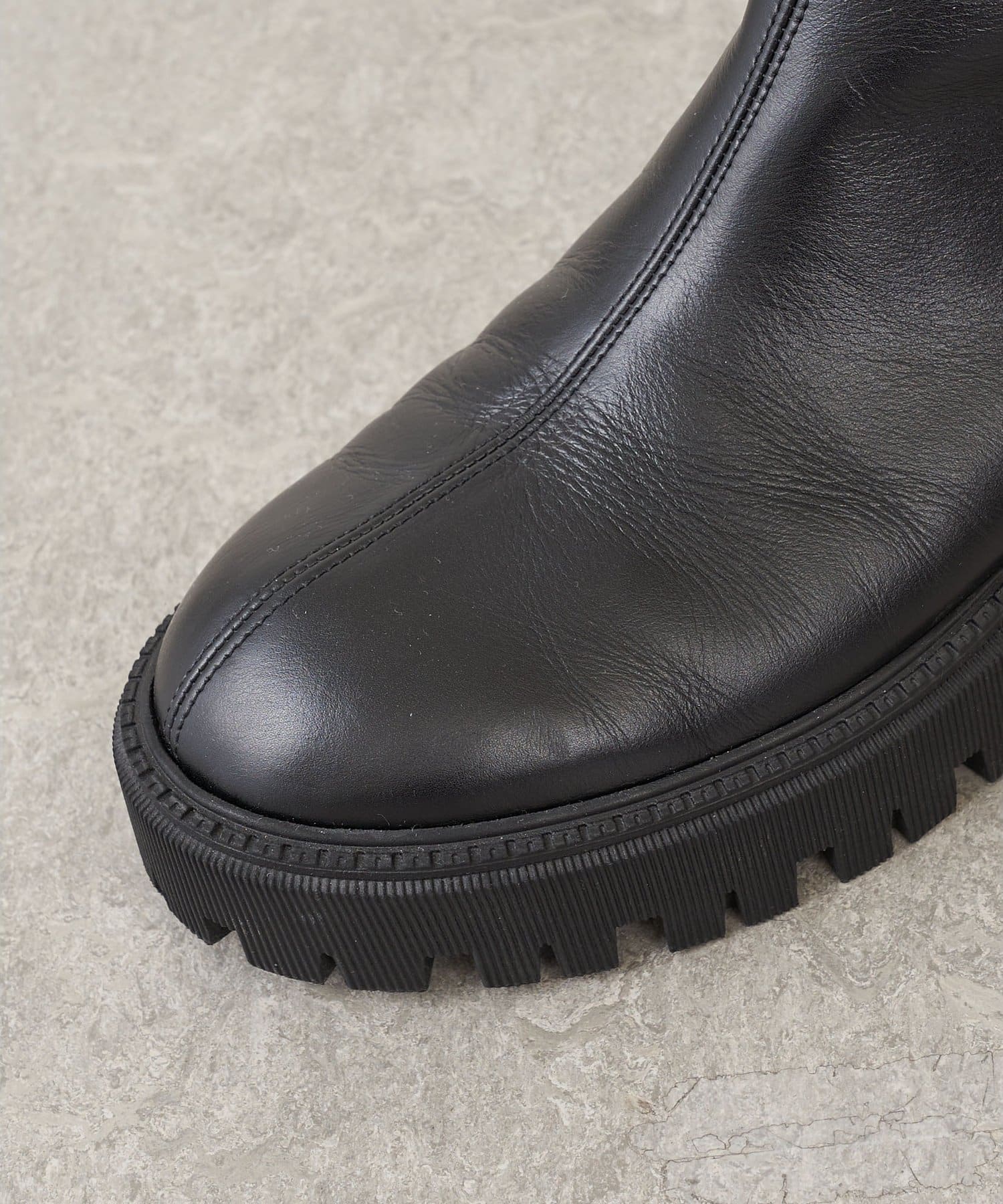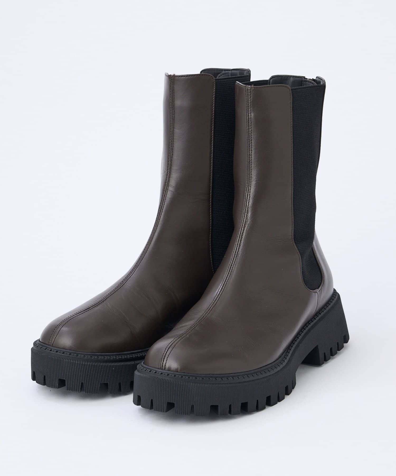 ■すっきりと細めな筒周り、程よいボリュームの厚底ソール、ボトム合わせしやすいミドル丈の好バランスが魅力。