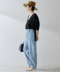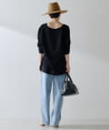 ■股下はゆとりがありつつハイウエストで腰周りはすっきりとさせ、脚のラインがきれいに見えるデザインに。