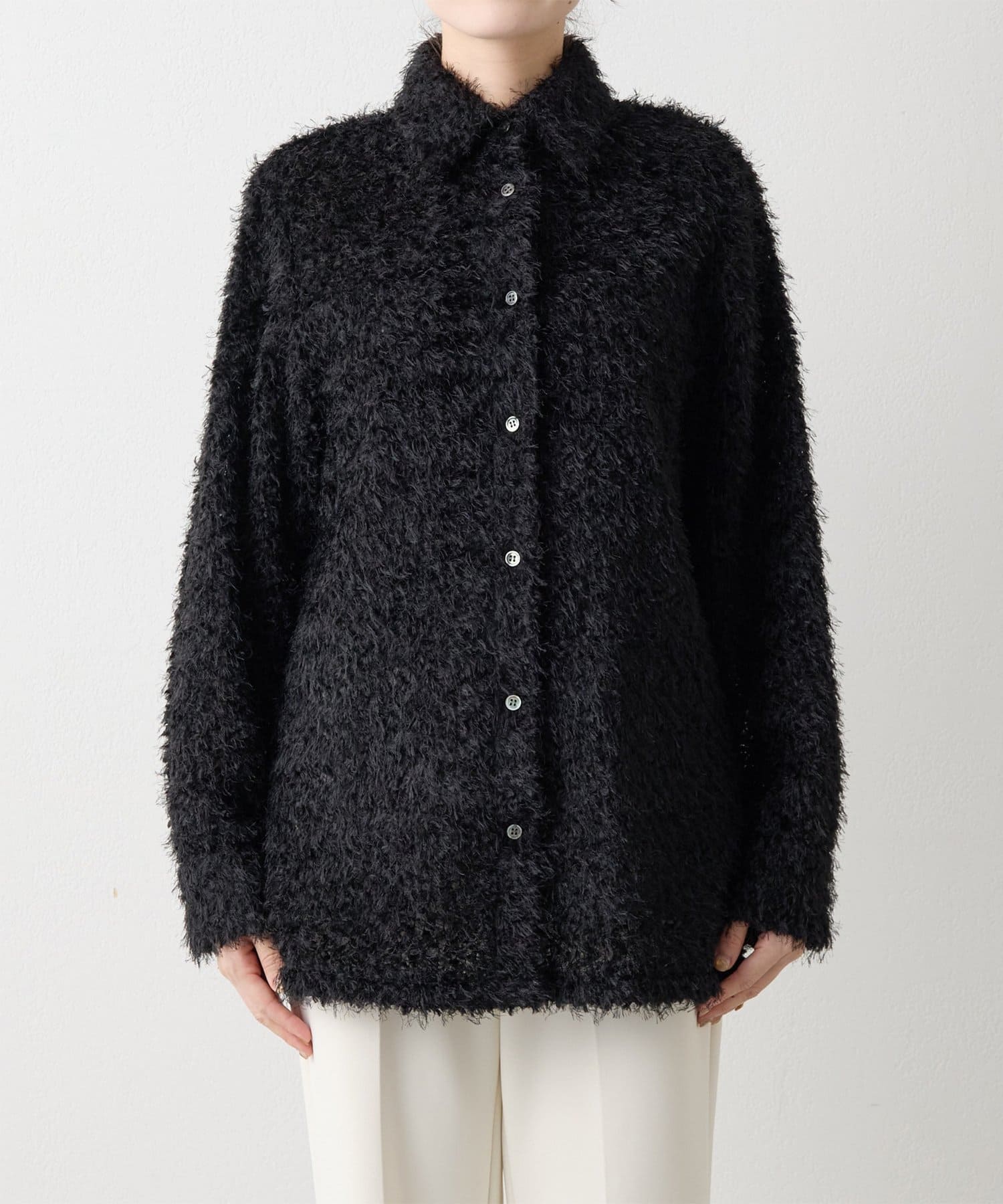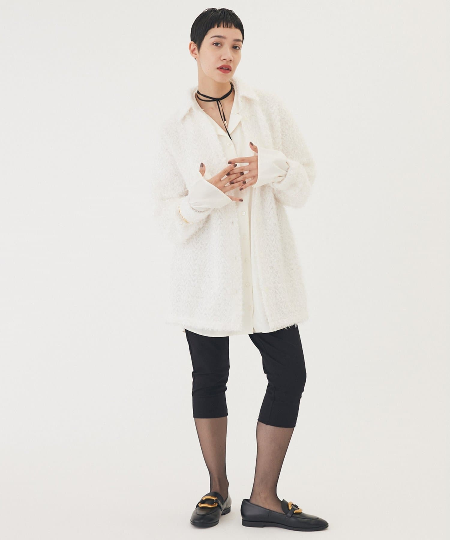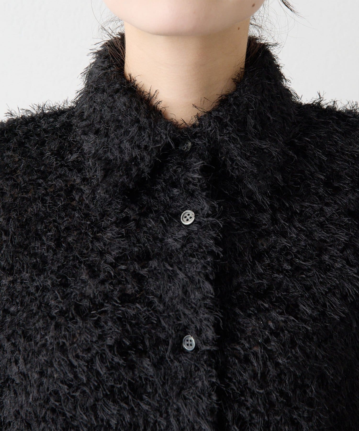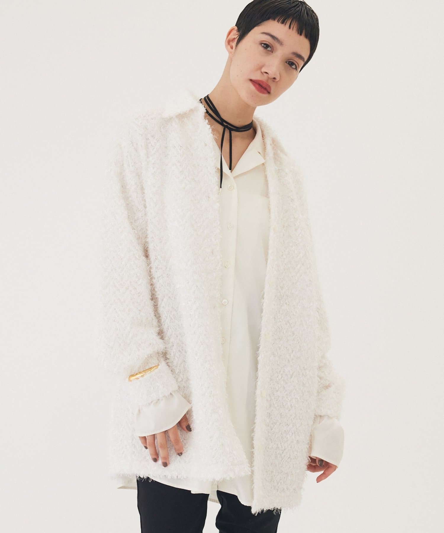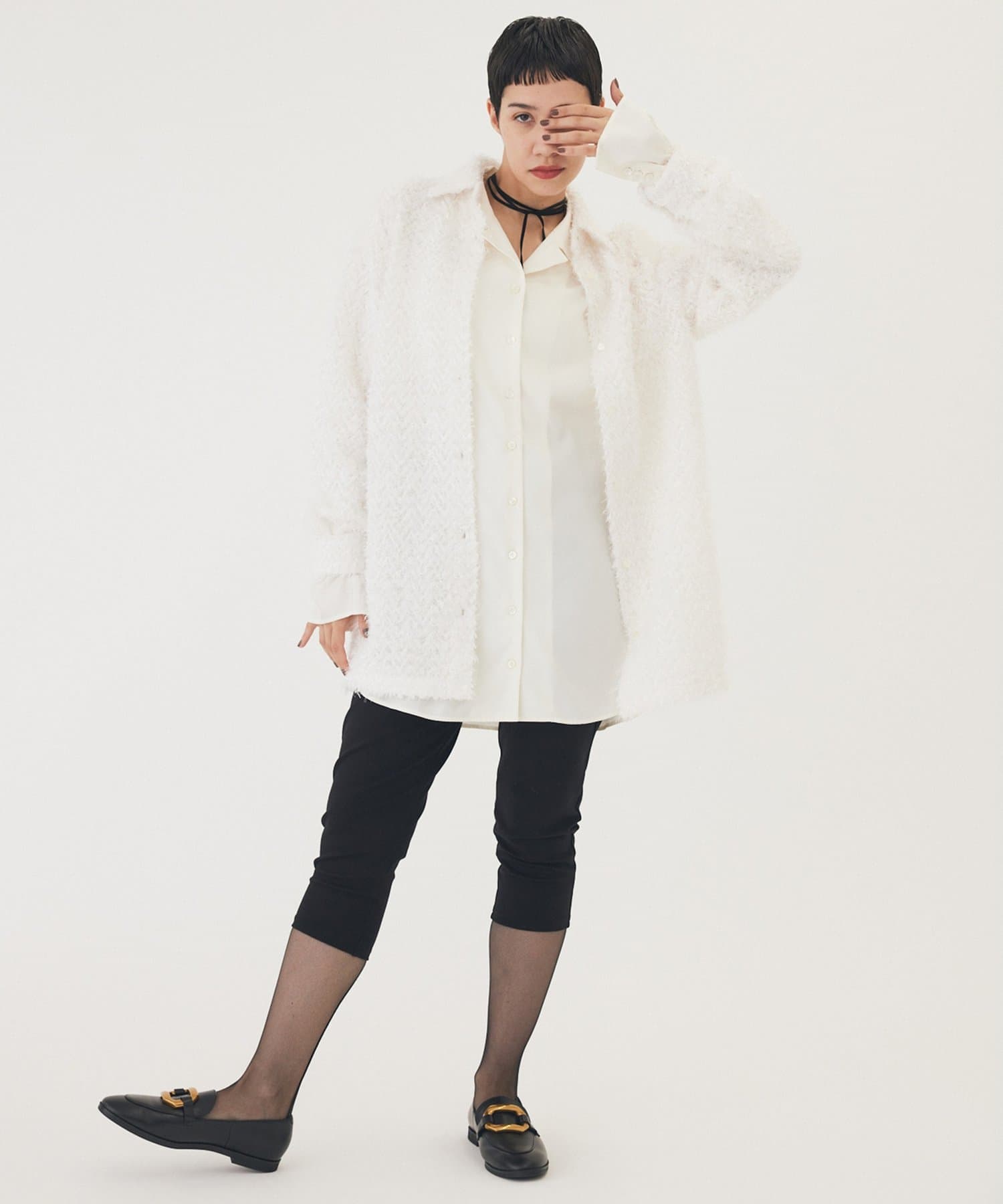 ■毛足感のあるフェザーチュールを使用したシャツ。
