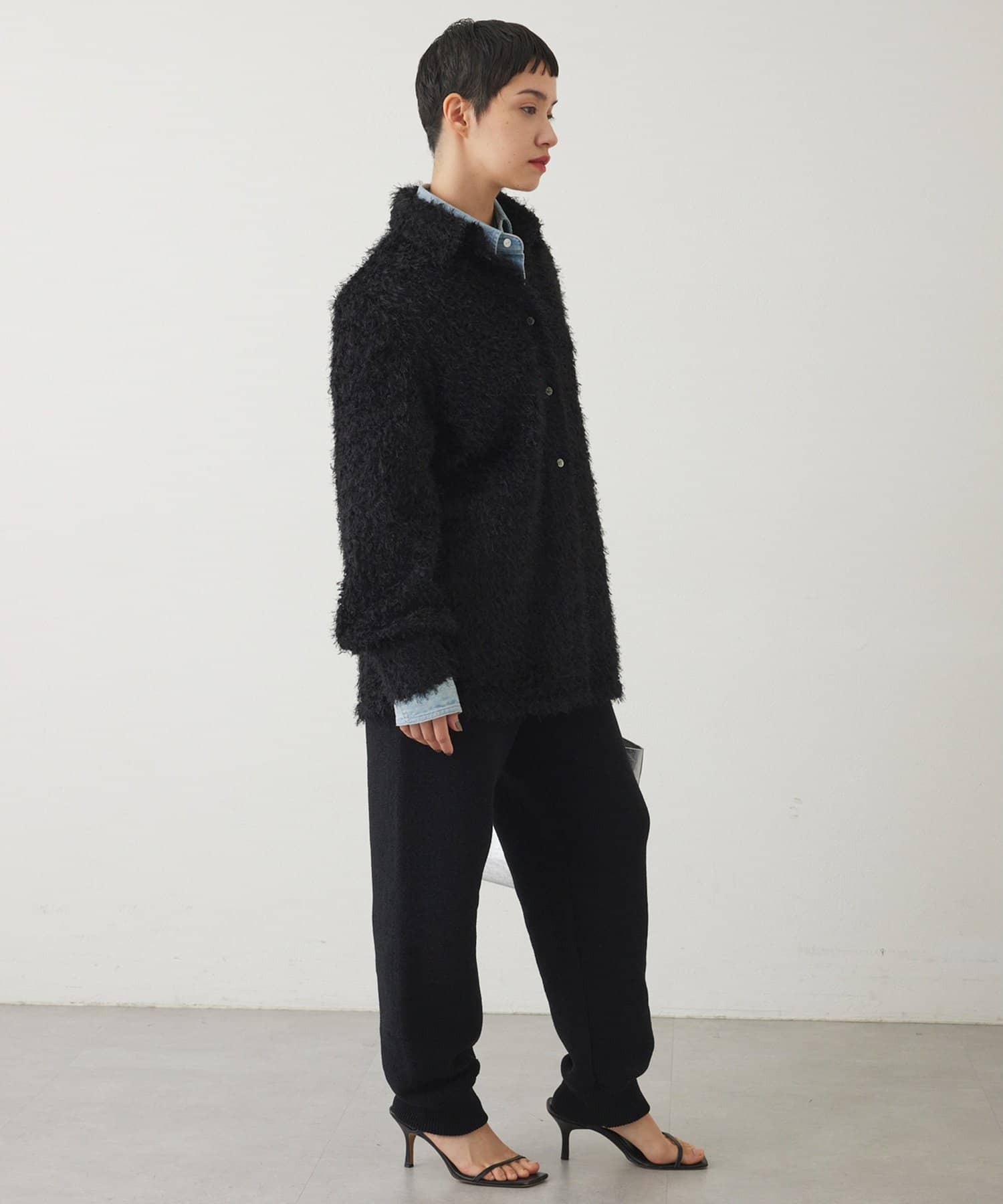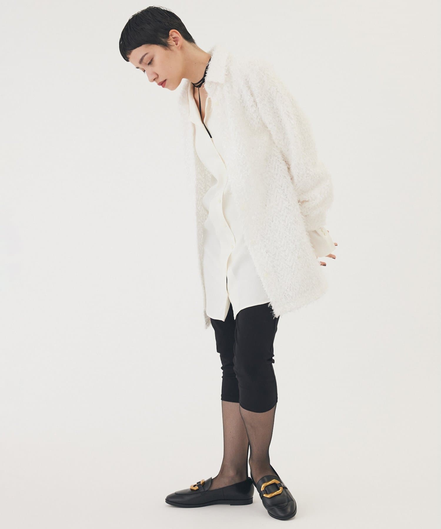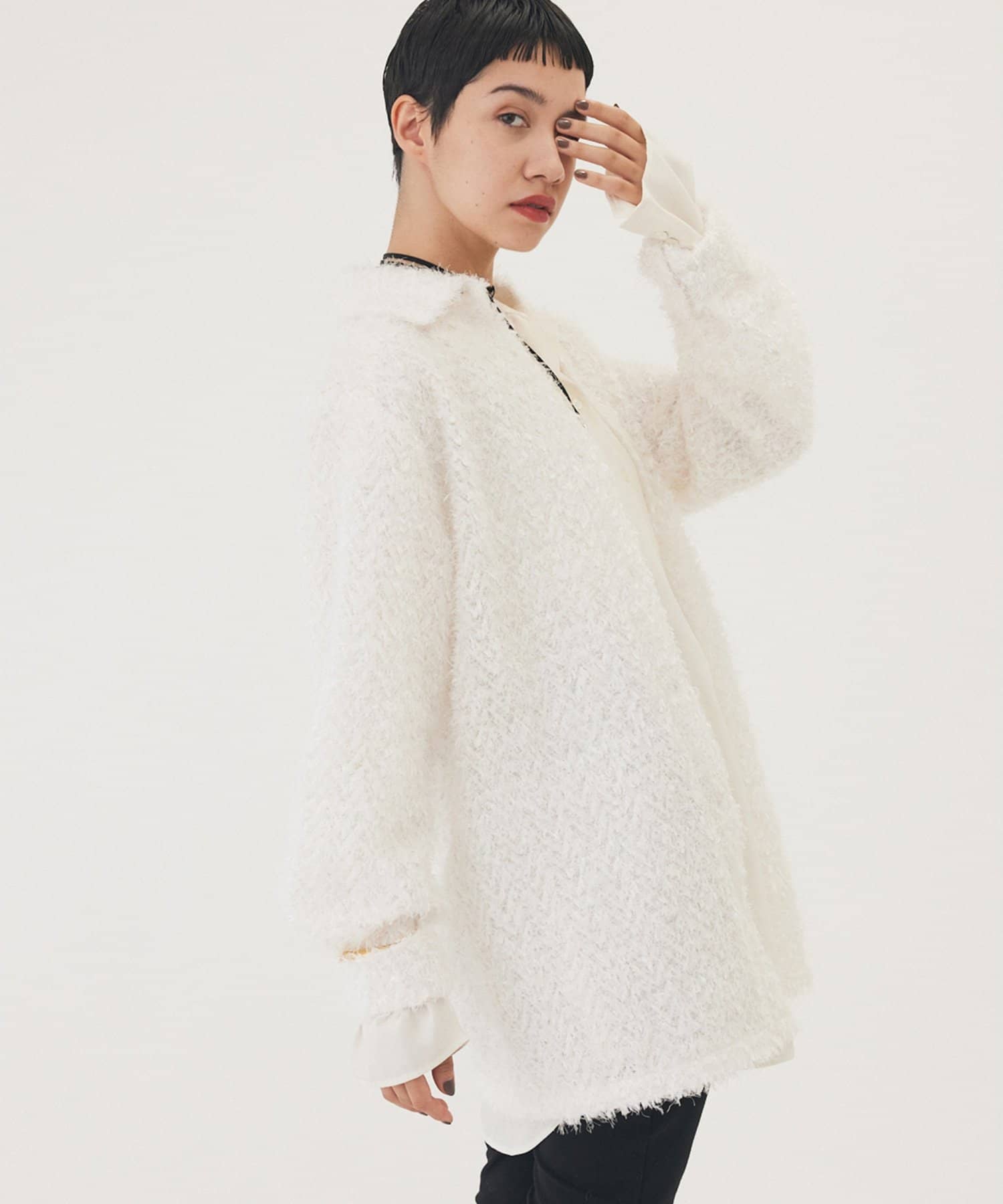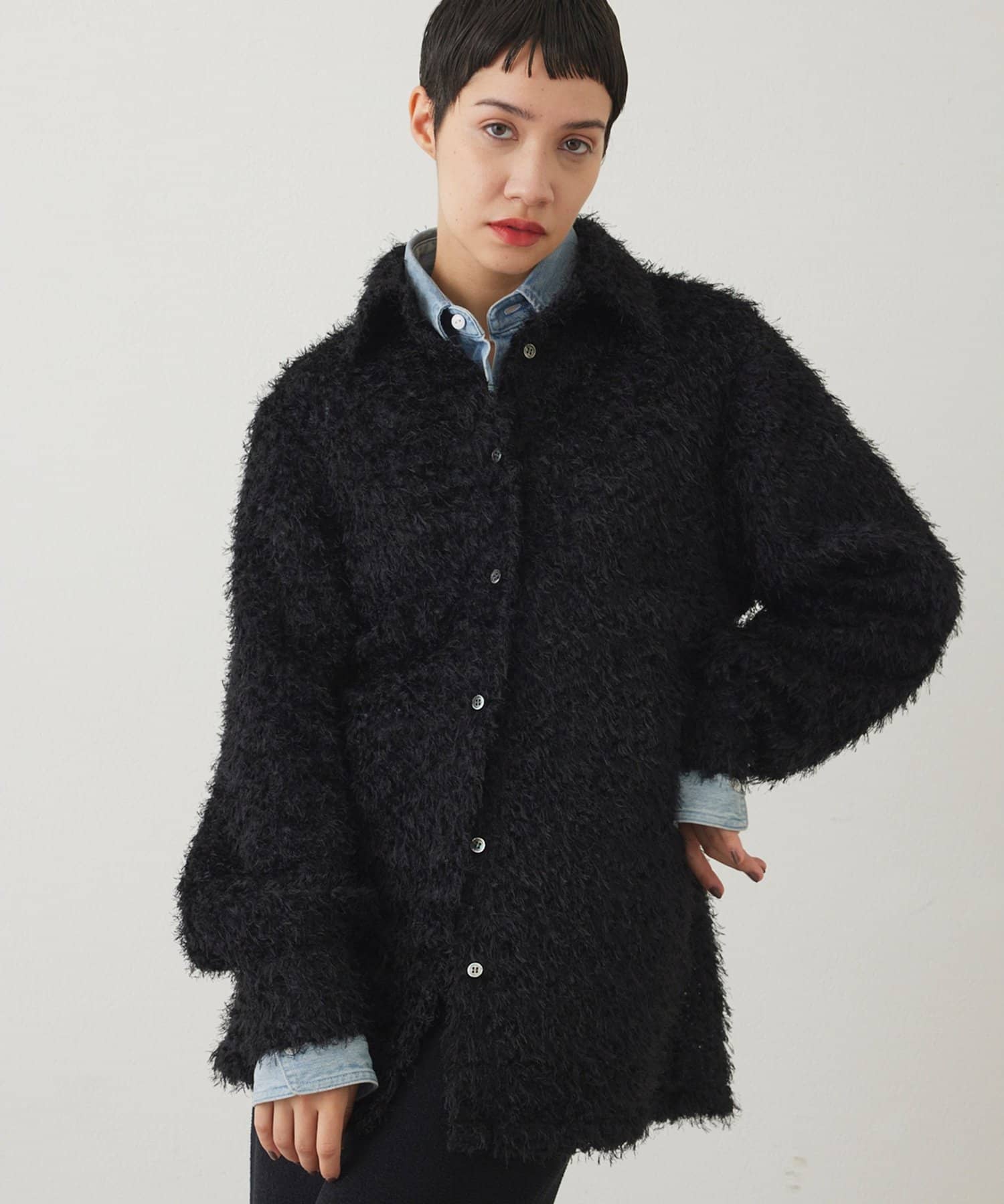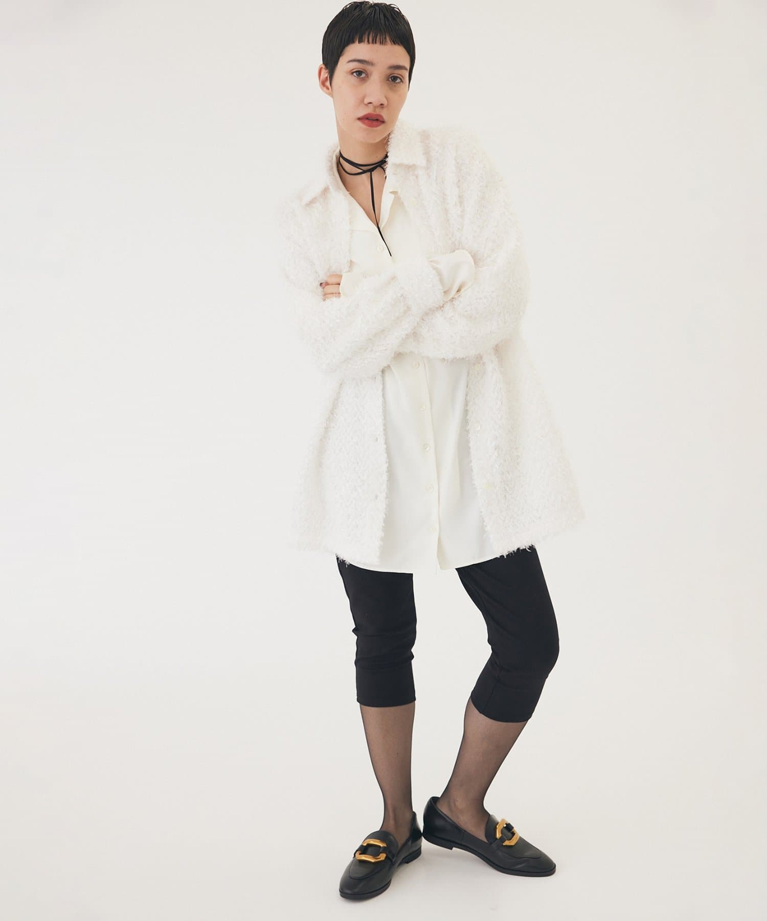 ■毛足感のあるフェザーチュールを使用したシャツ。