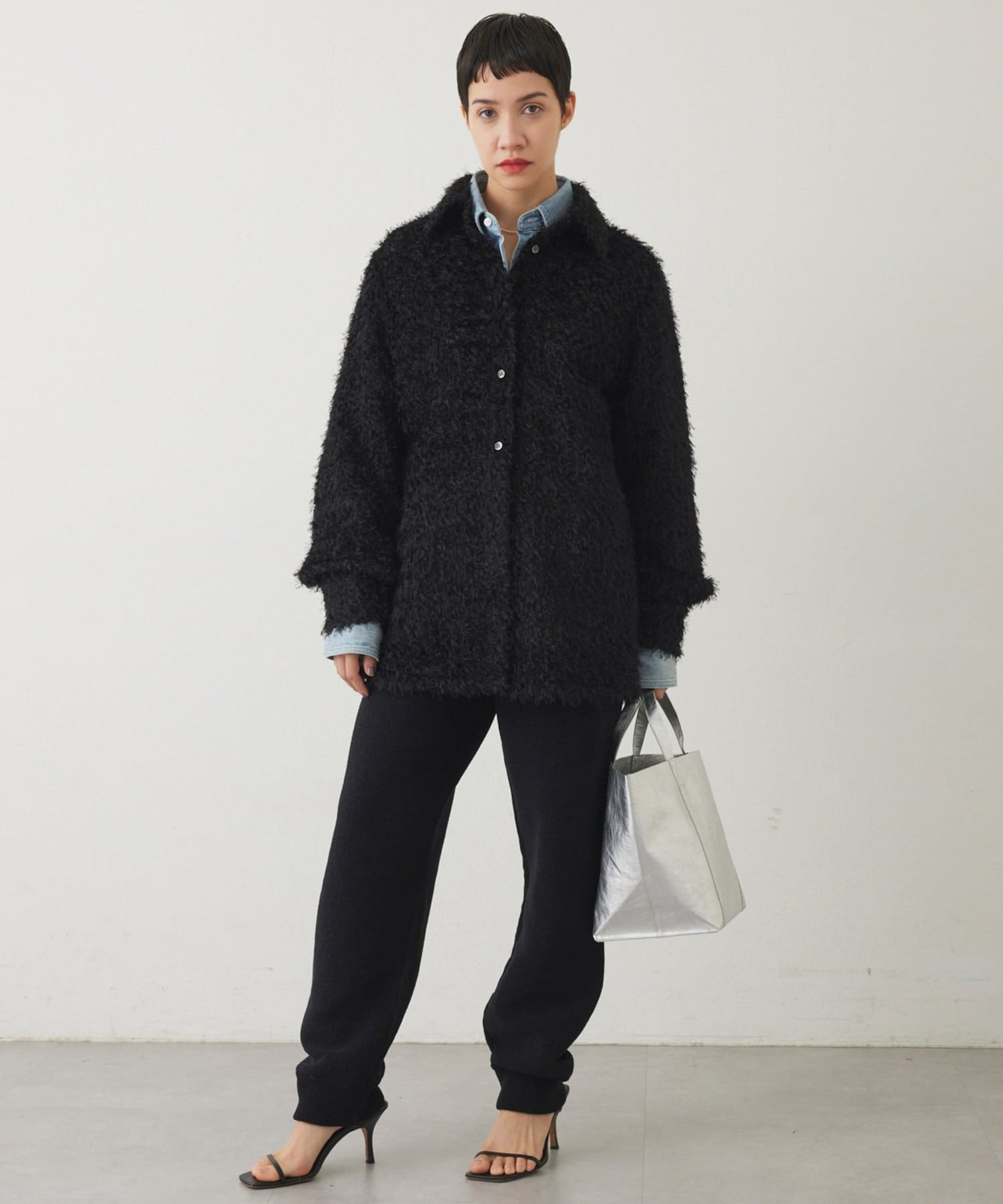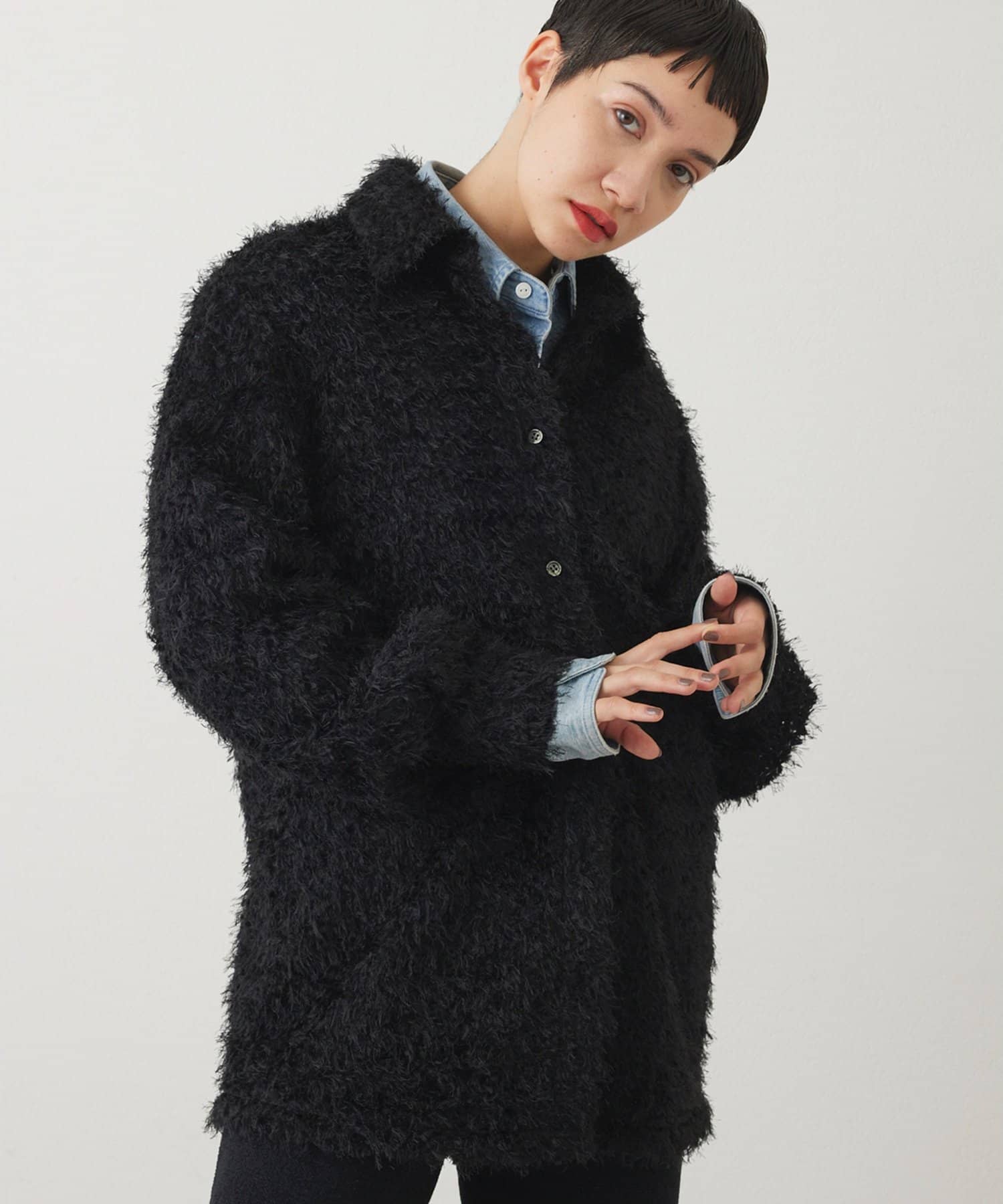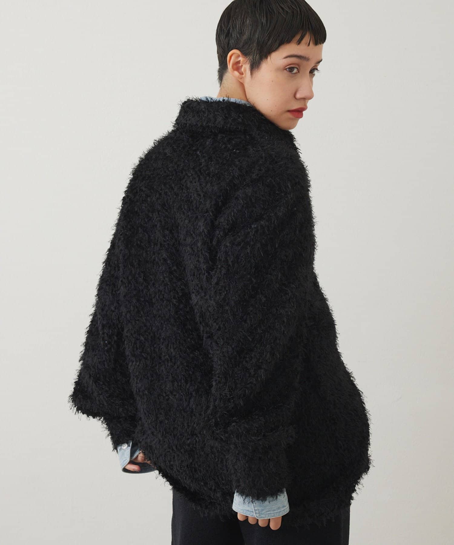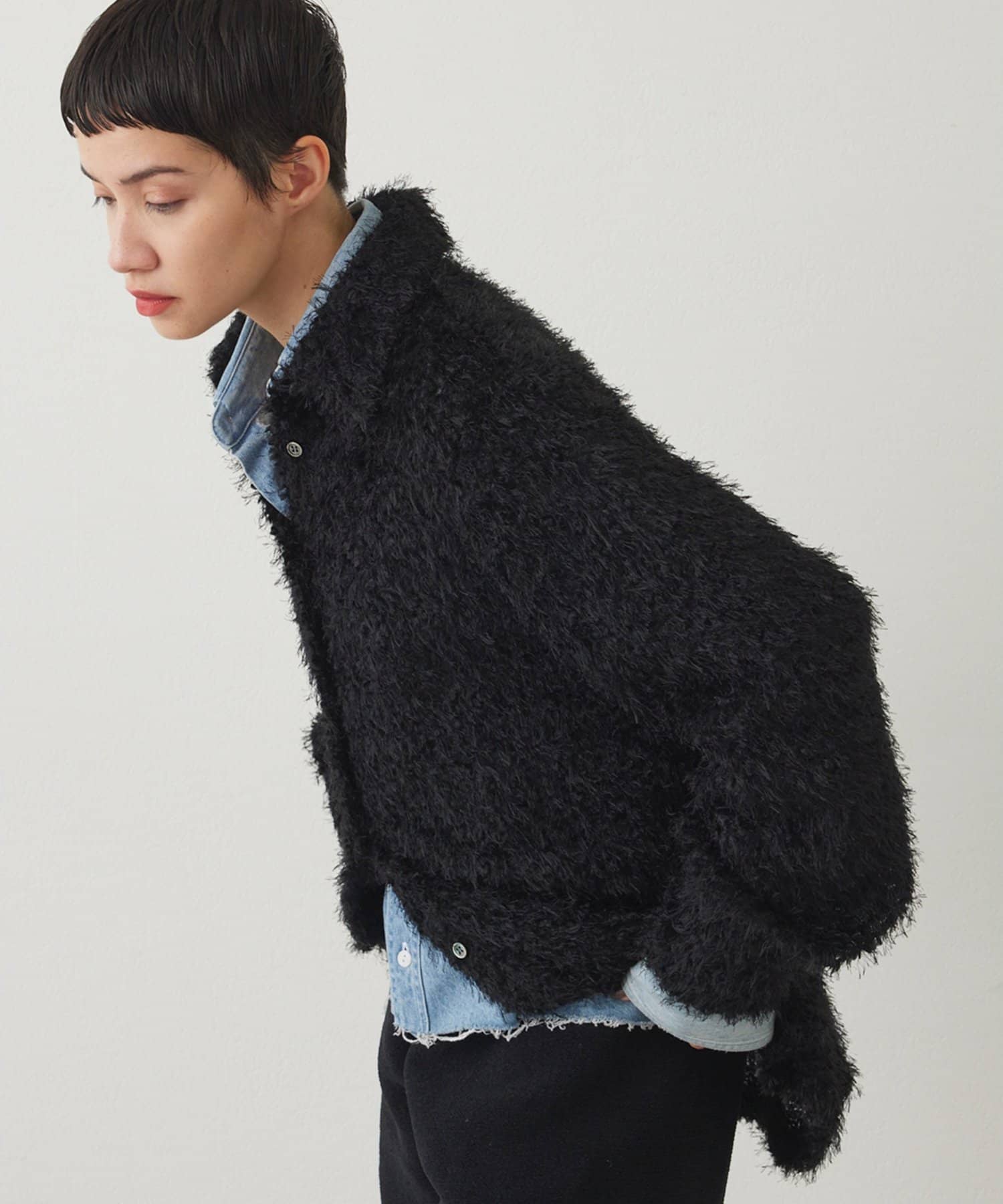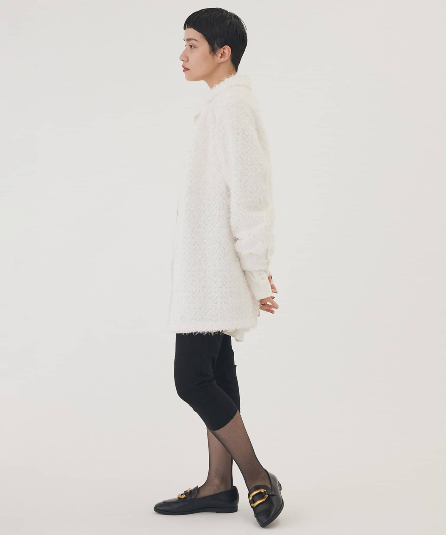 ■毛足感のあるフェザーチュールを使用したシャツ。