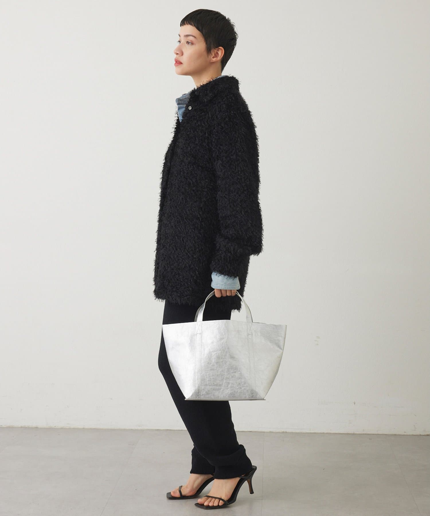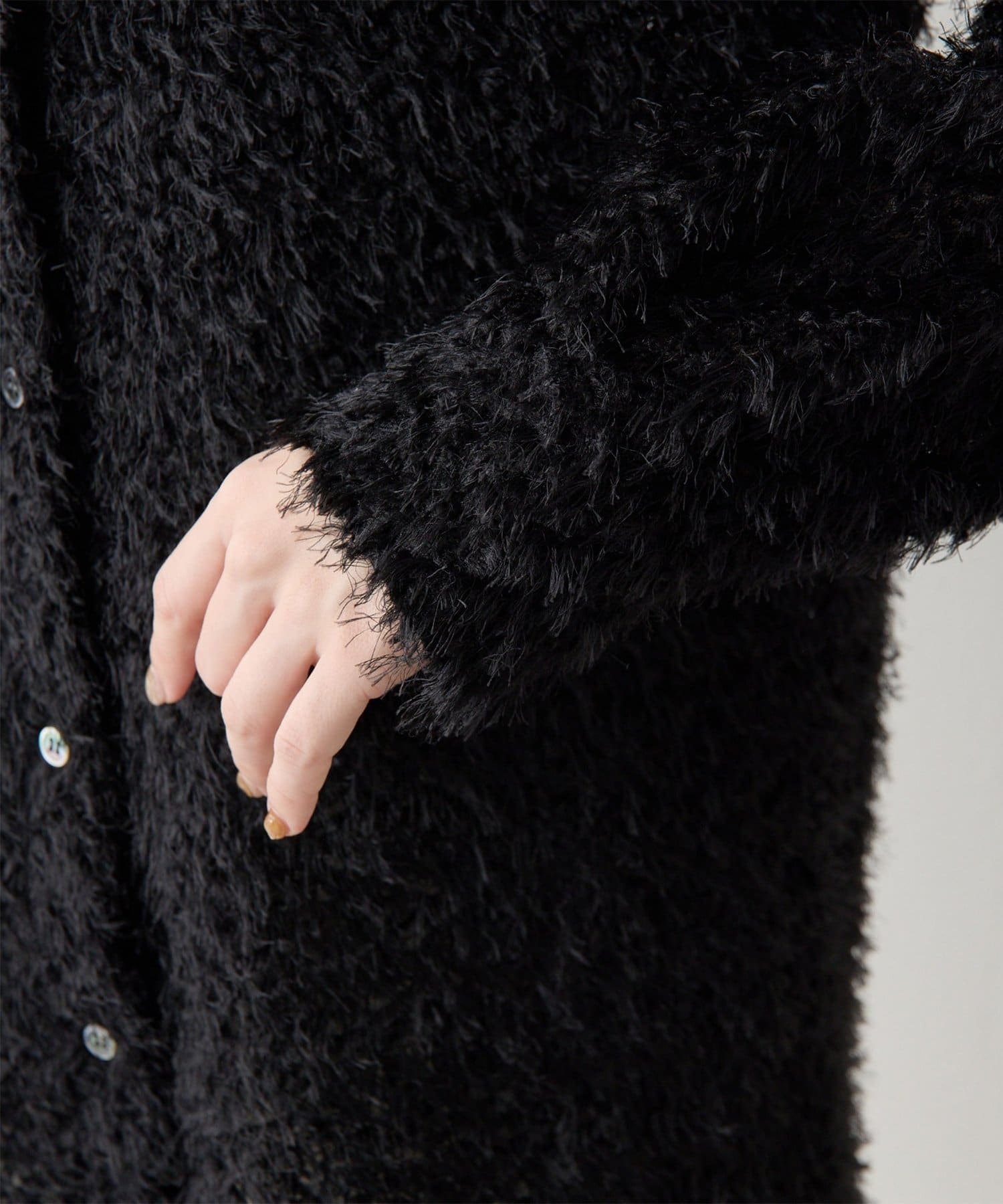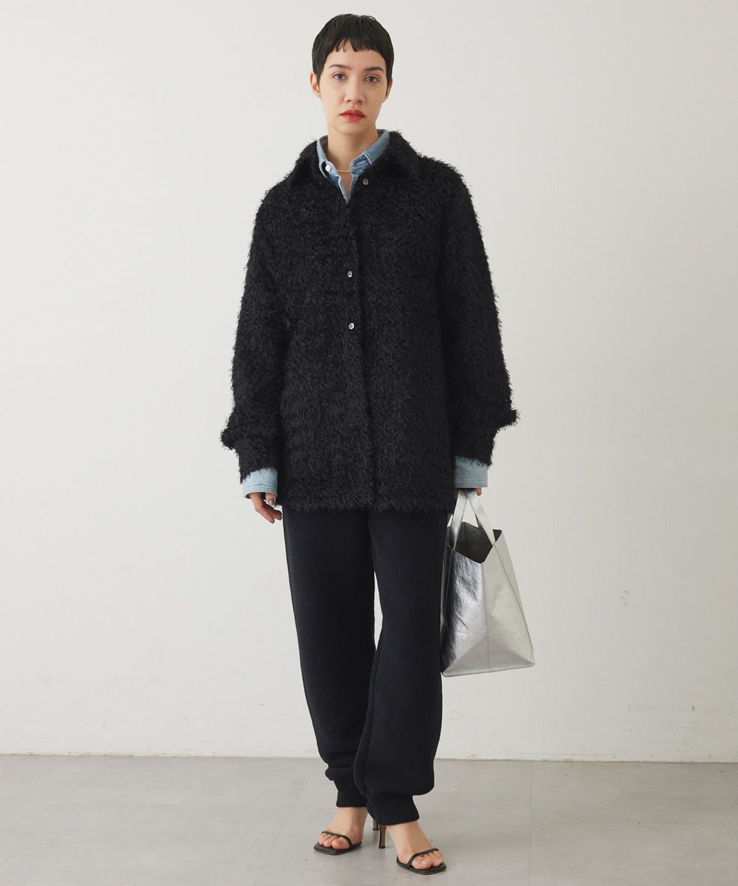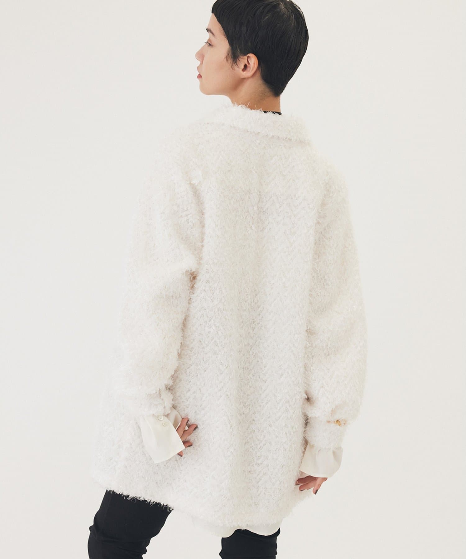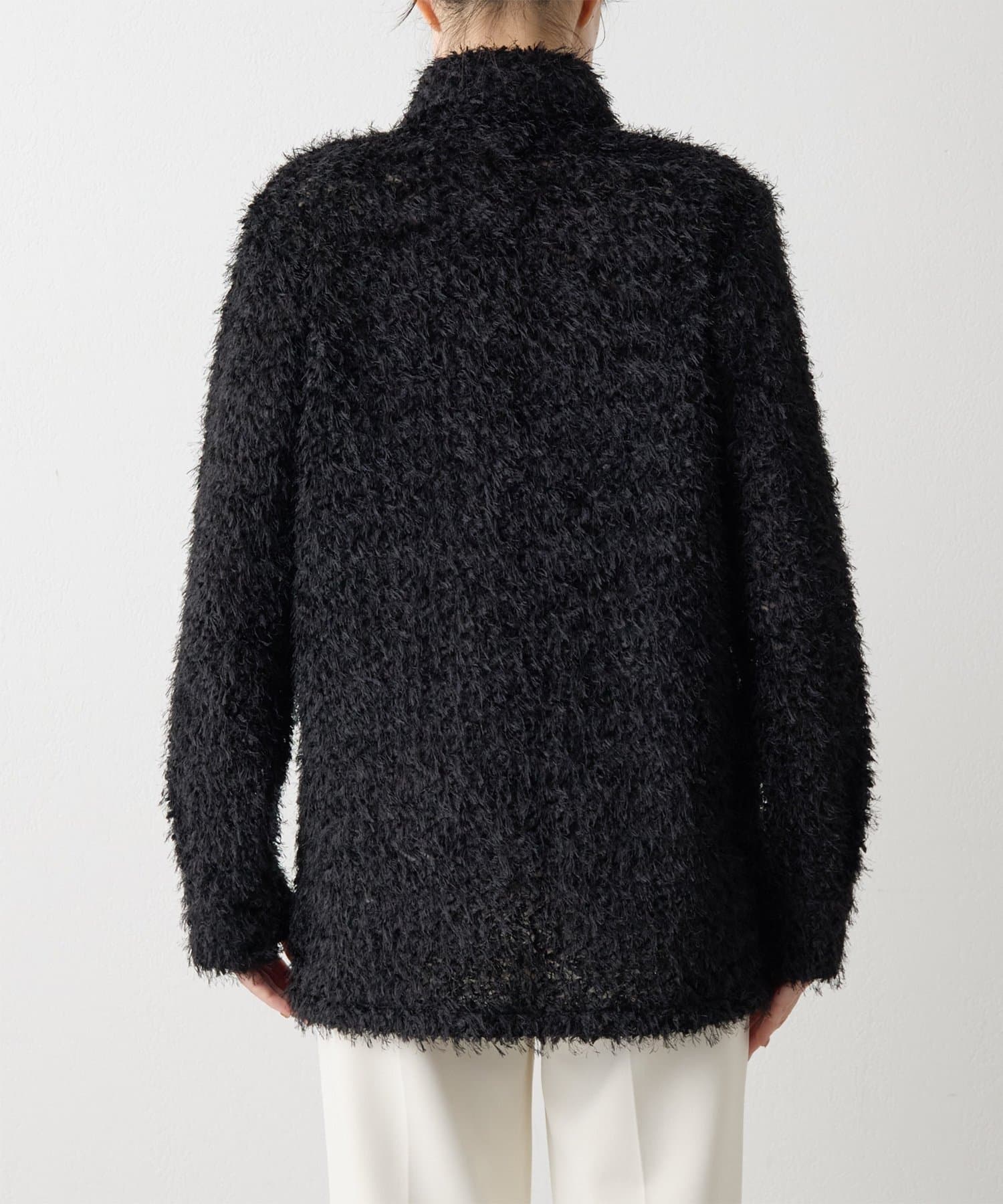 ■毛足感のあるフェザーチュールを使用したシャツ。