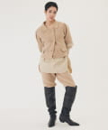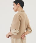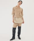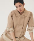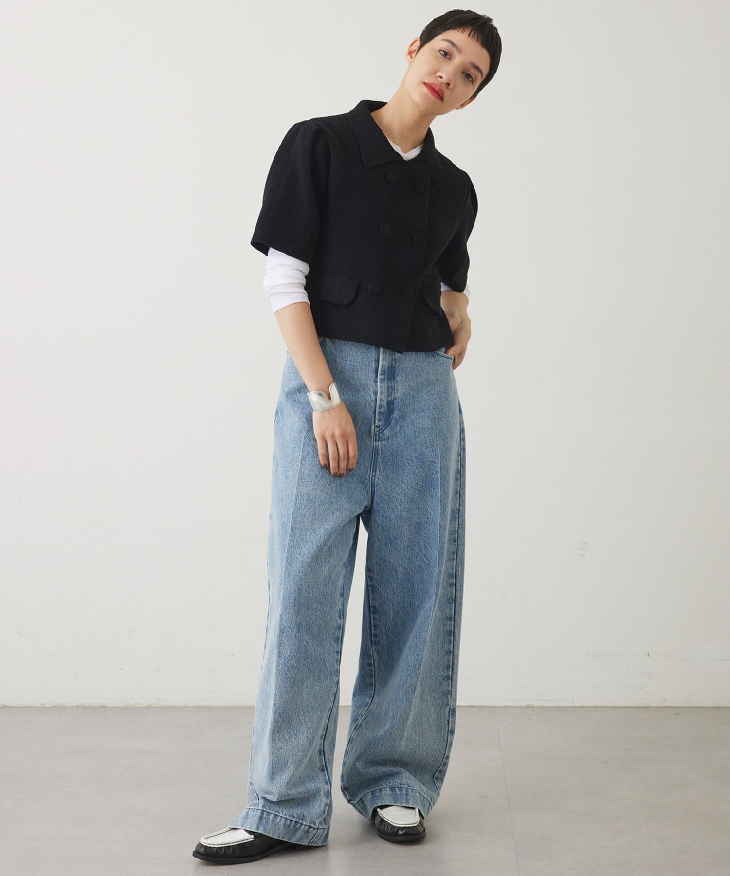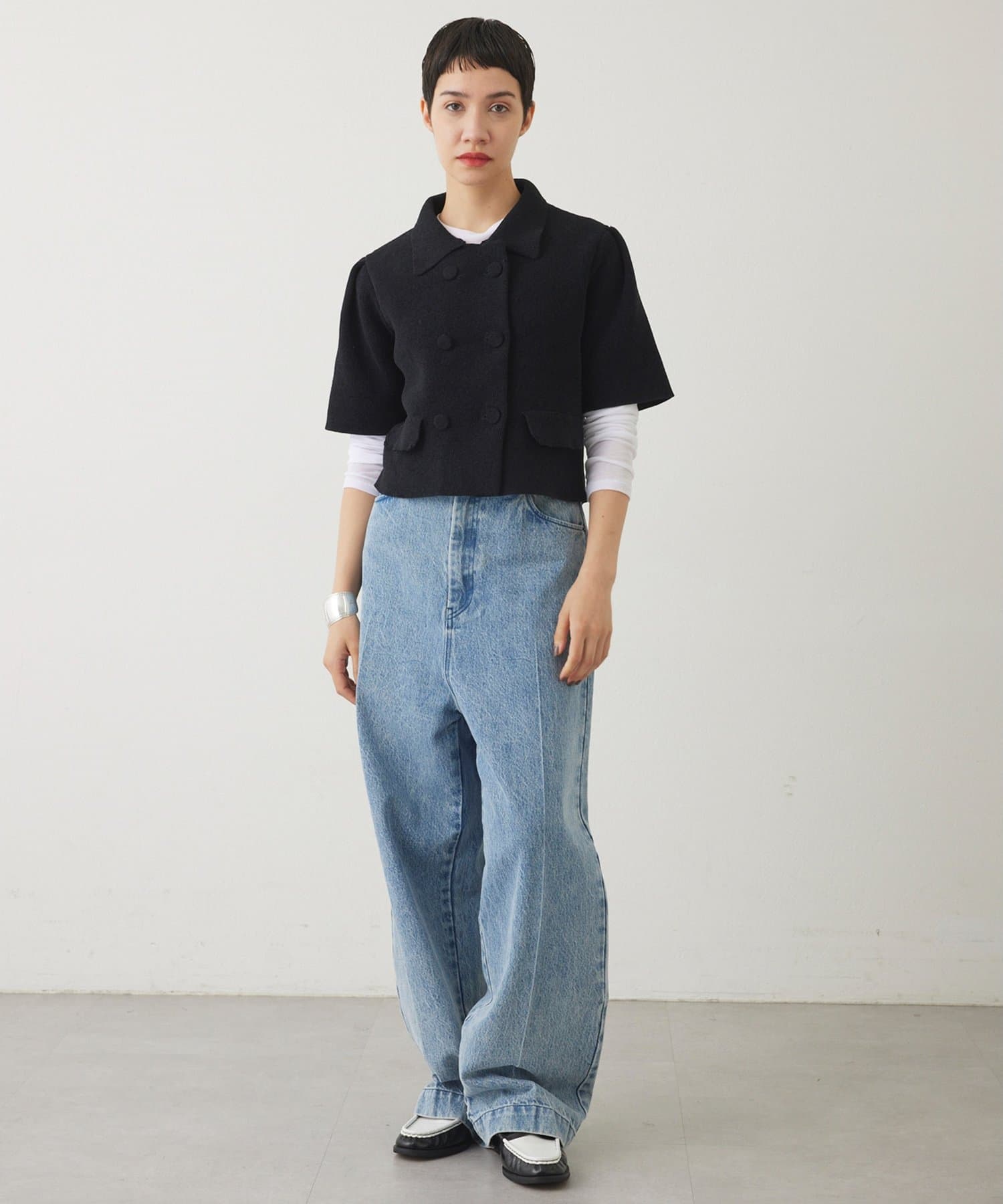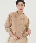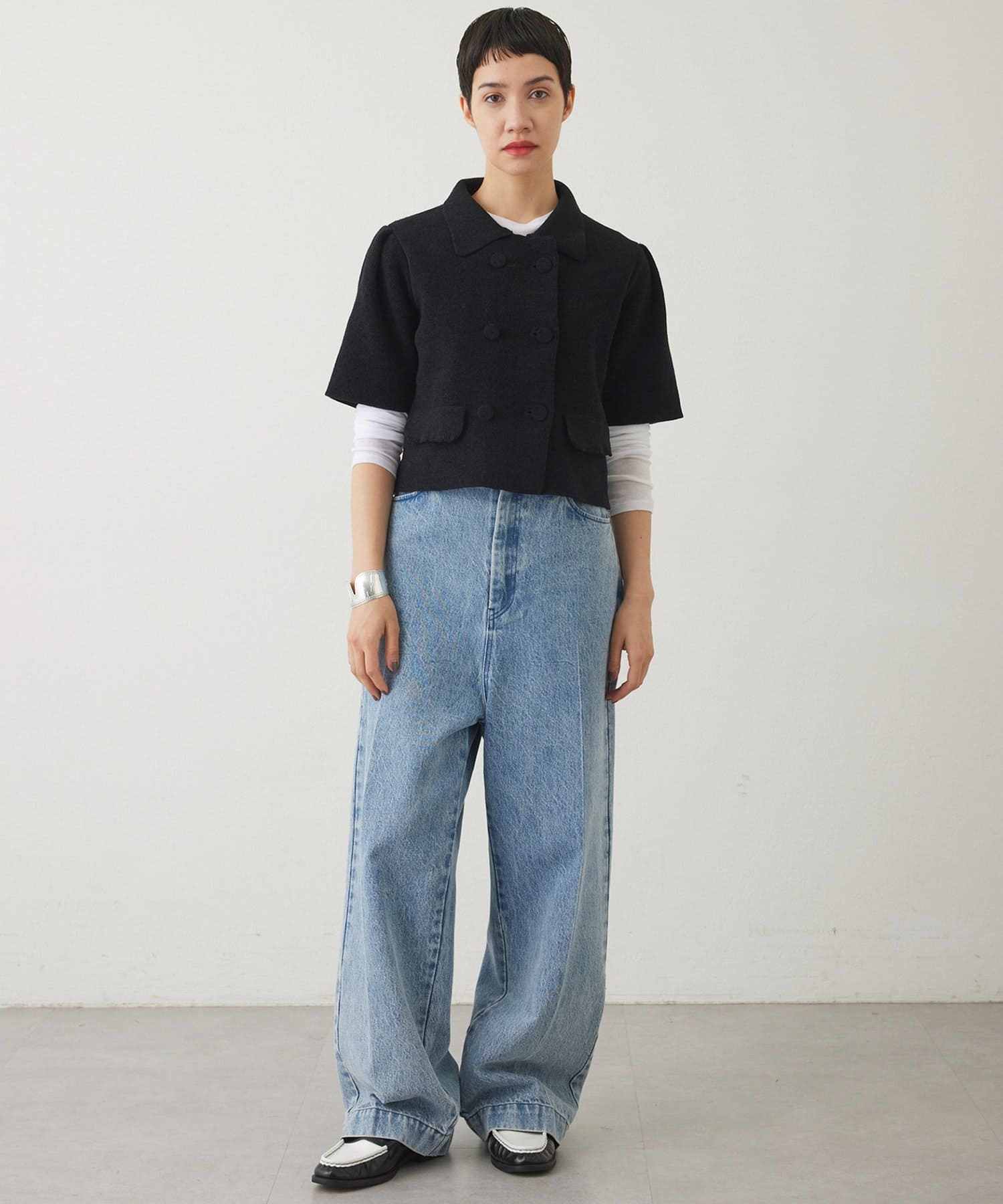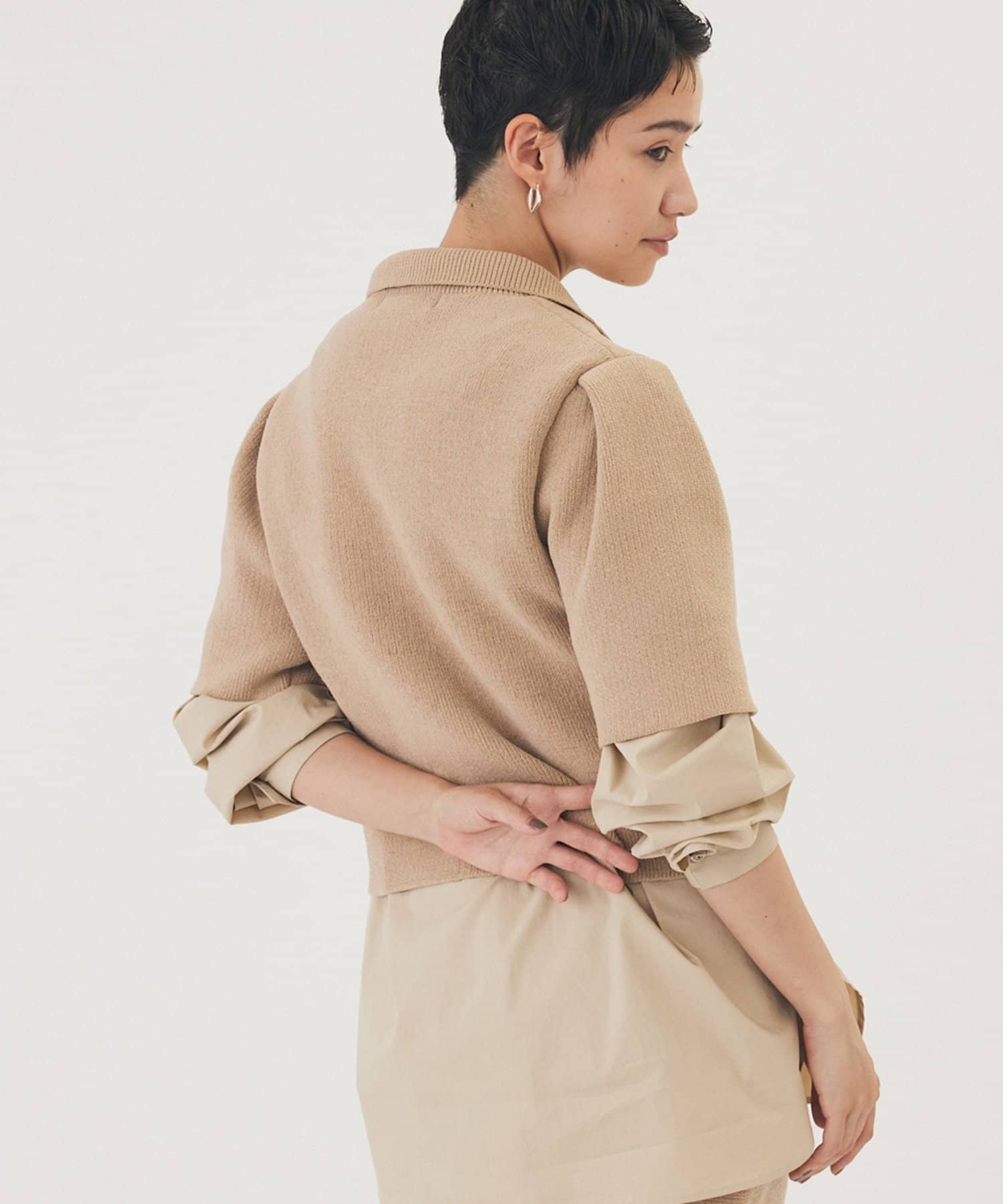 ■襟やダブルボタンのデザインで半袖ジャケットのような雰囲気に仕上げた一枚。