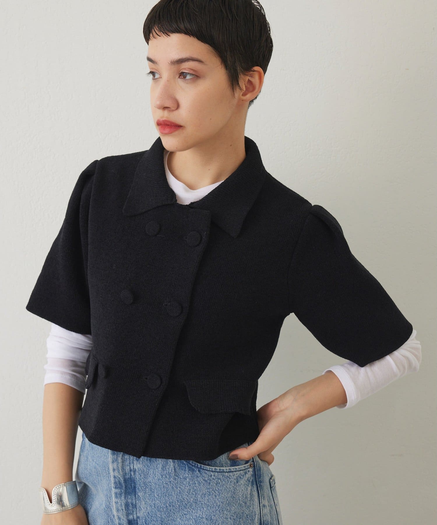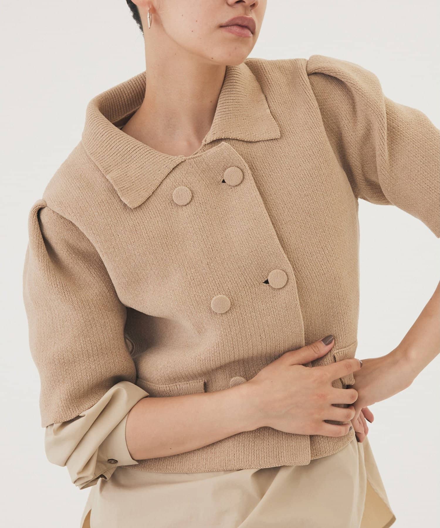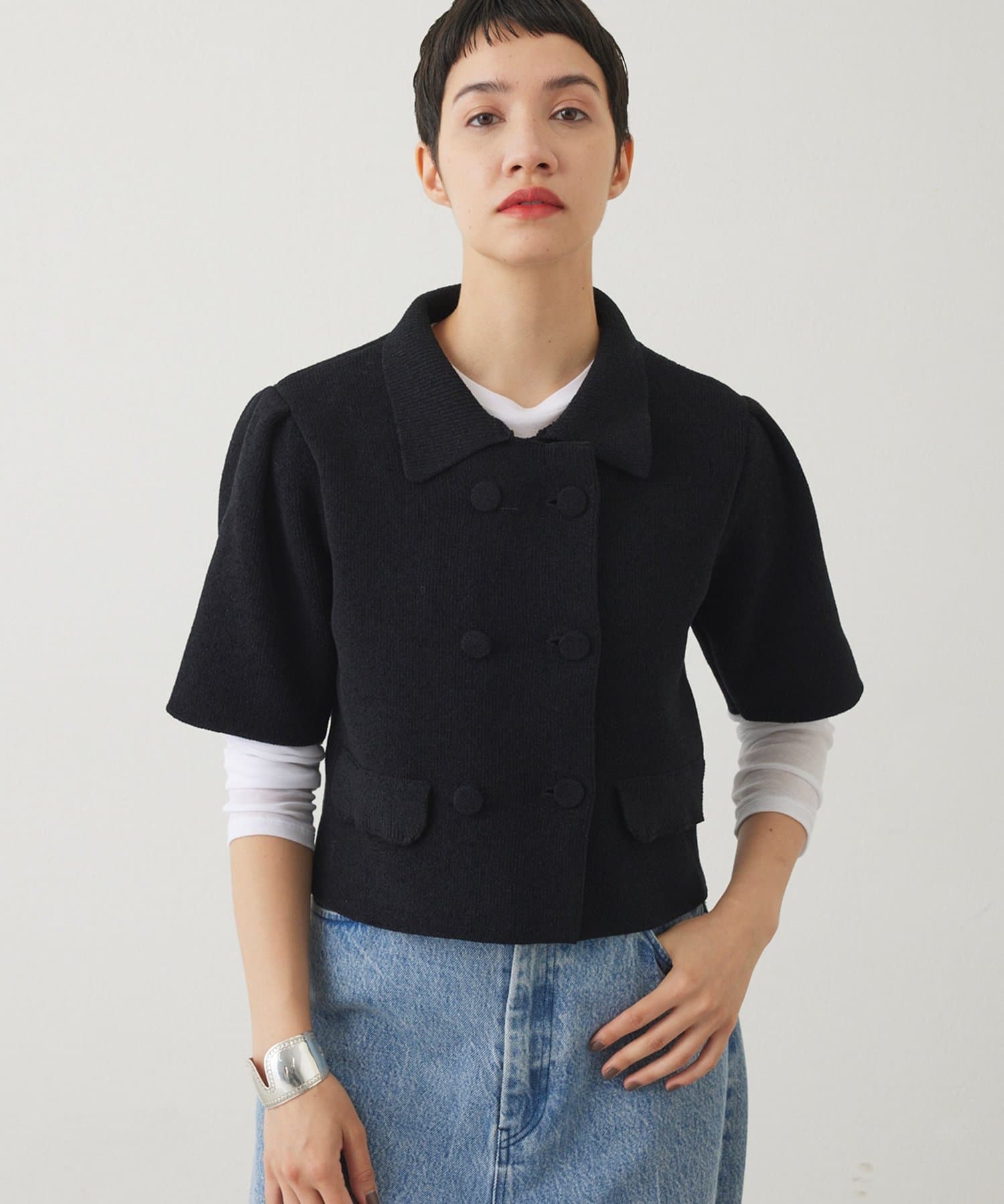 半袖ジャケット風のデザインがクラシカルなニットカーデ