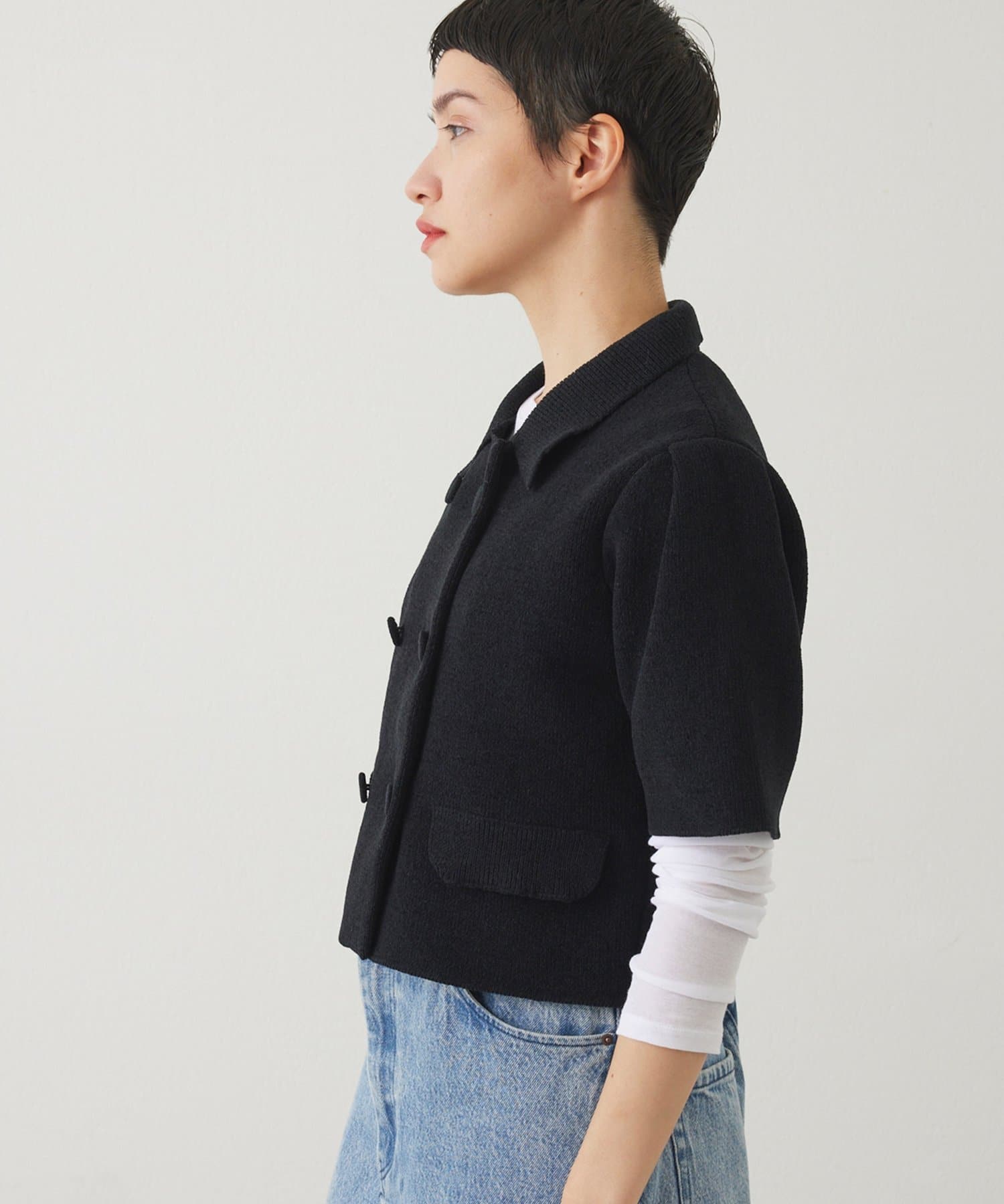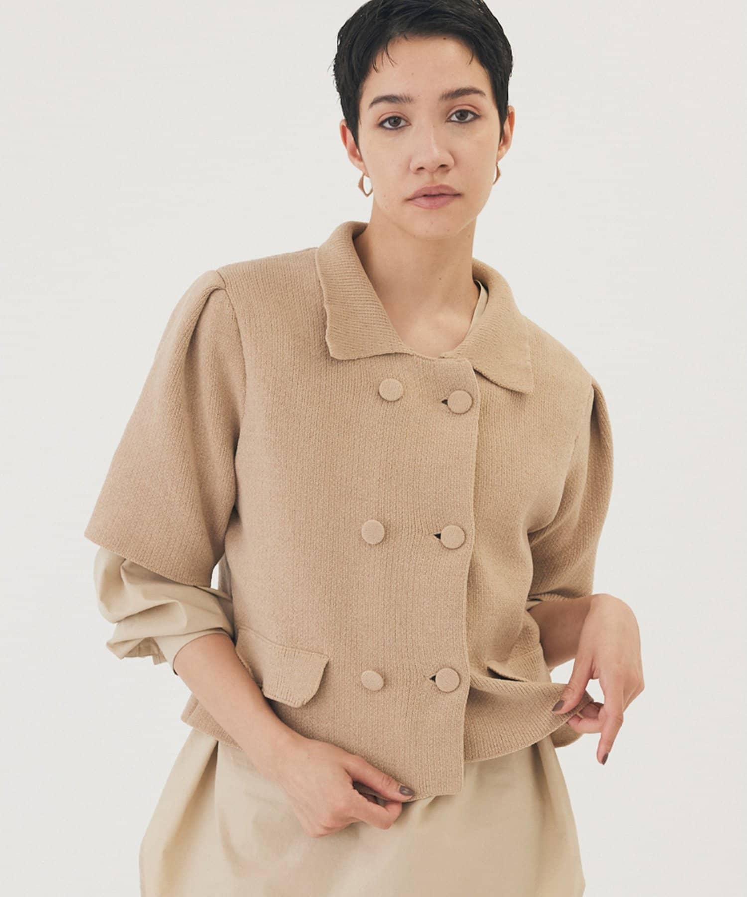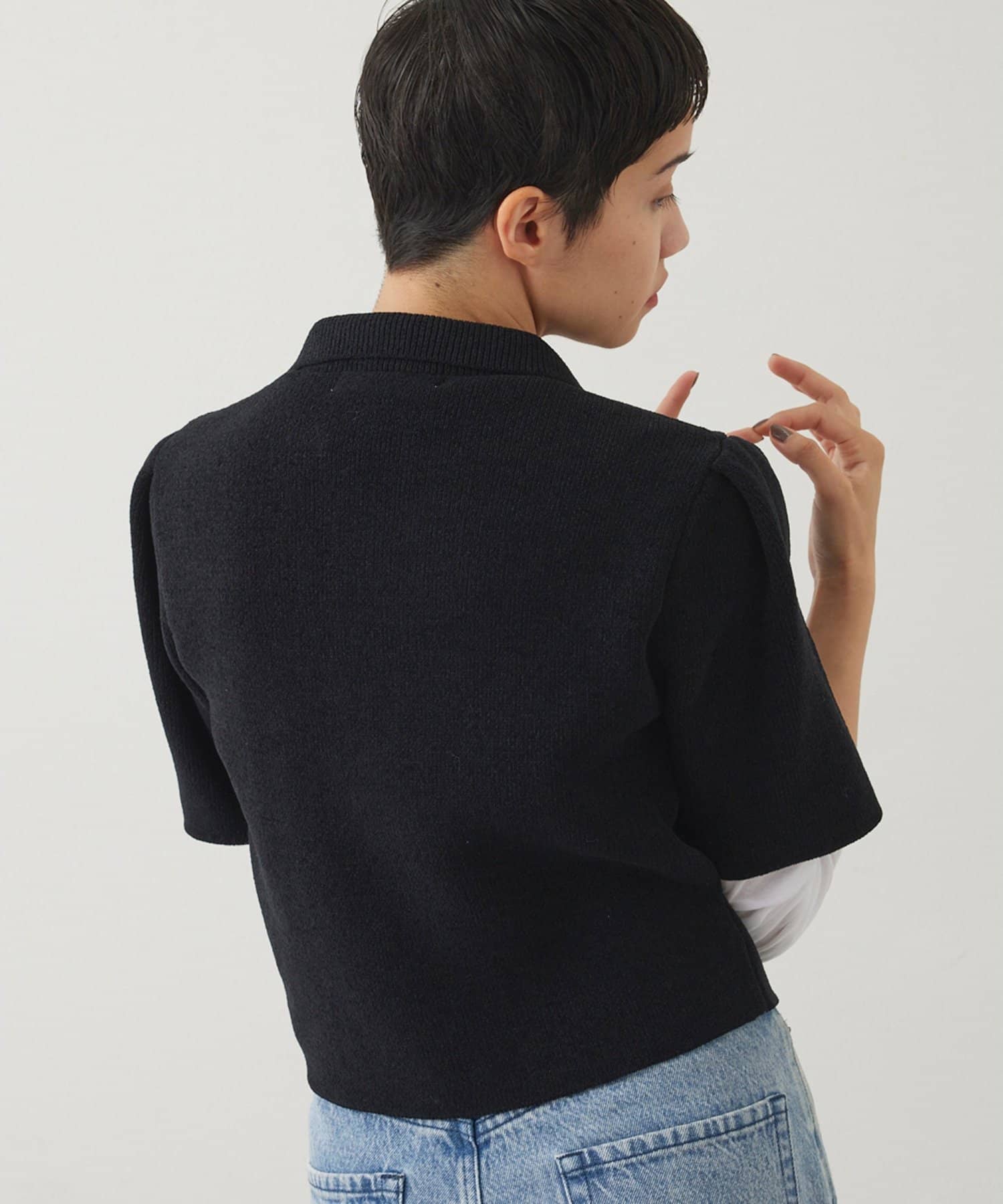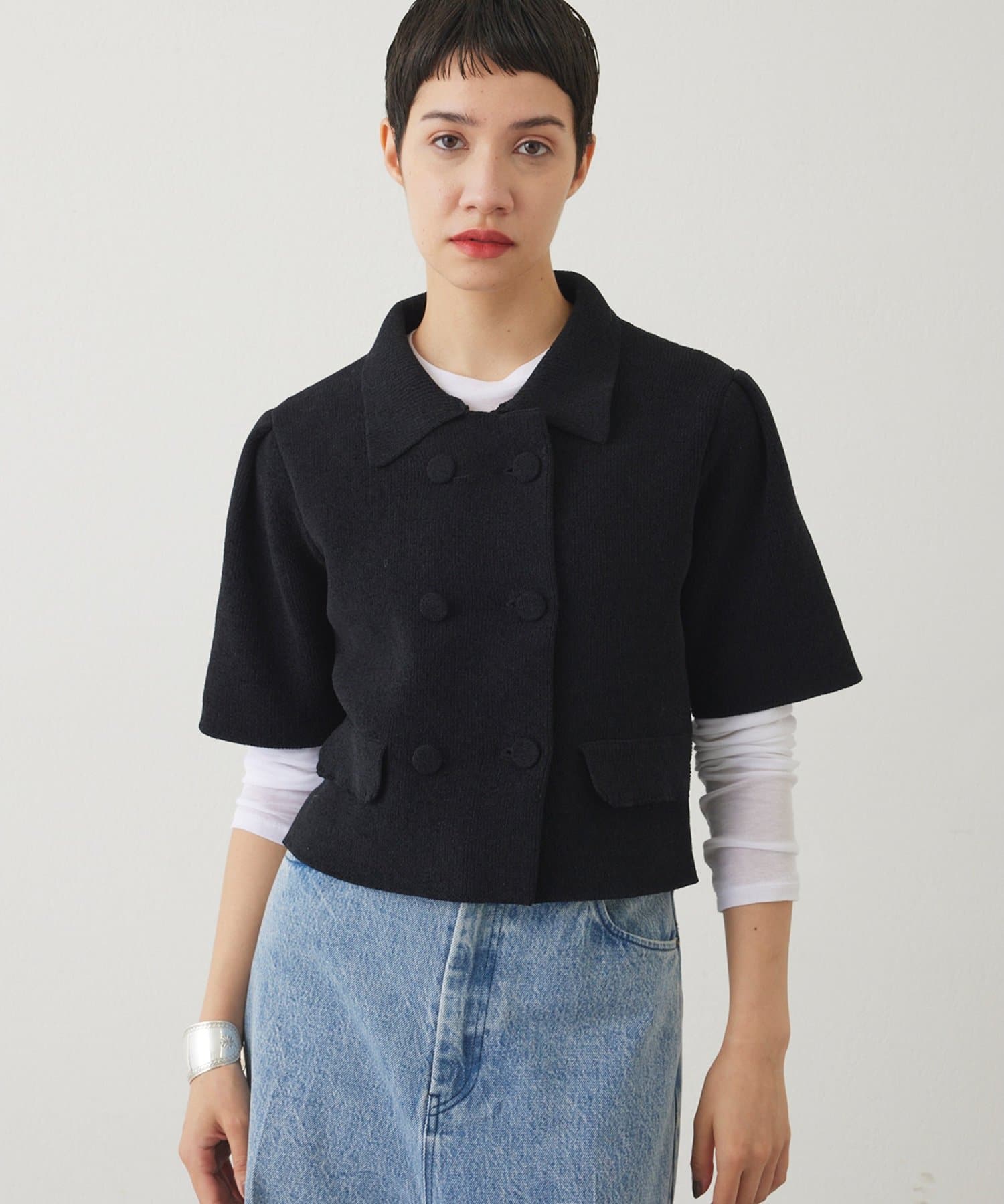 半袖ジャケット風のデザインがクラシカルなニットカーデ
