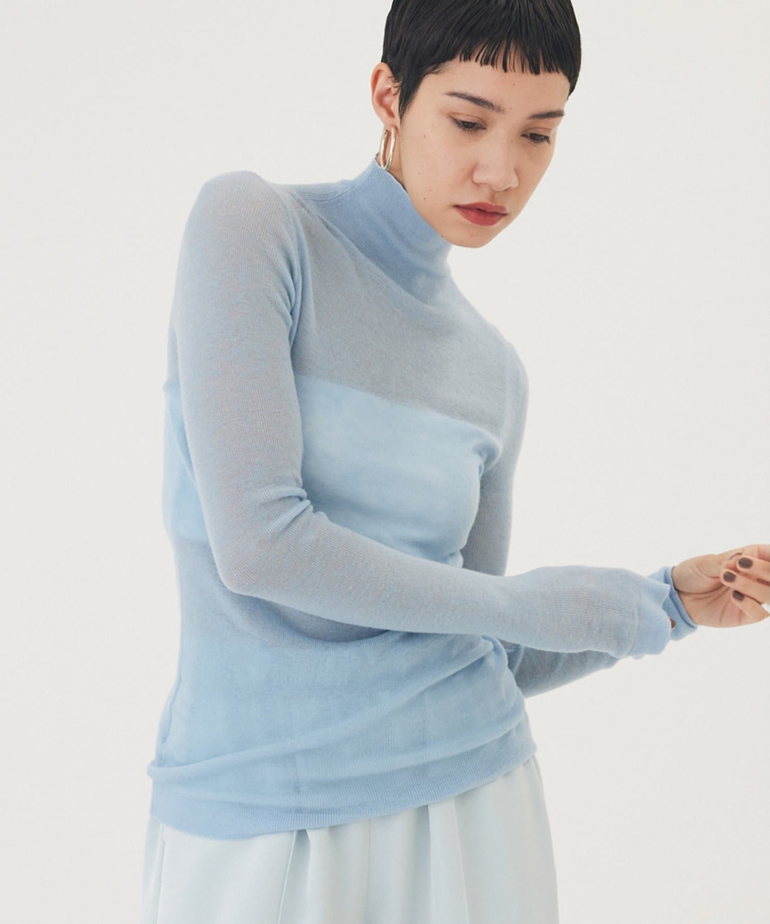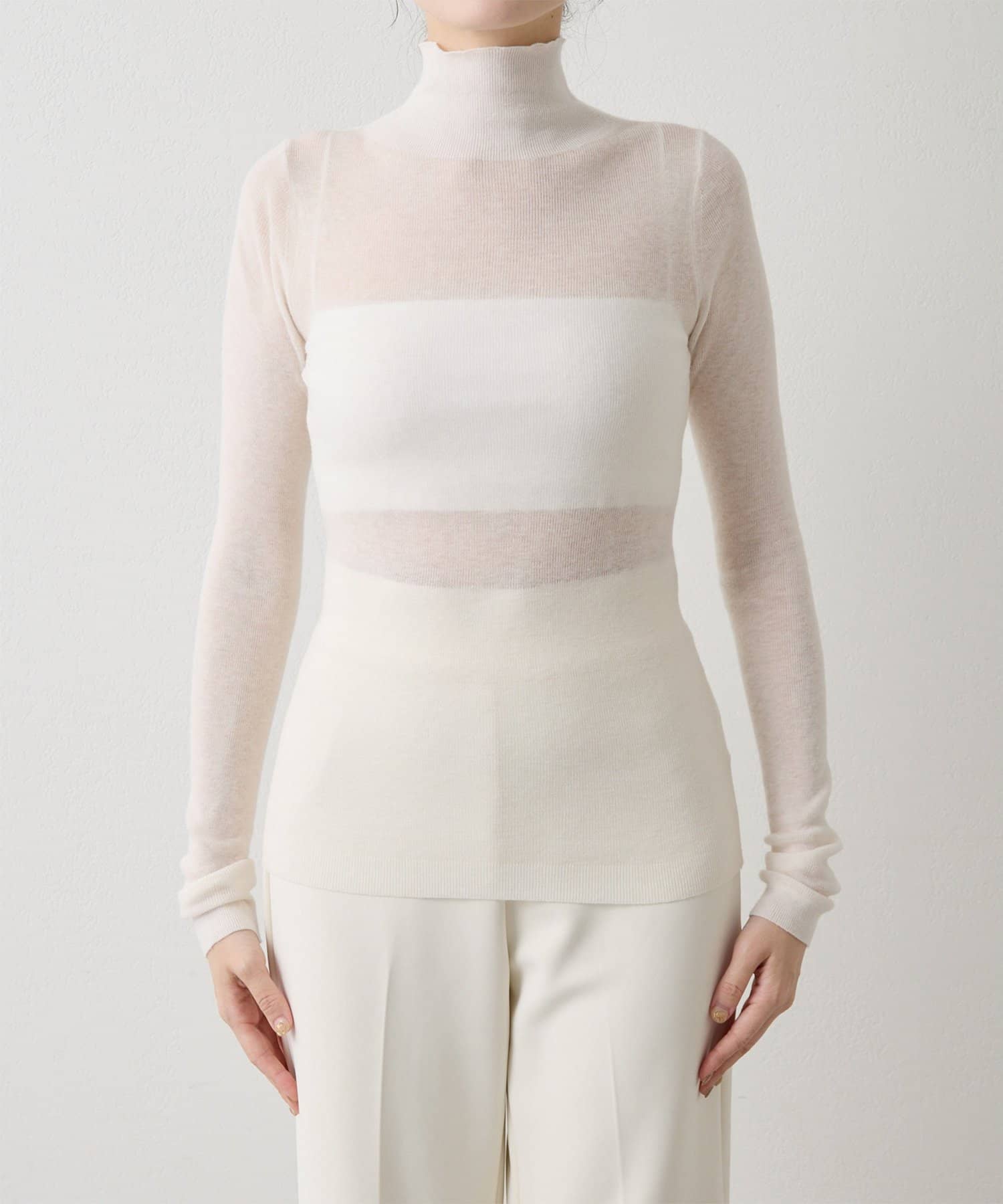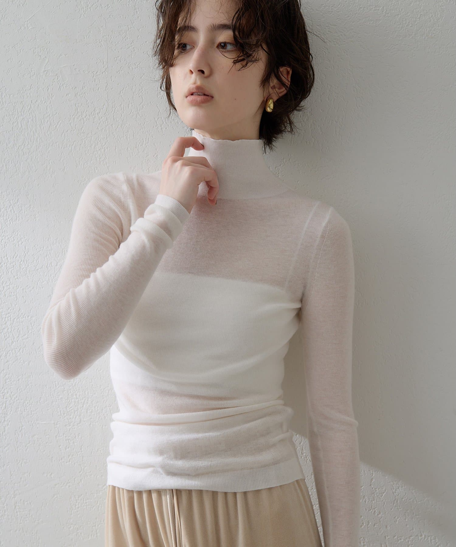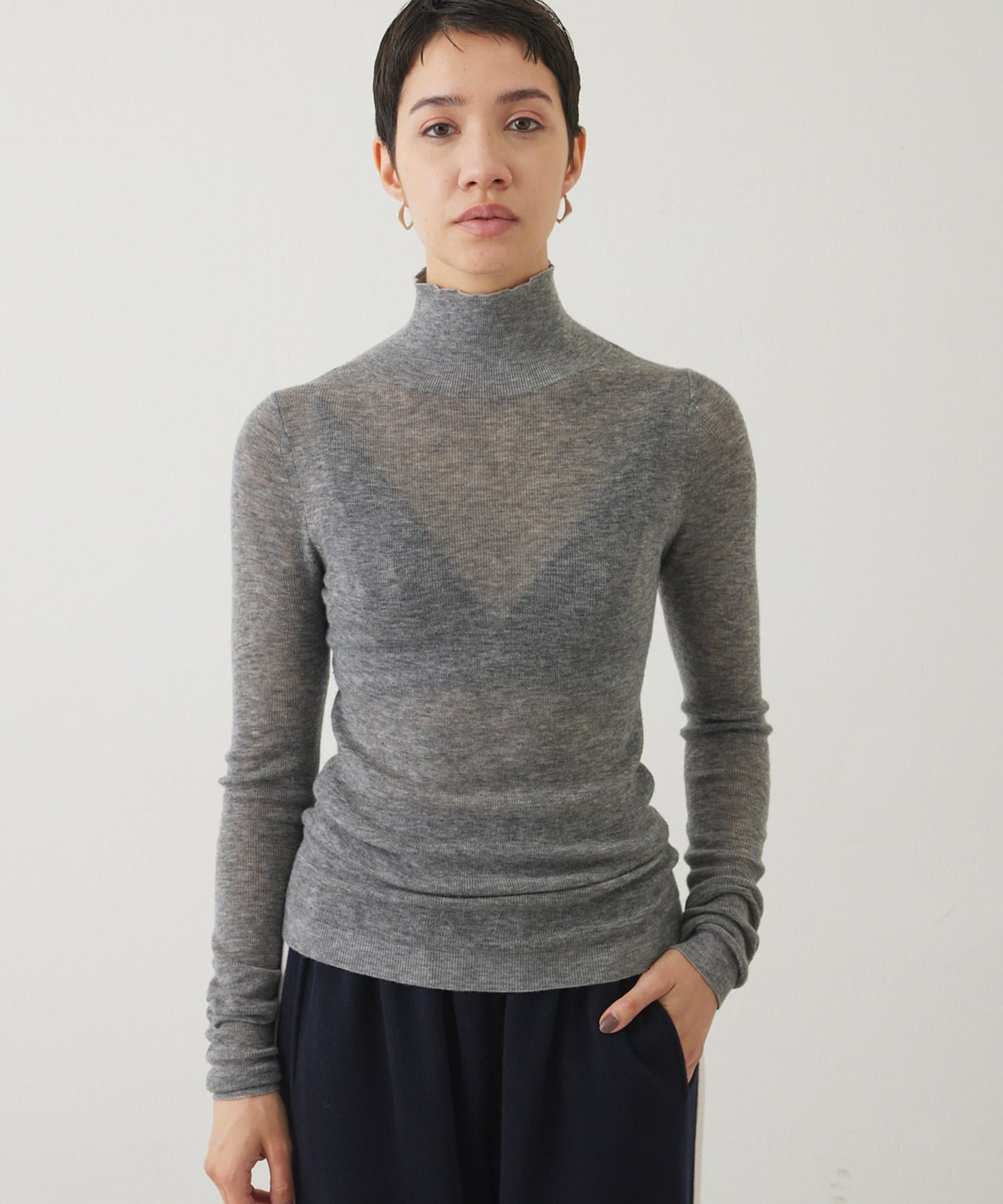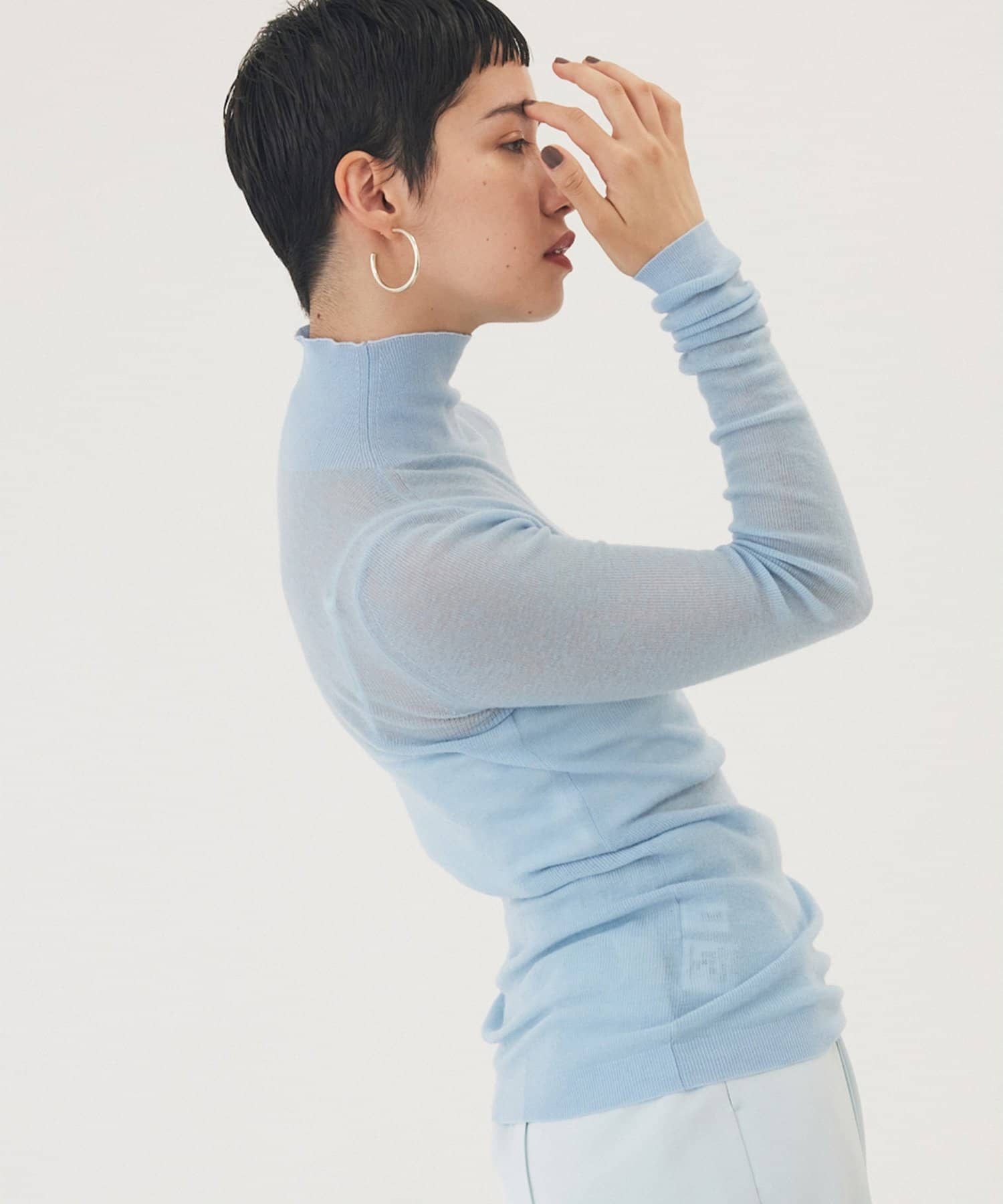 ■特殊な糸を使用し、柔らかく滑らかな肌触りと繊細な編地が特徴のタートルニット。
