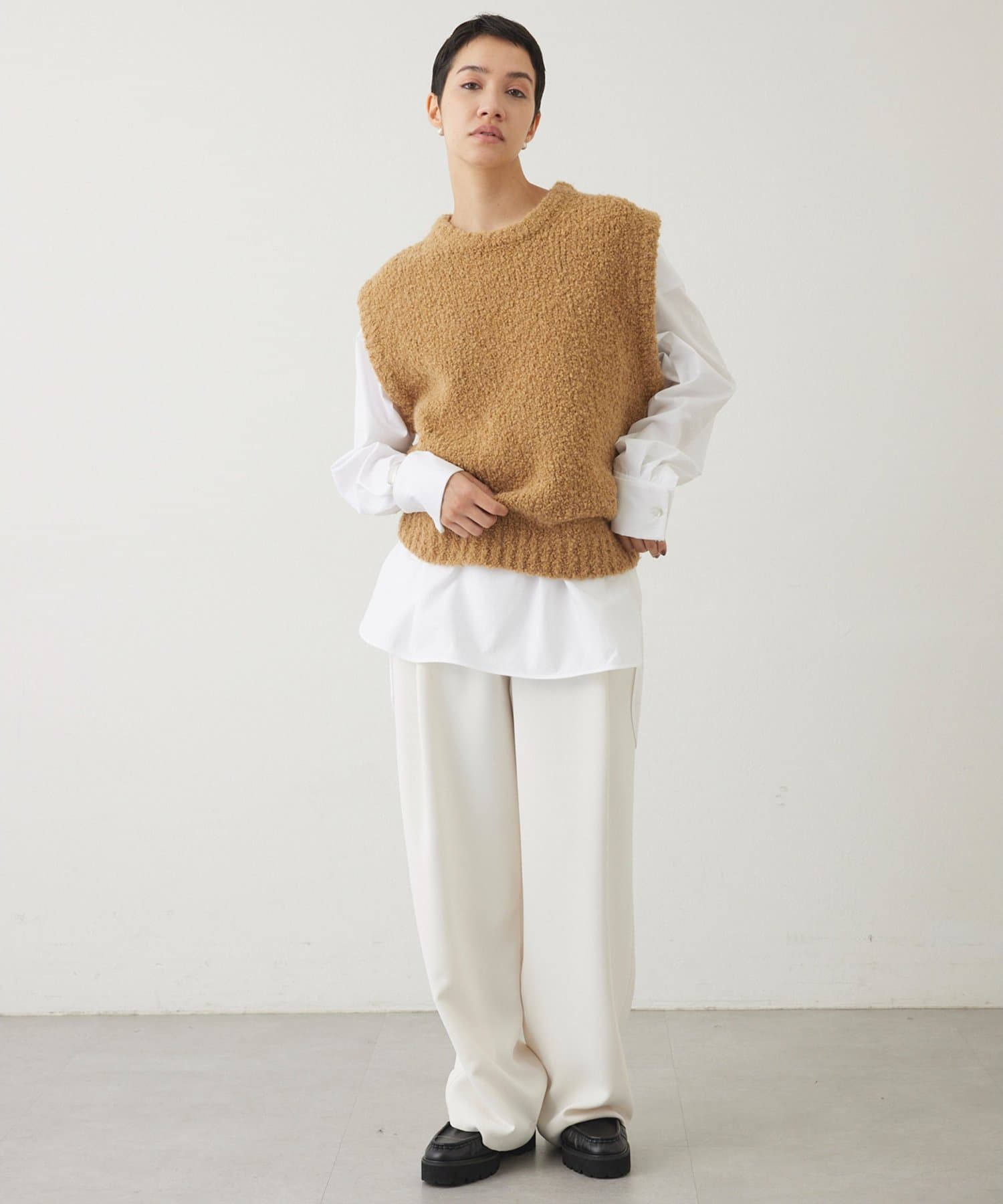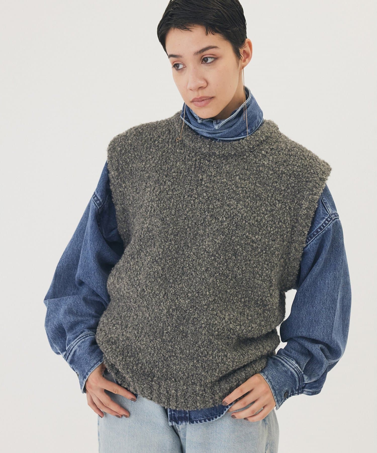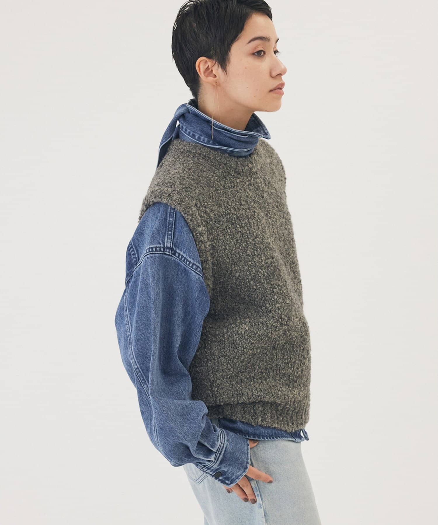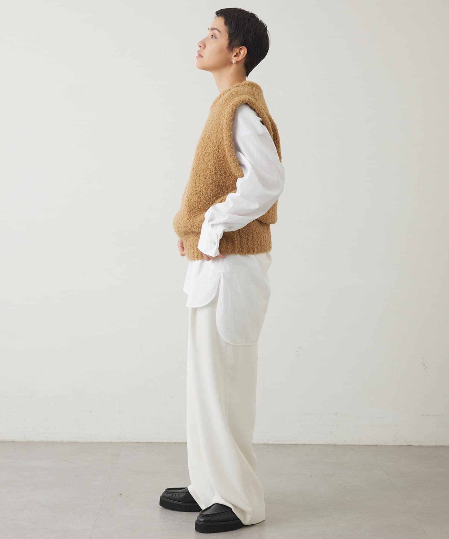 ■広めのアームホールでシャツやカットソーと重ね着しやすいのも◎。