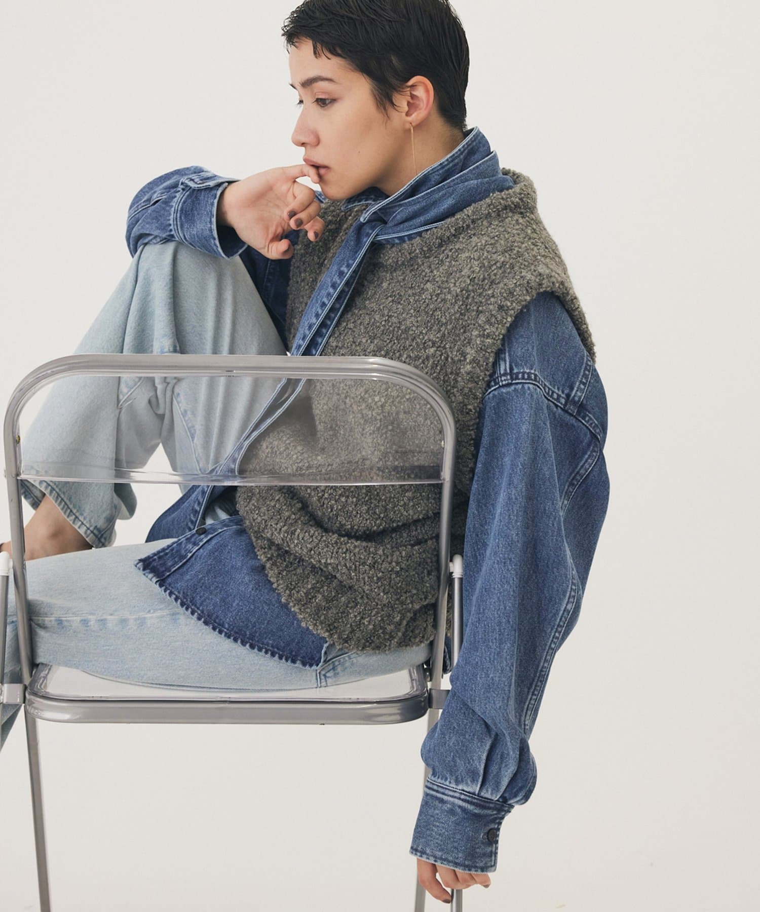 ■ゆったりとした身幅に対し丈は短めにし、スカートでもパンツでもバランスのとりやすいデザインに。
