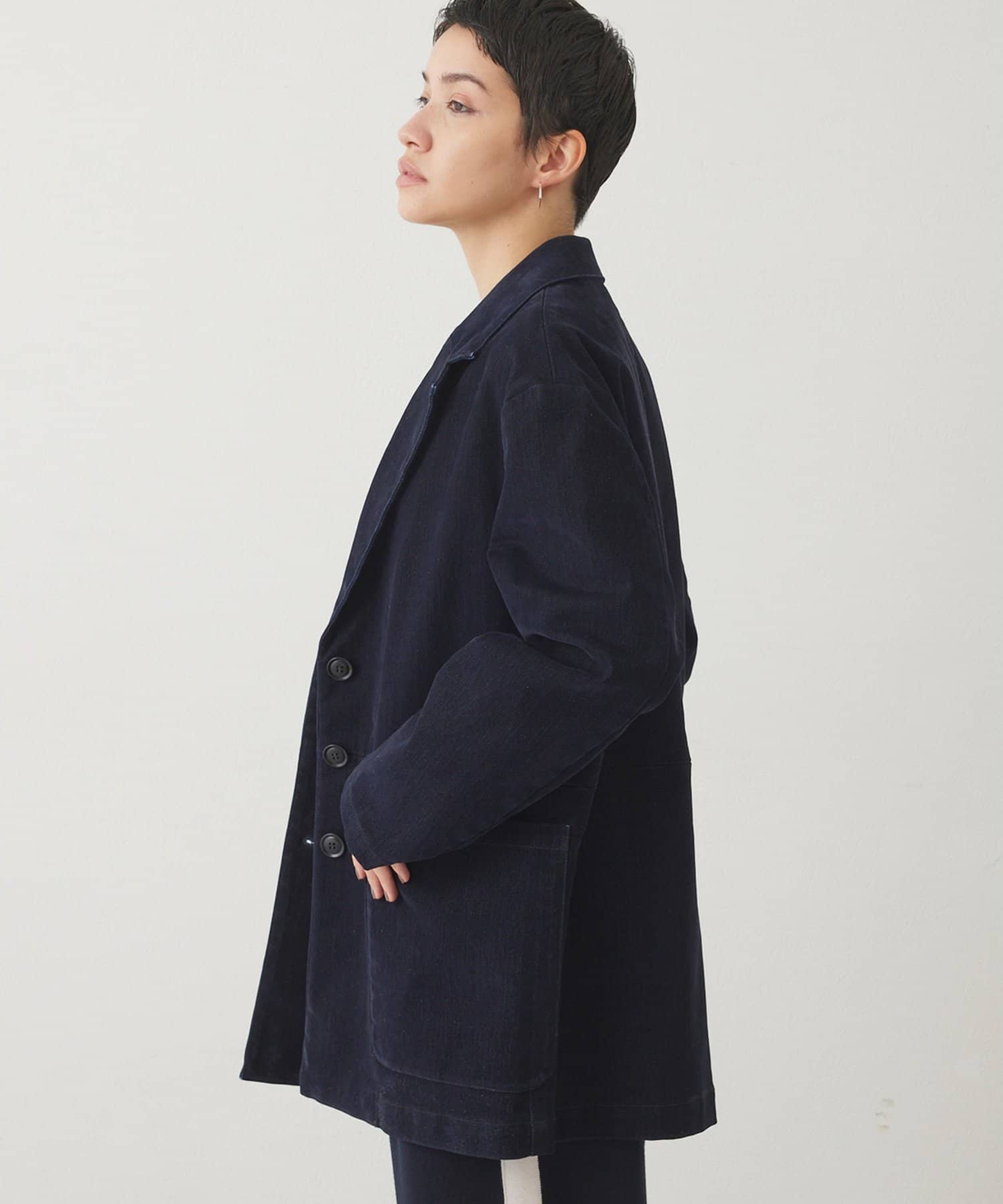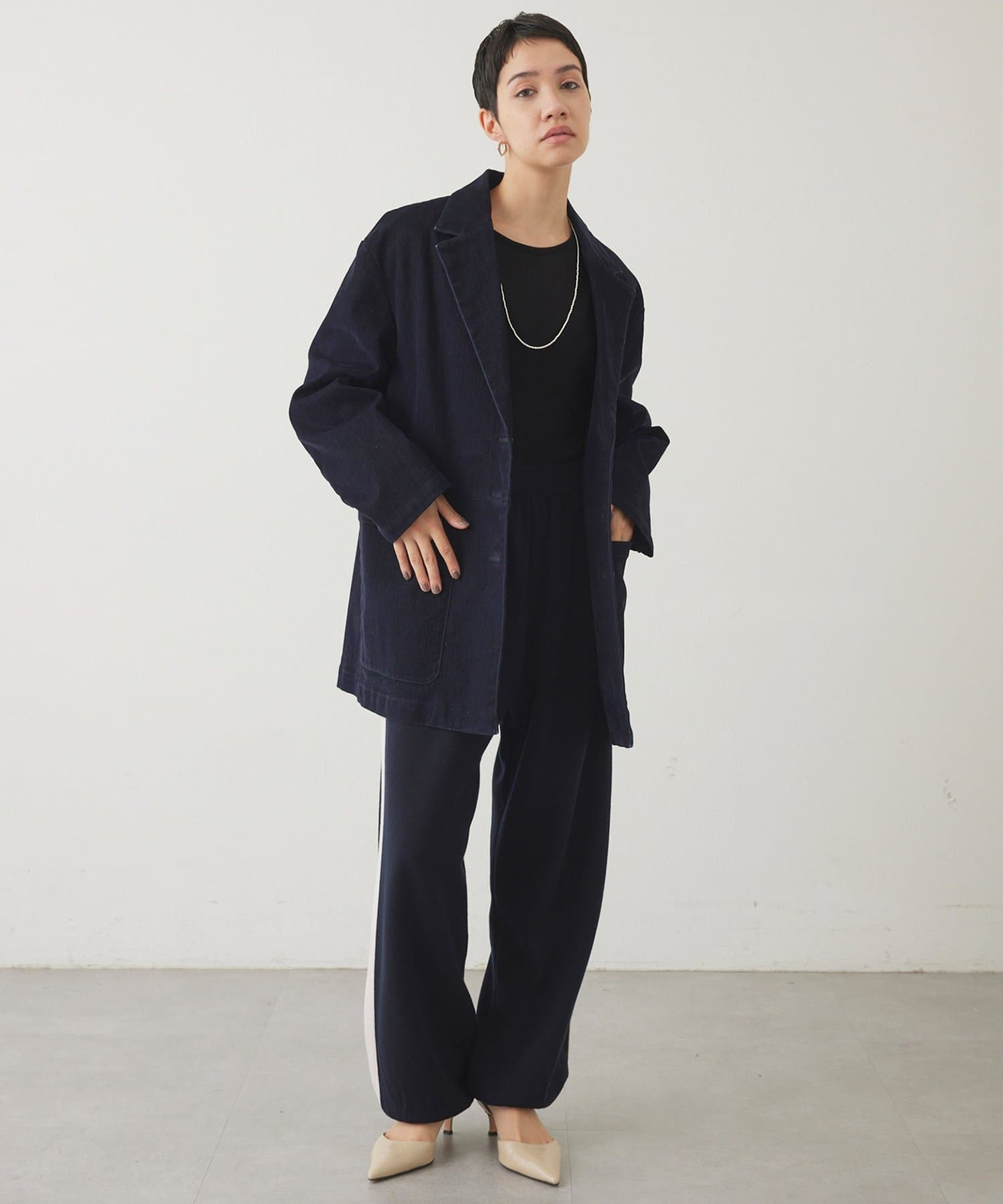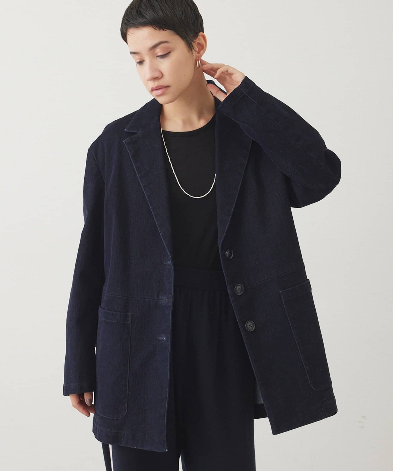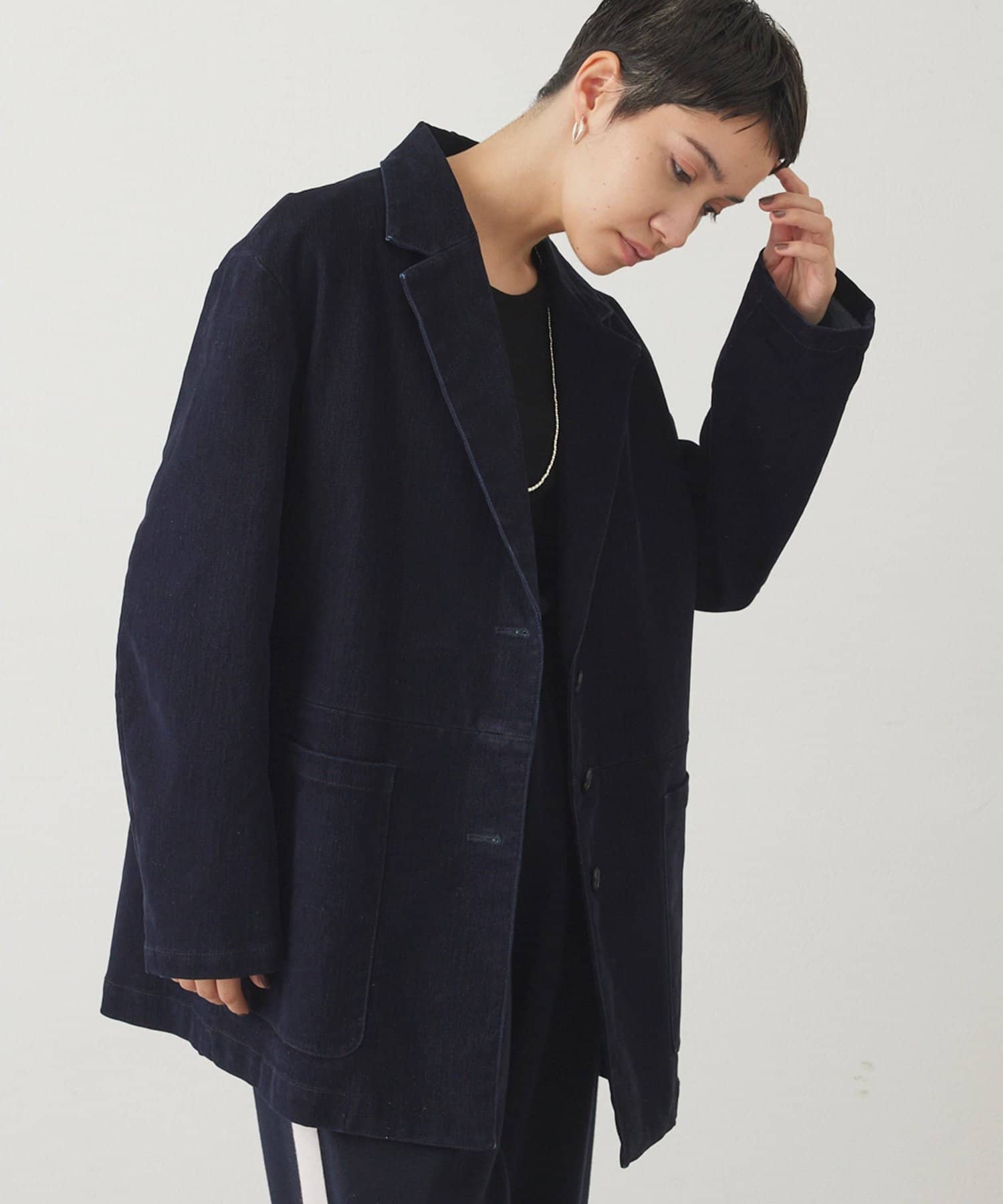 ■デニムのもつ硬さと張り感がシルエットをきれいに見せ、さっと羽織るだけで着映えるアイテム。