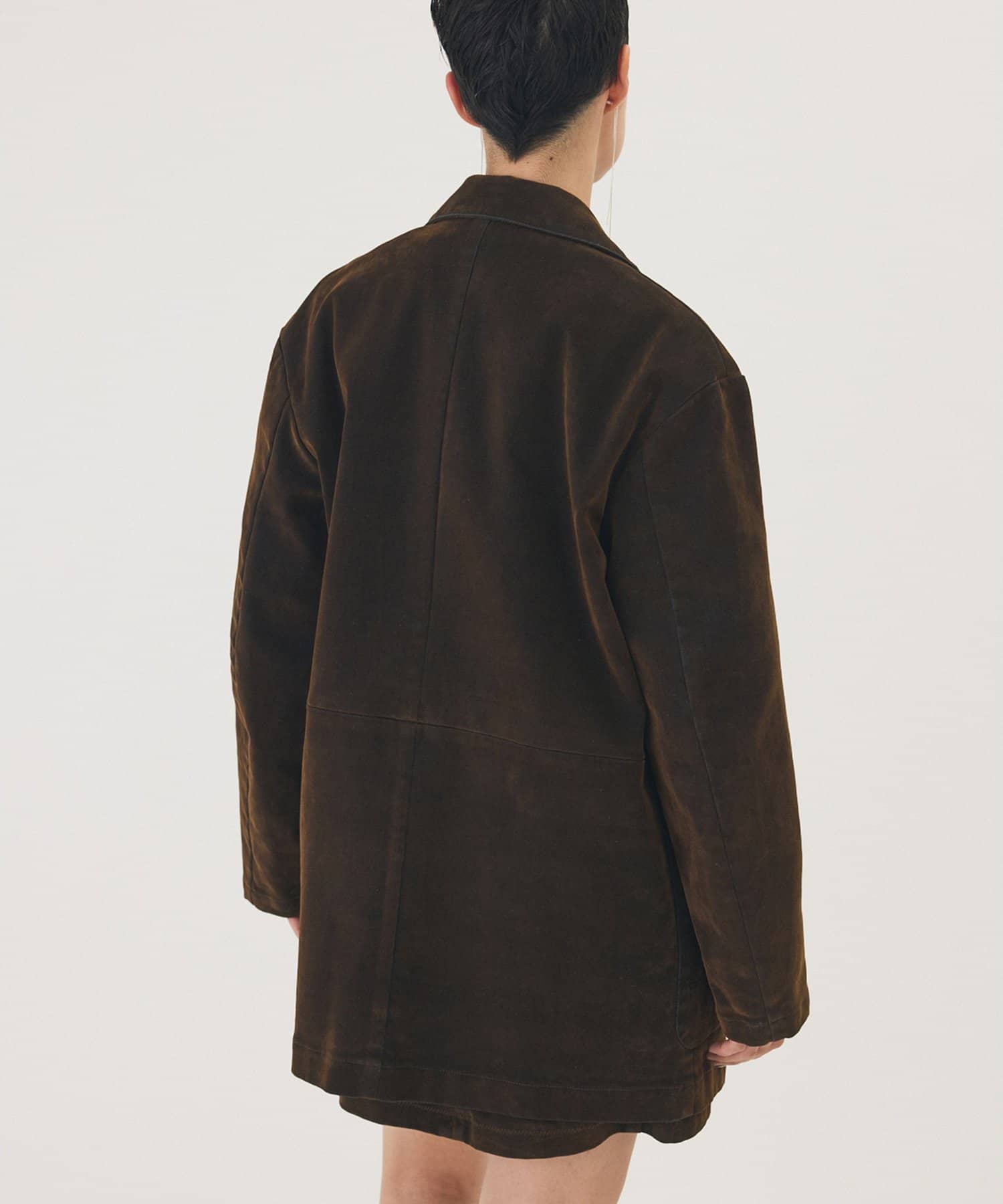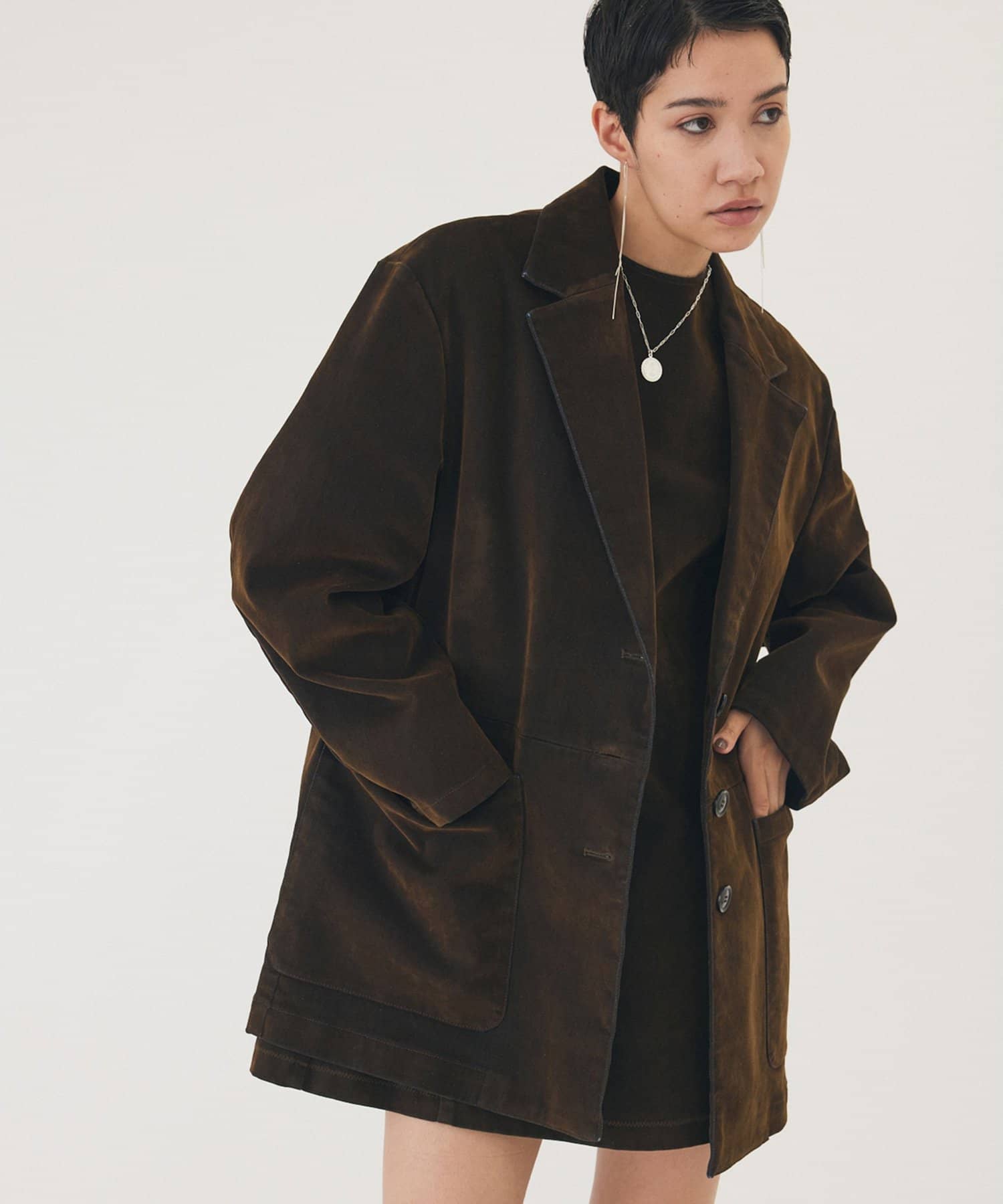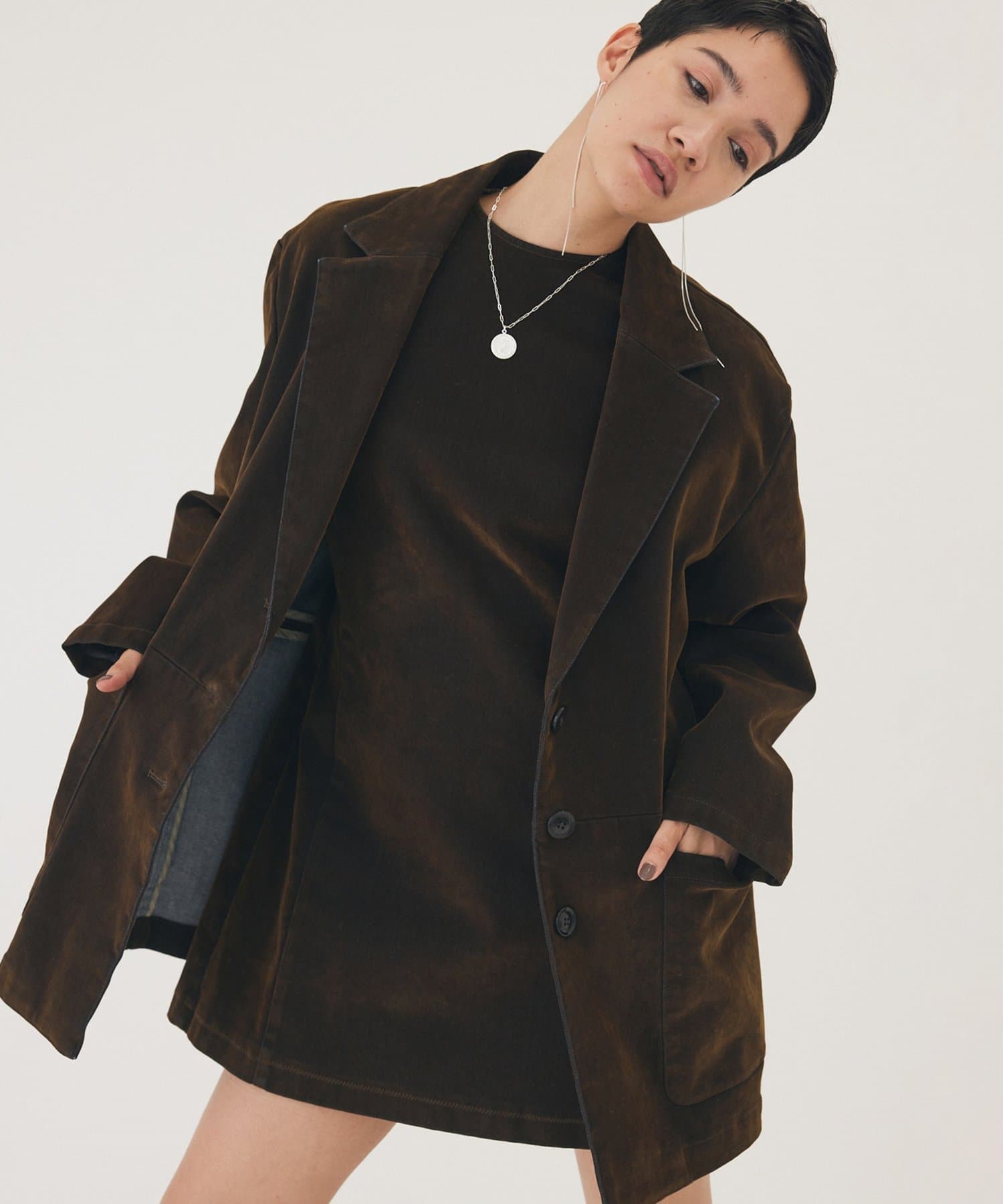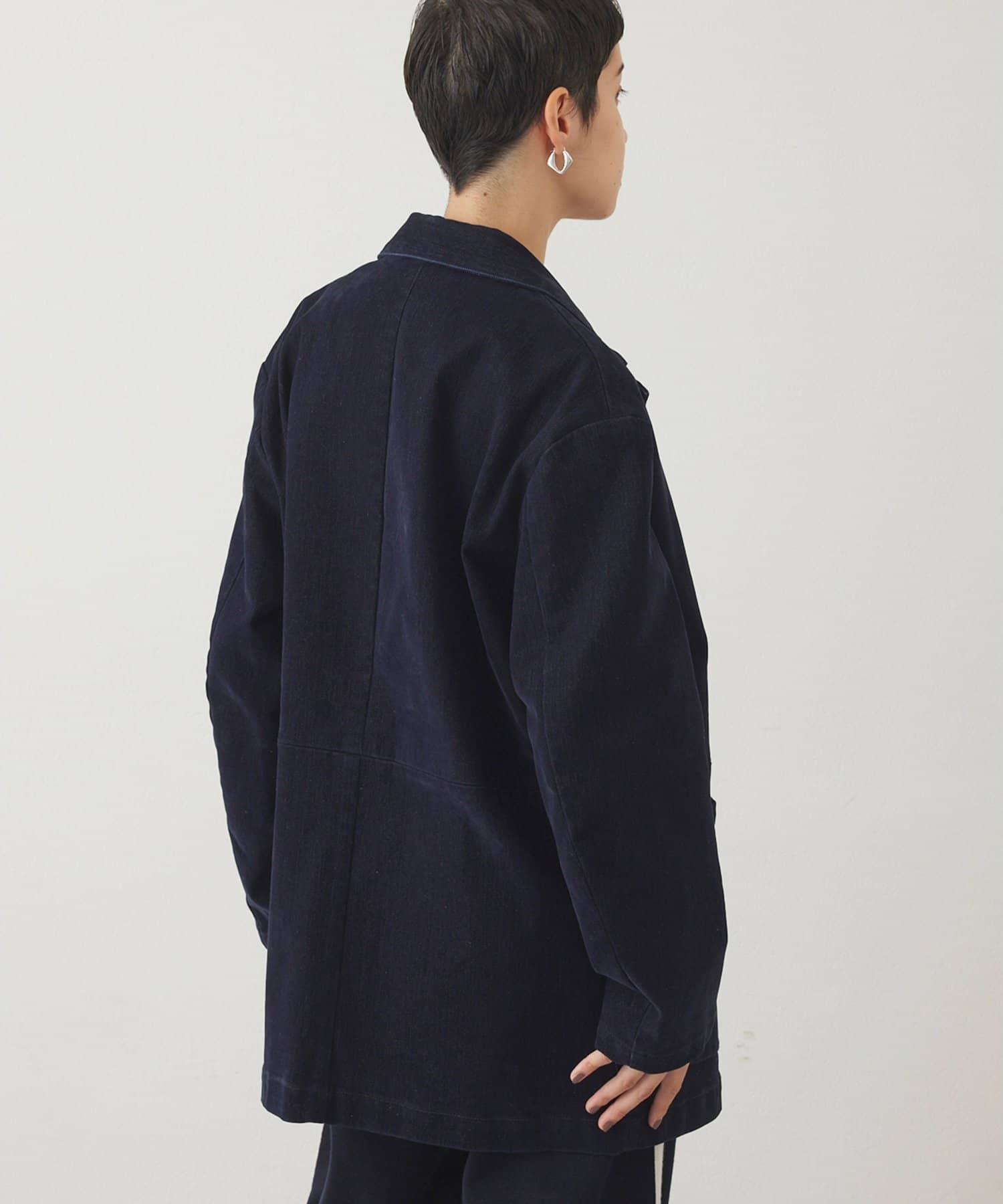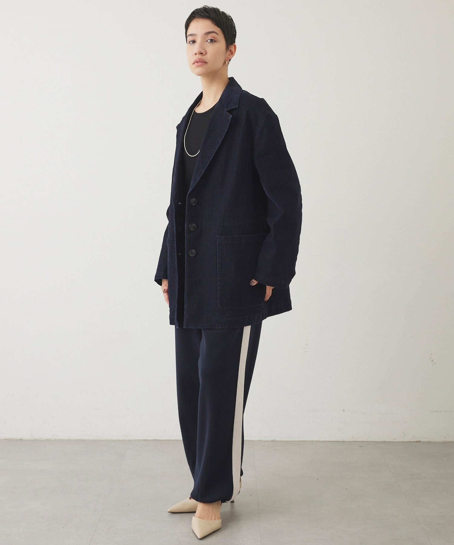■デニムのもつ硬さと張り感がシルエットをきれいに見せ、さっと羽織るだけで着映えるアイテム。