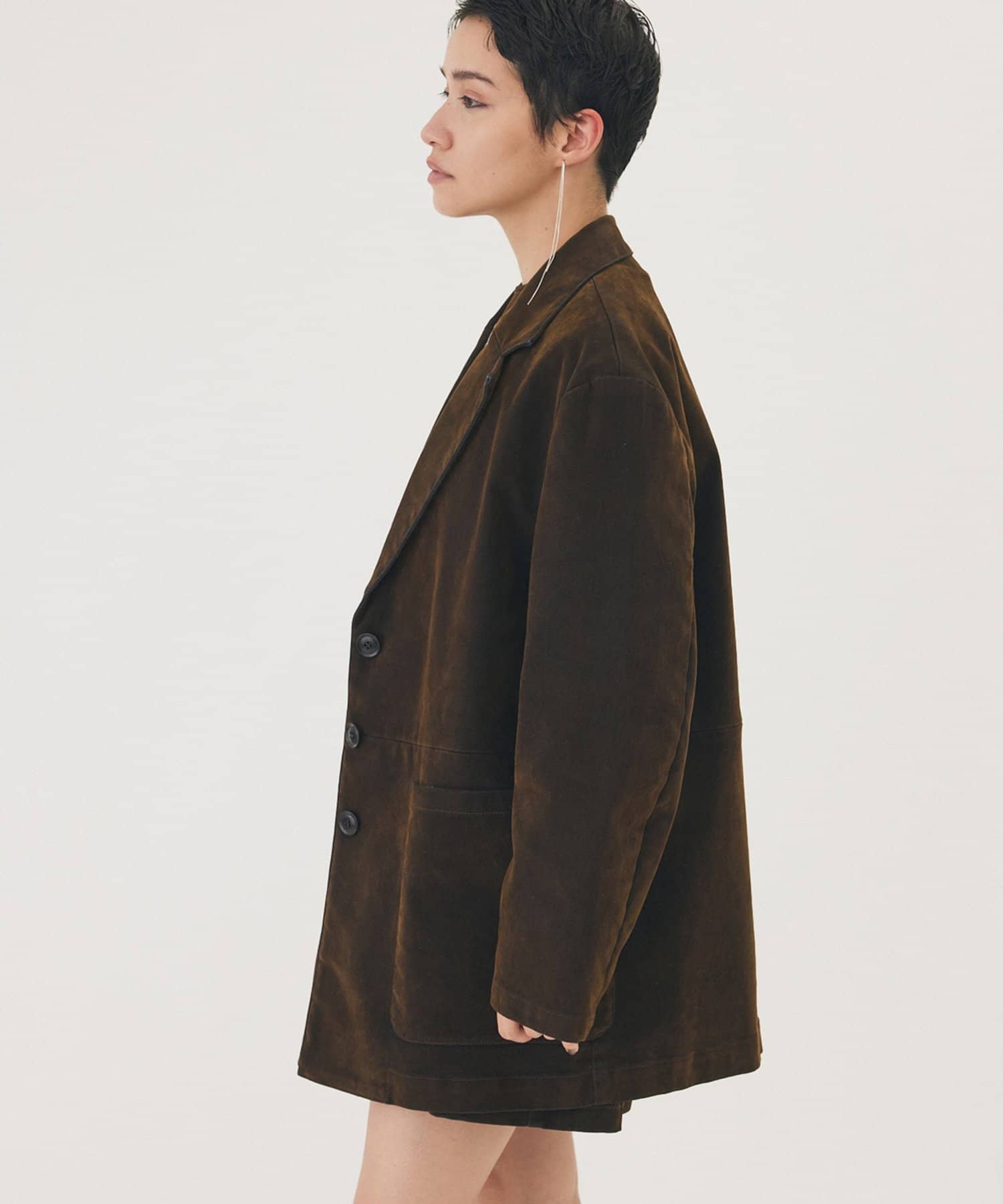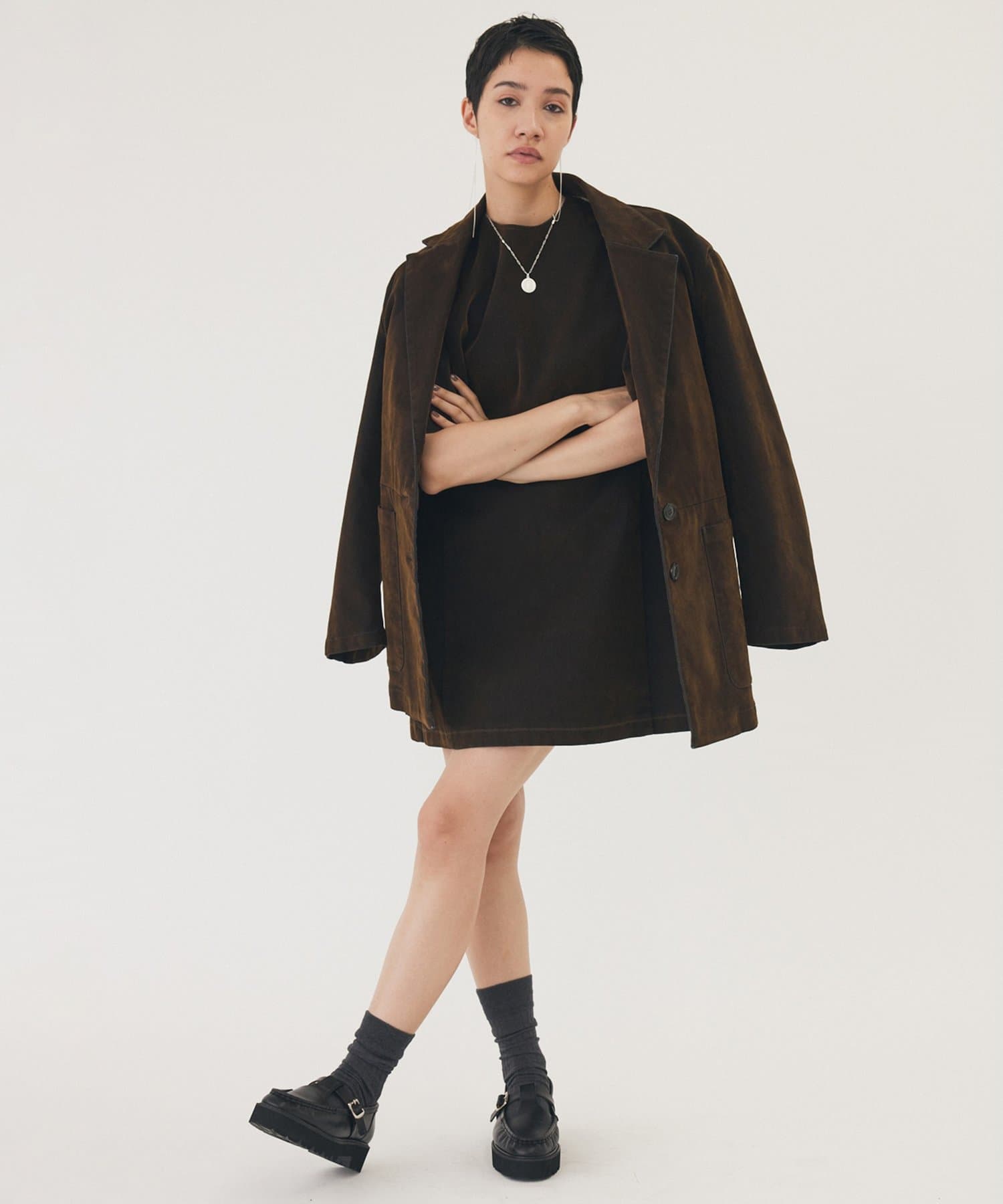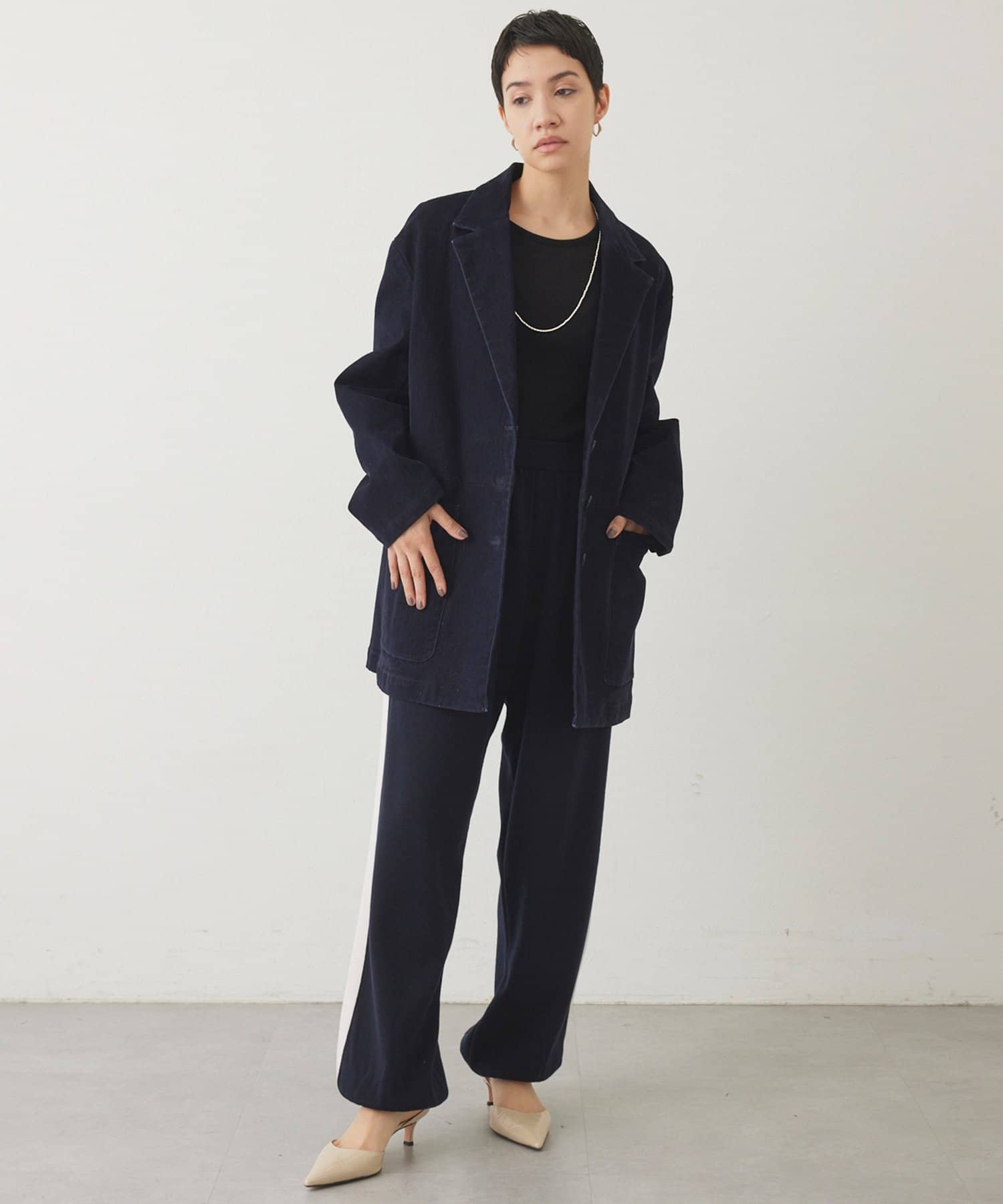 ■肩幅を広めにしたボックスシルエットでメンズライクな雰囲気に仕上げたデザイン。
