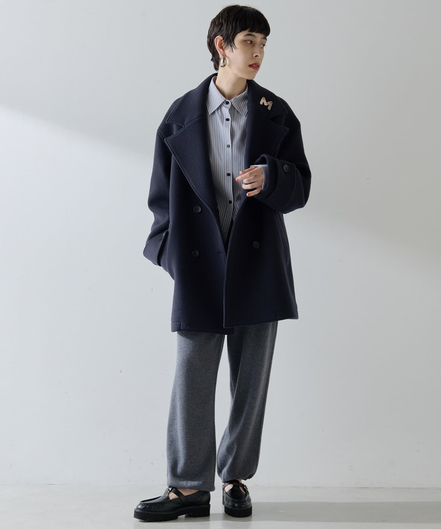 ■重ね着にも使いやすいレギュラーカラーで、一枚ではもちろんニットインなどにも着回しの効くアイテム。