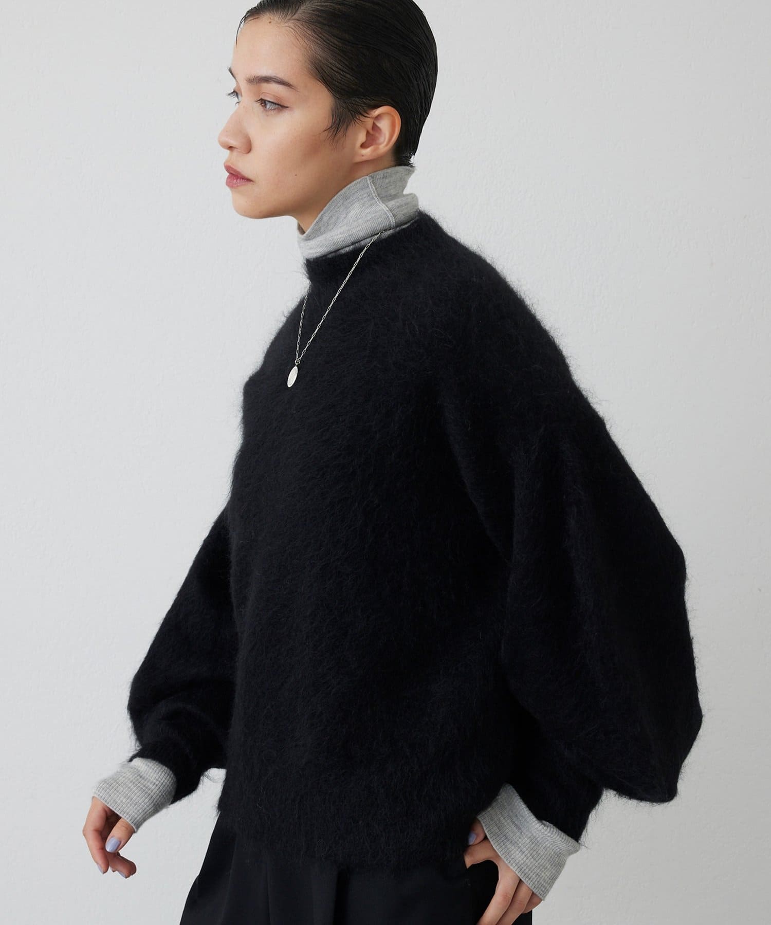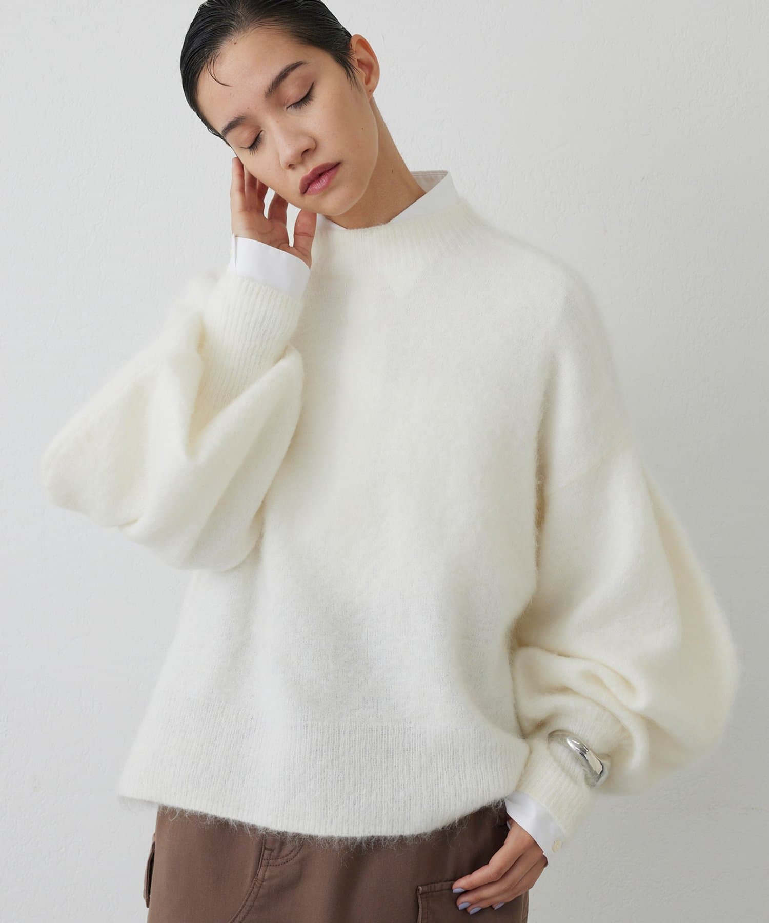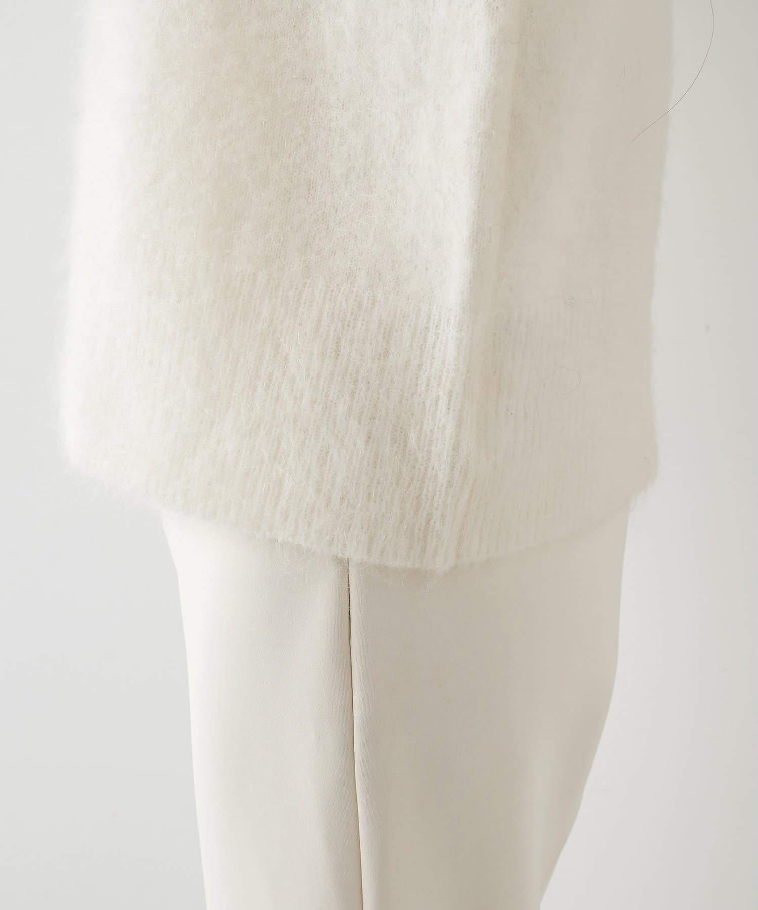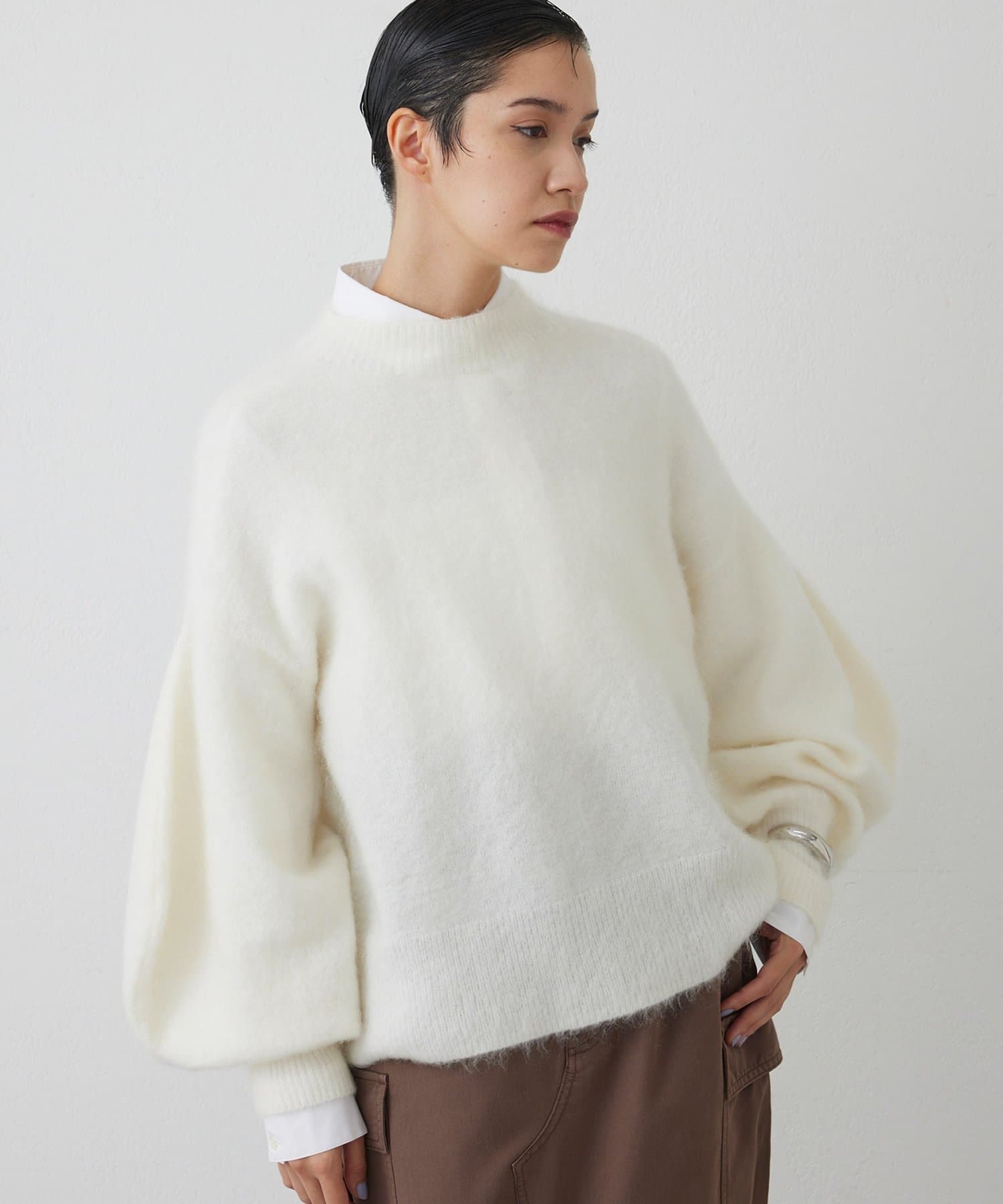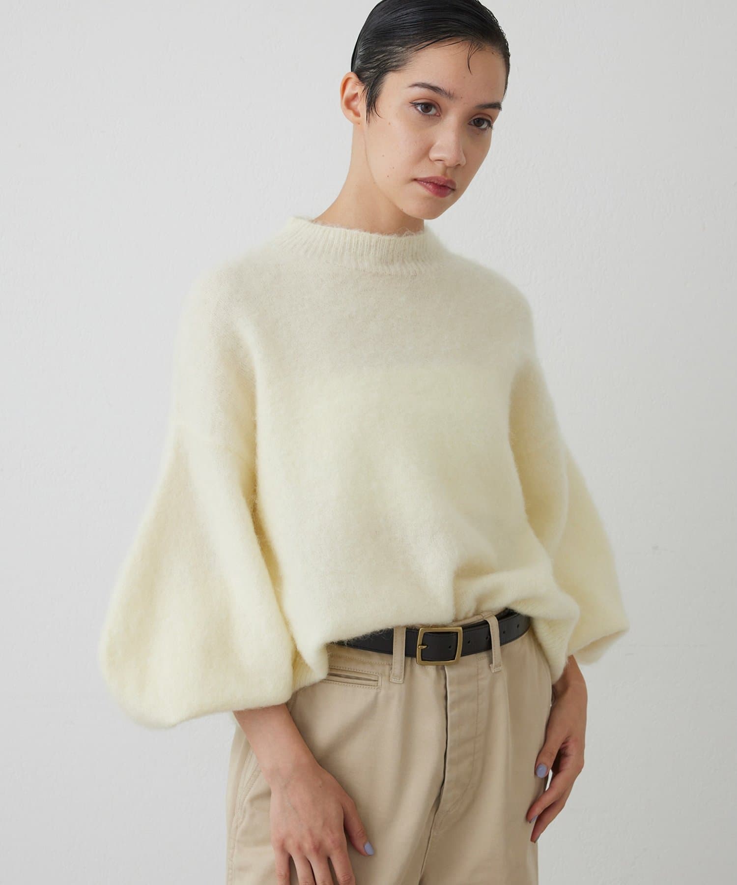 ■ふわっとした表面感のあるモヘヤ混素材が温かみを感じるニットプルオーバー。