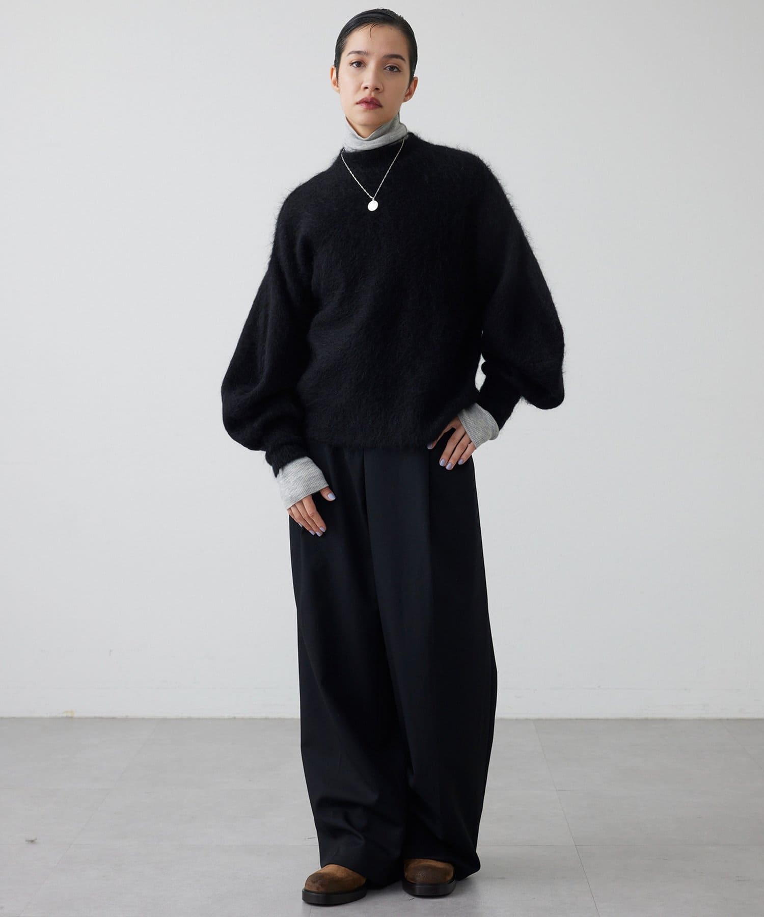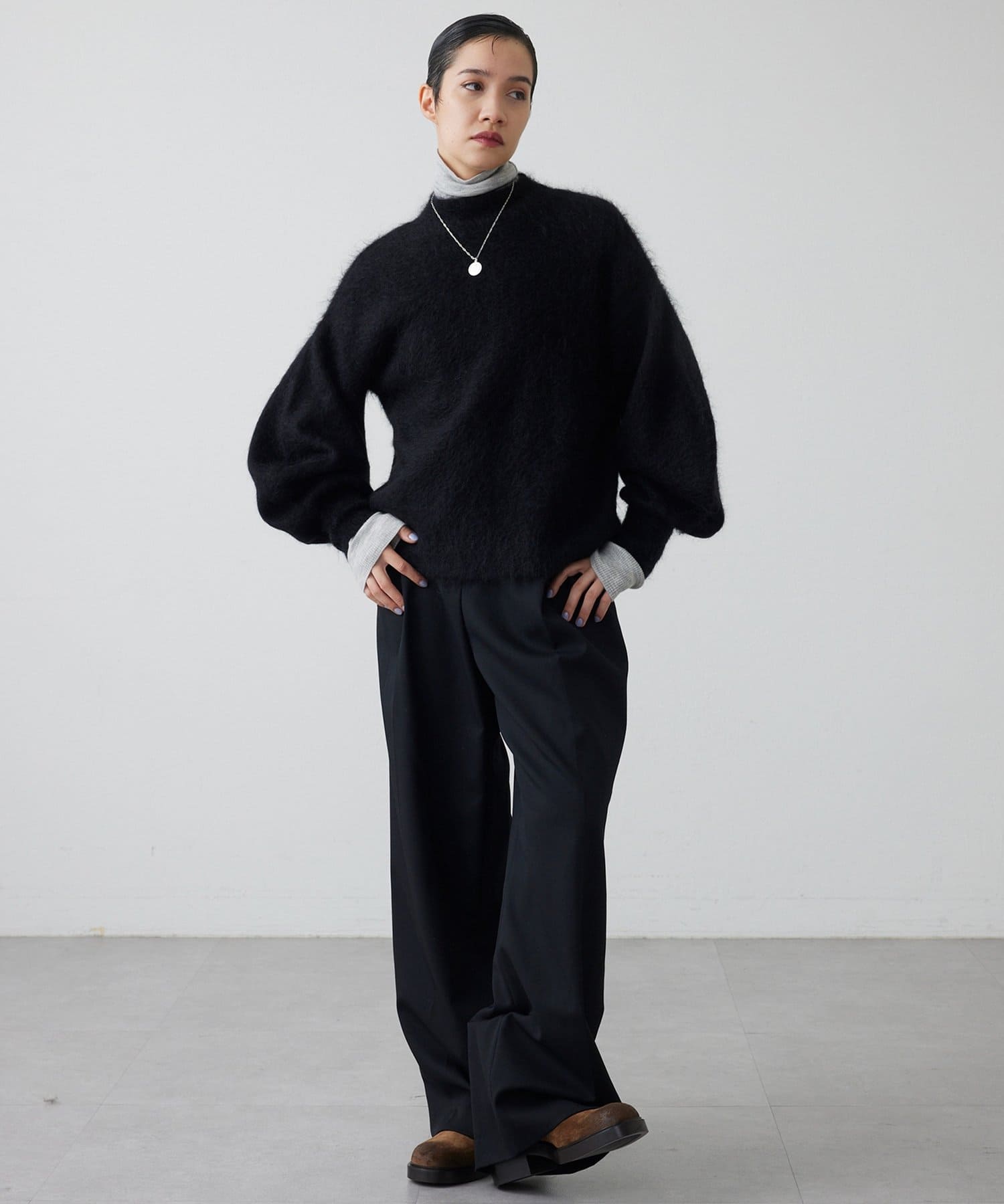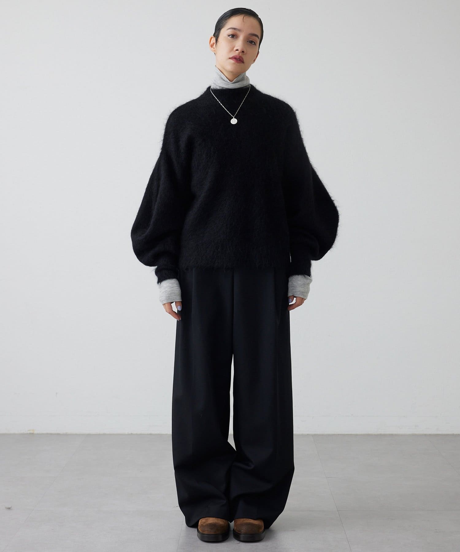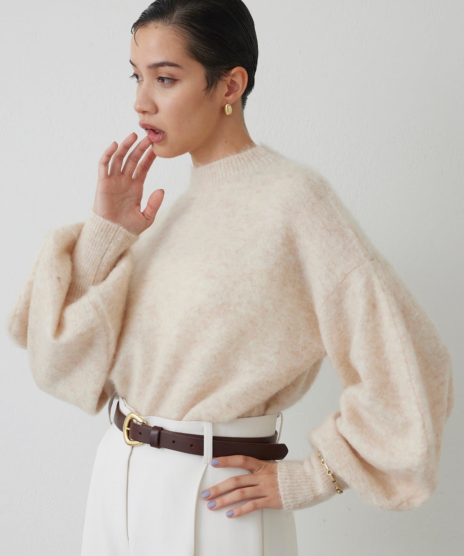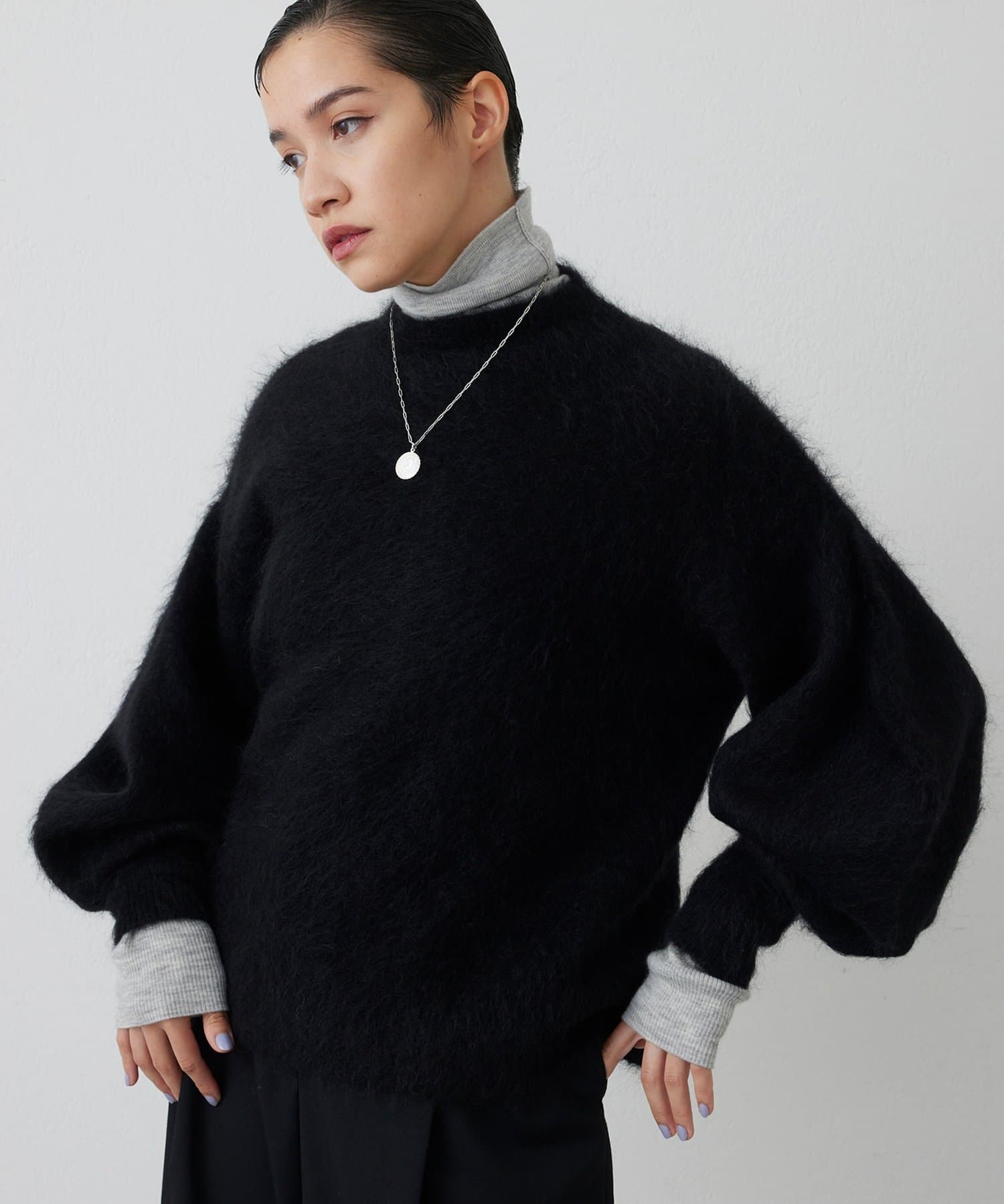 ■ふわっとした表面感のあるモヘヤ混素材が温かみを感じるニットプルオーバー。