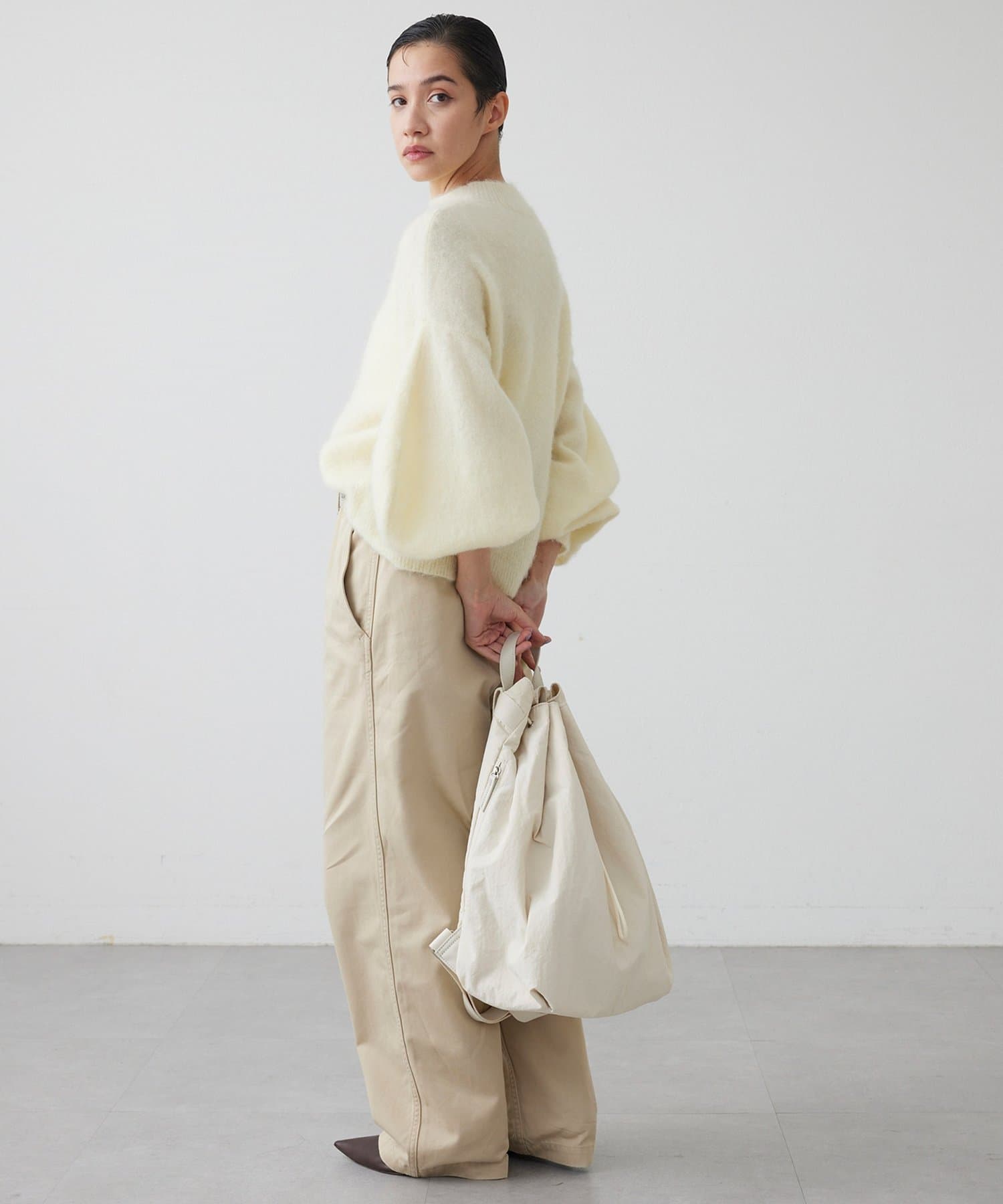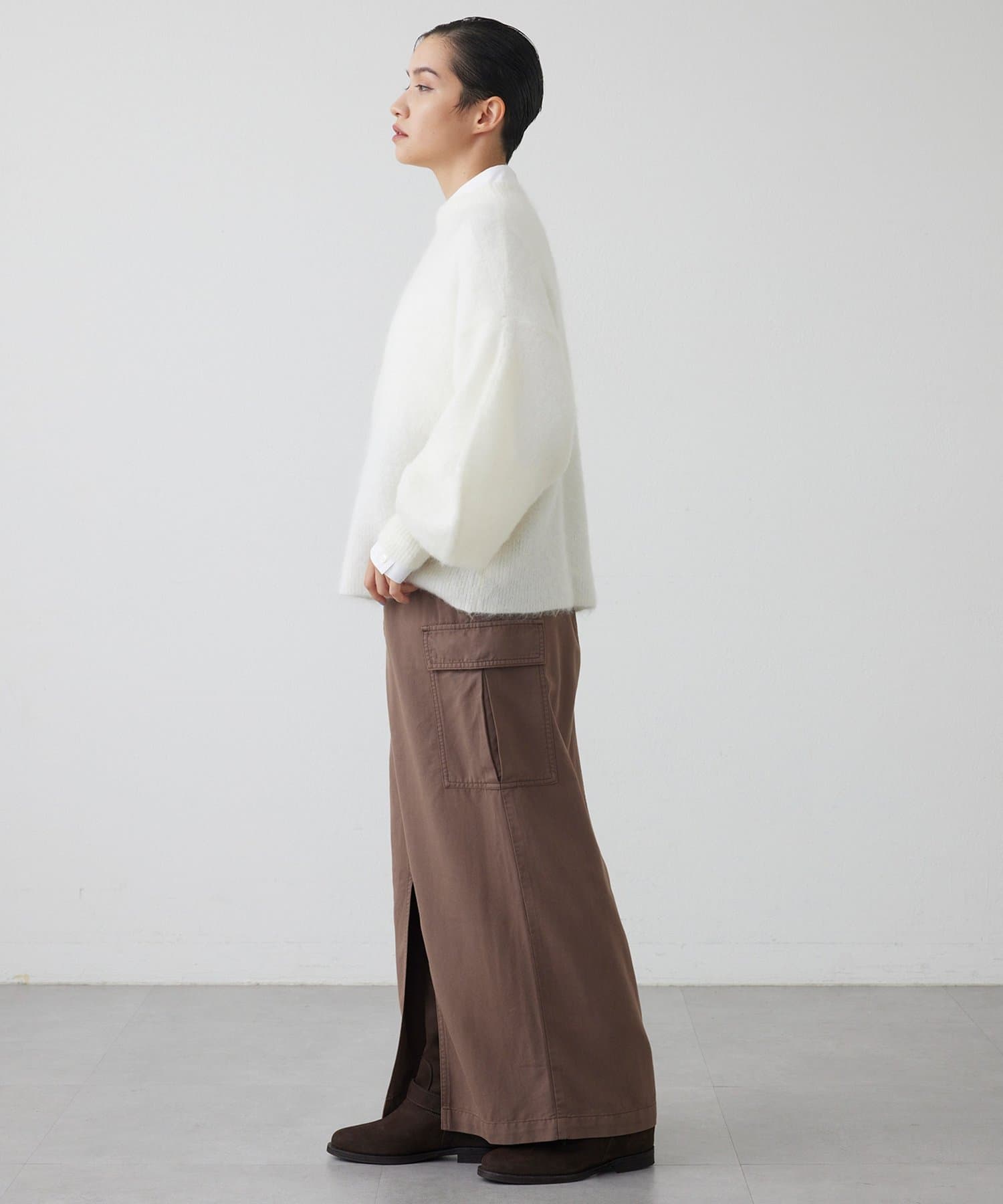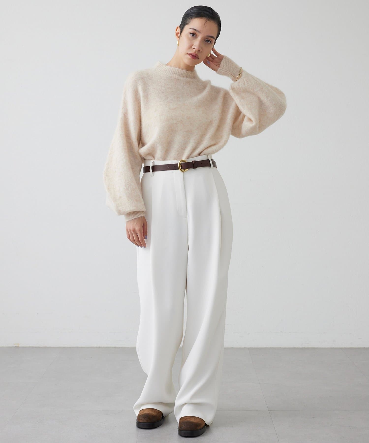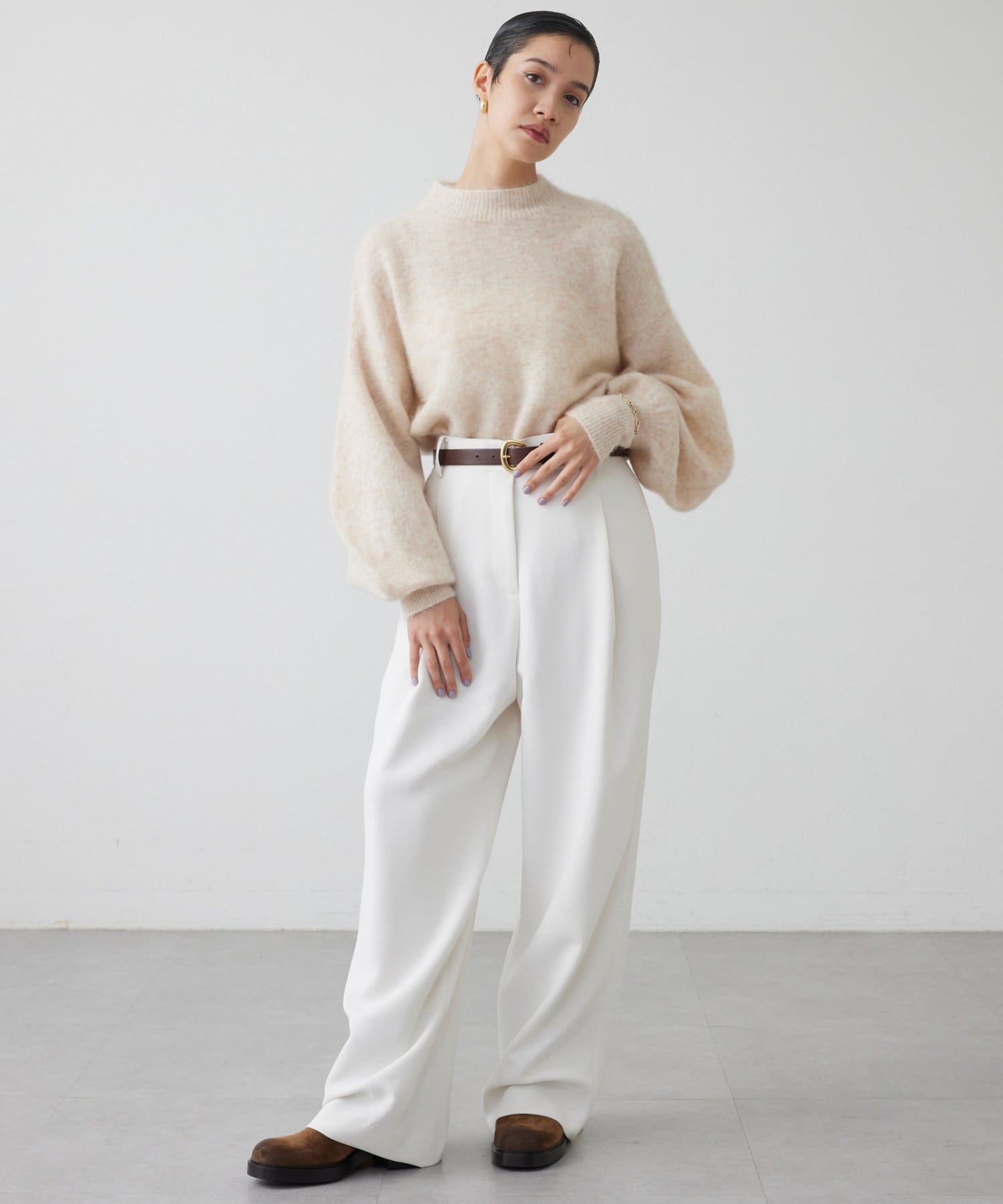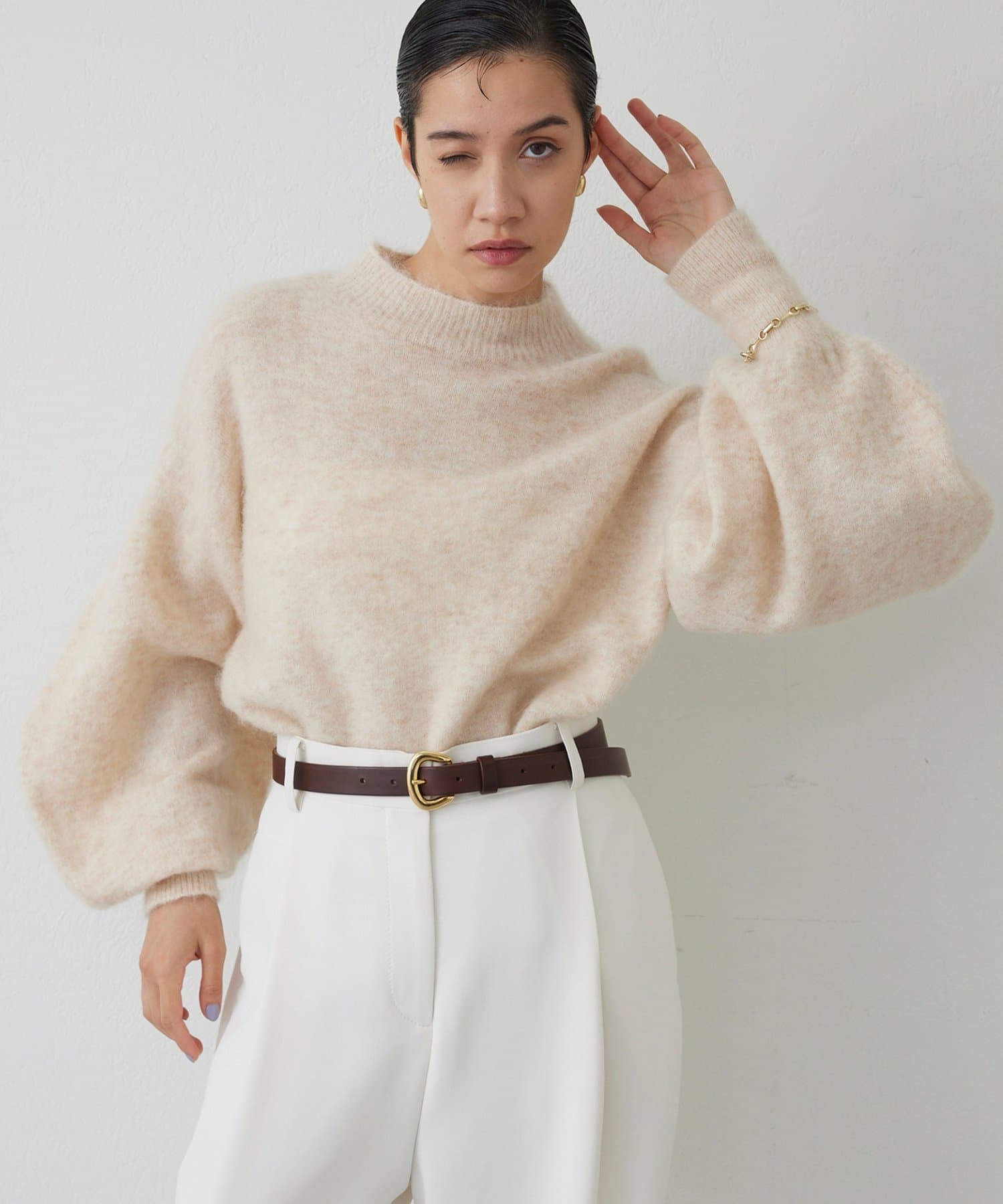■ふわっとした表面感のあるモヘヤ混素材が温かみを感じるニットプルオーバー。