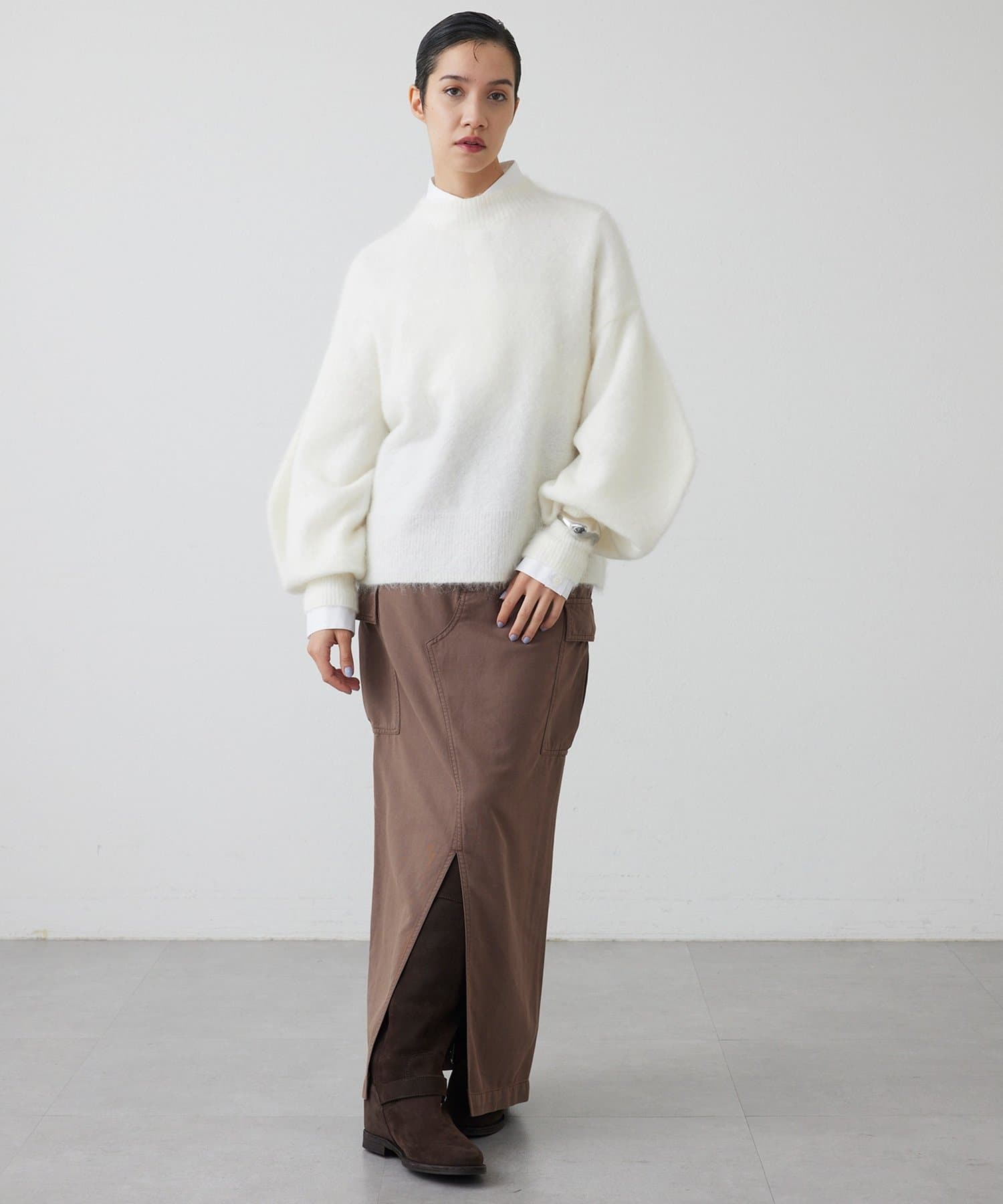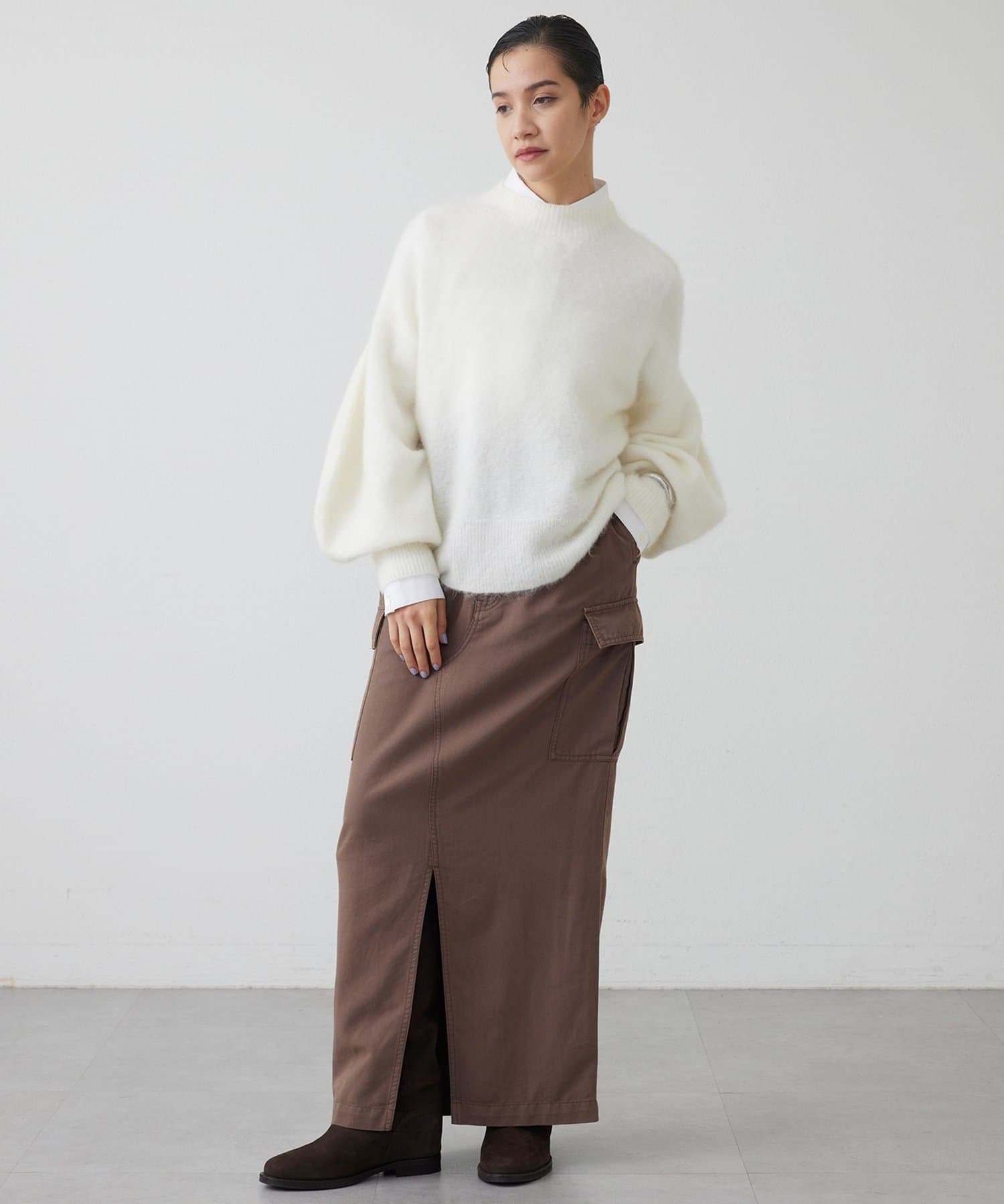 ■襟が長すぎないモックネックなので重ね着しやすく、シャツ合わせもおすすめ