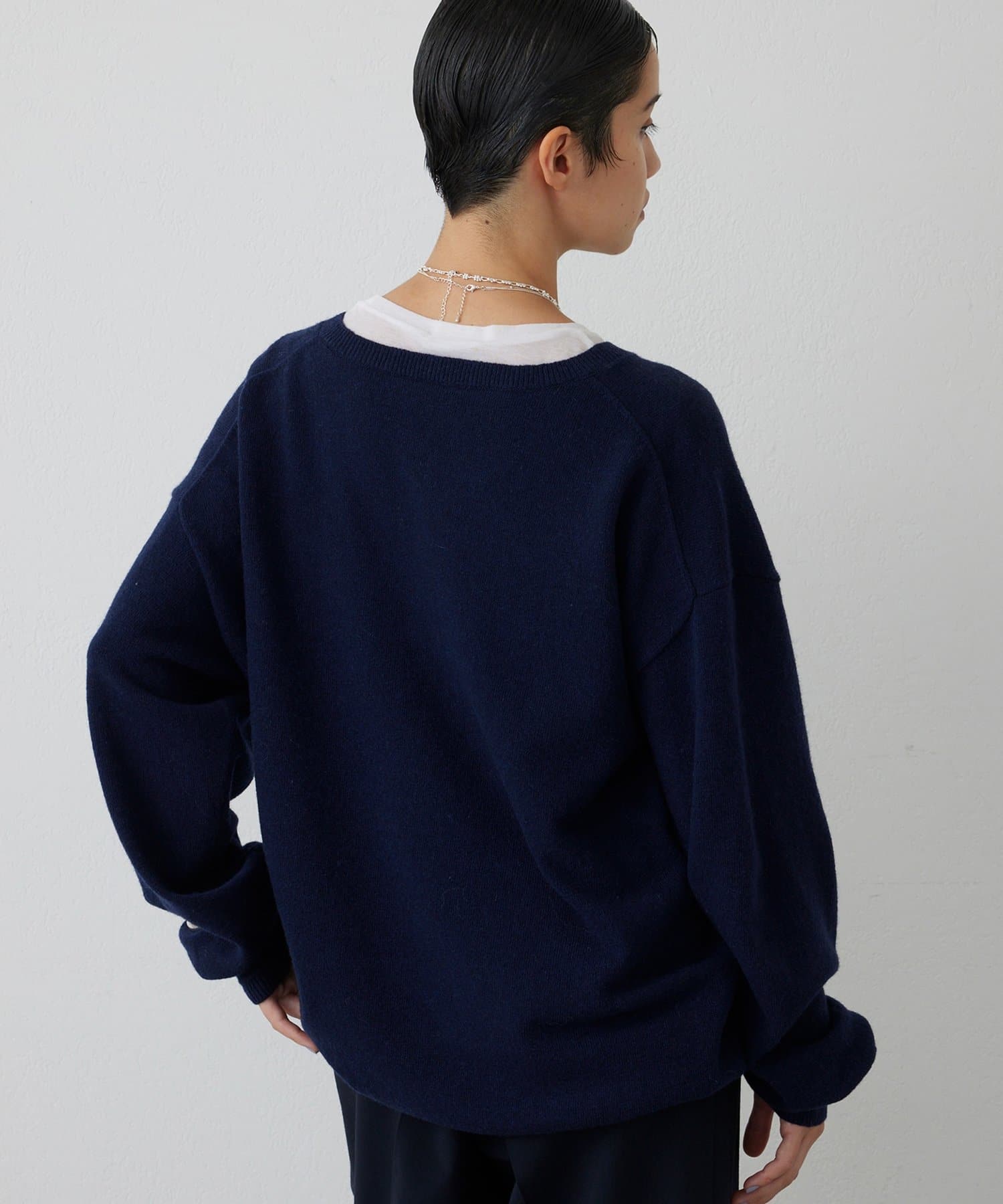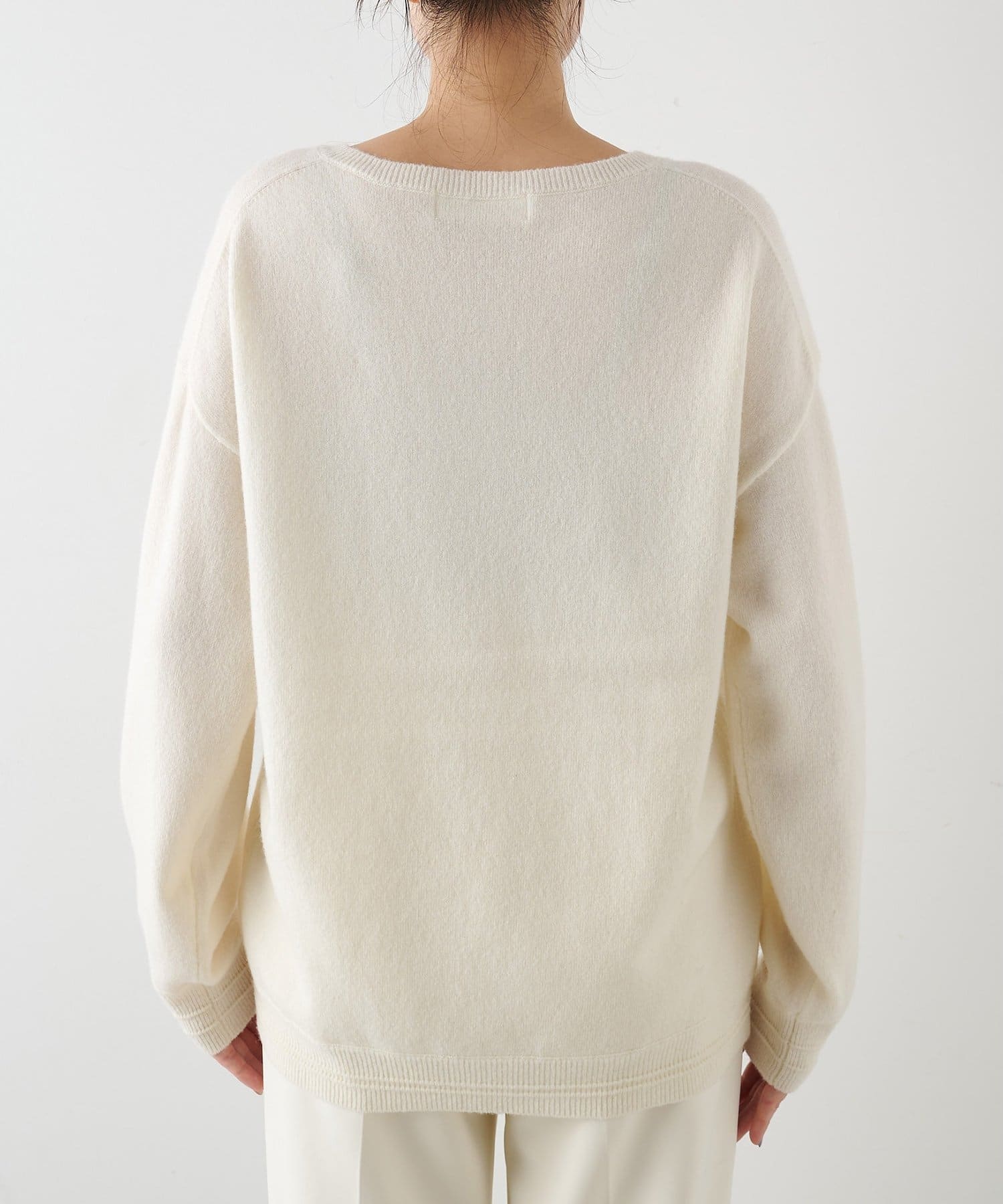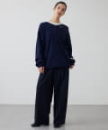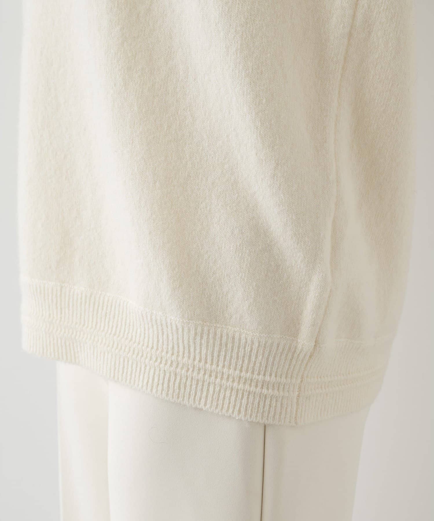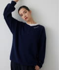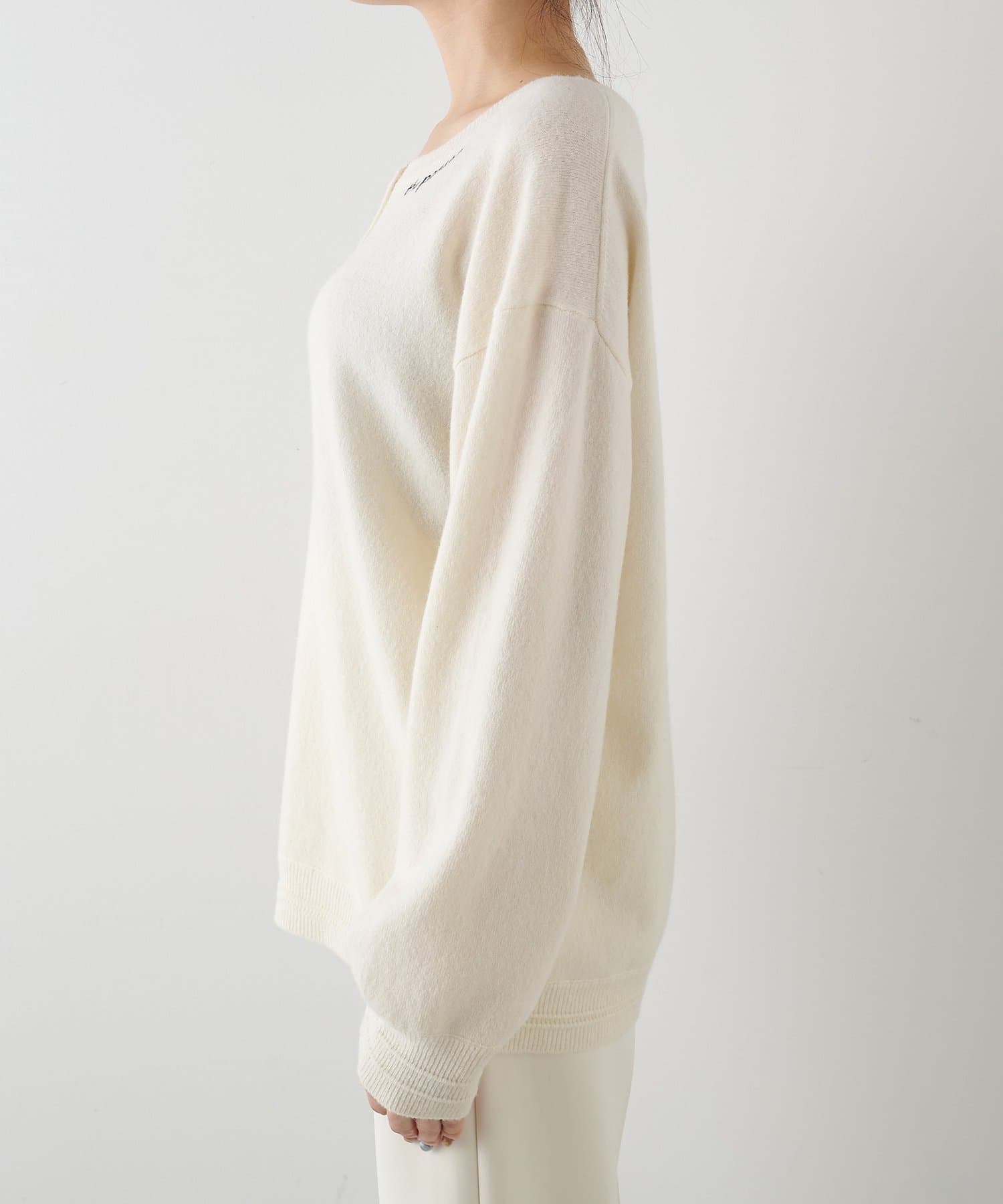 ■ネック部分にブランドロゴ刺繍を入れたニットプルオーバー。
