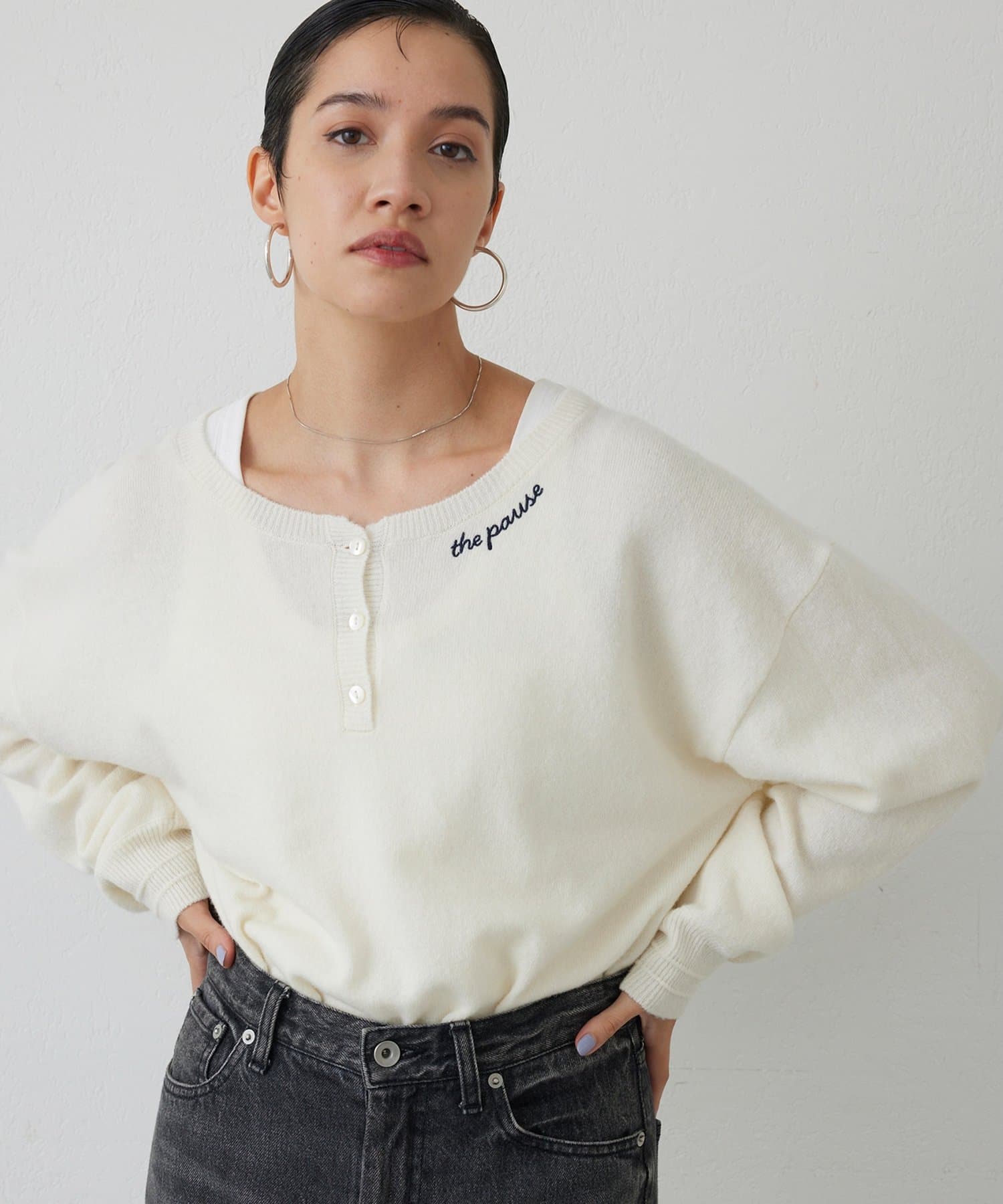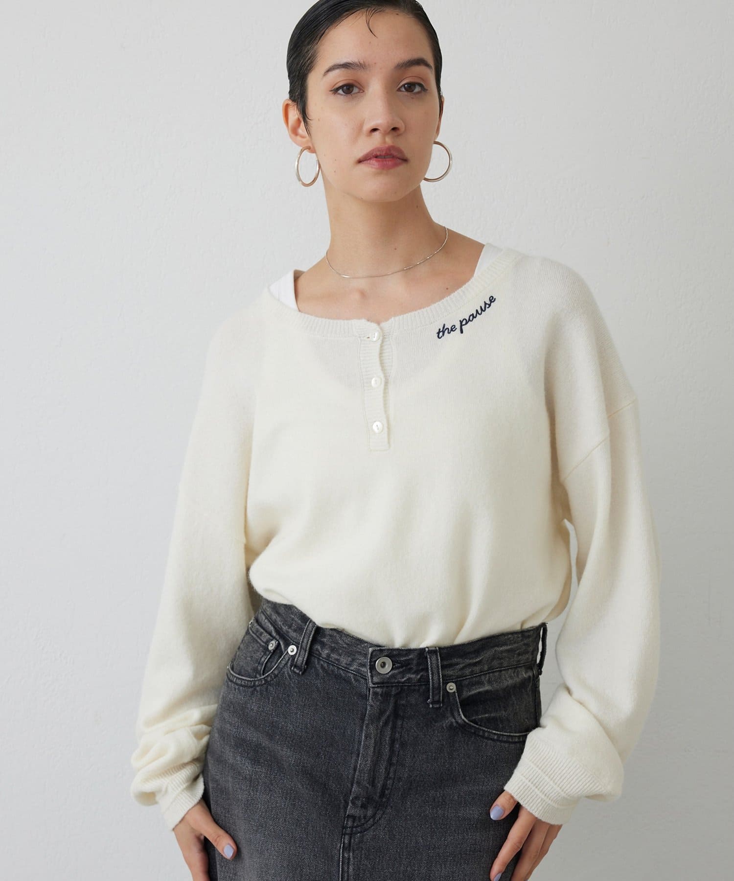 【THE PAUSE】ヘンリーネック刺繍プルオーバー