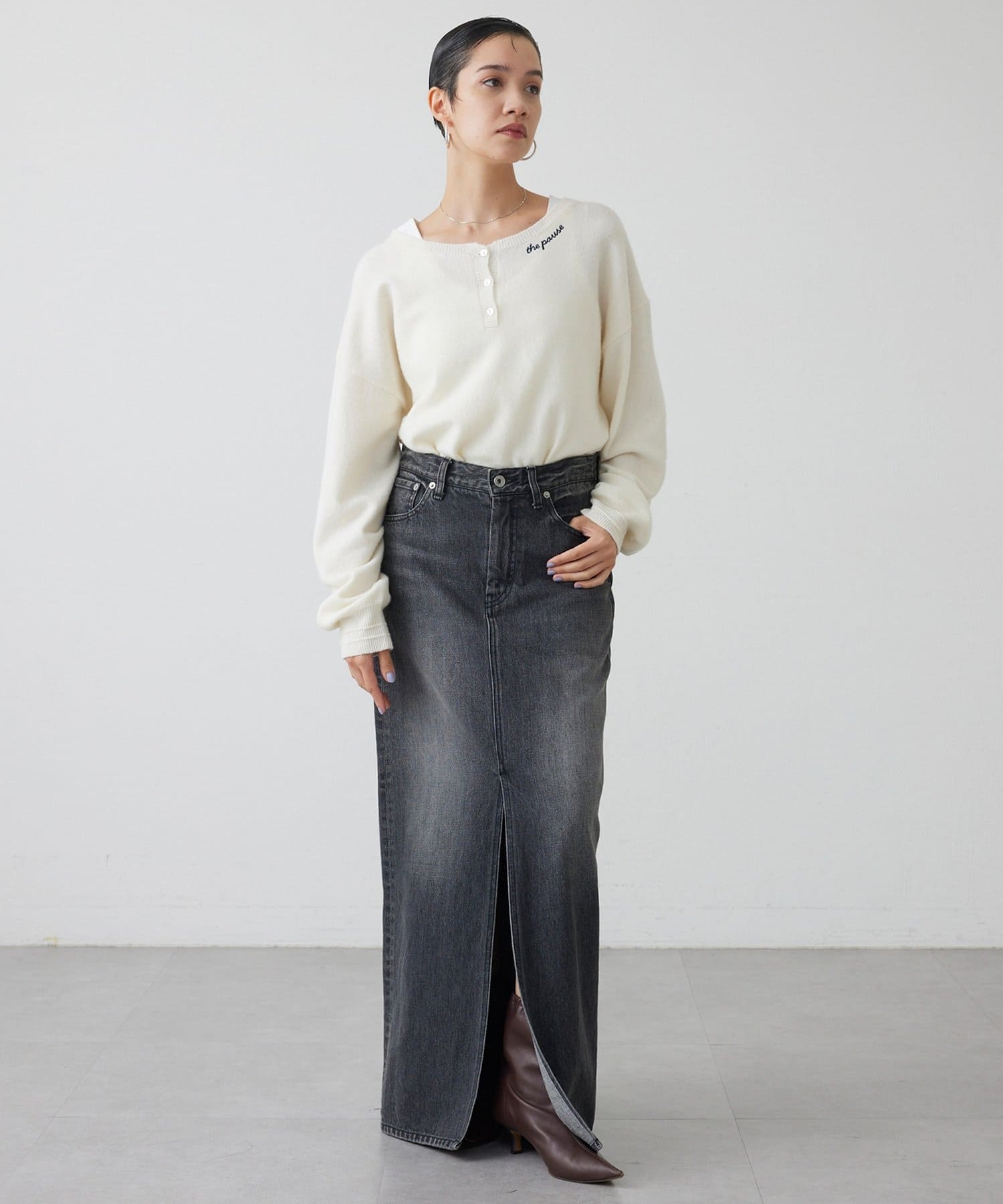 ■大人のニットスタイルを新鮮な印象に導いてくれるヘンリーネックデザイン。