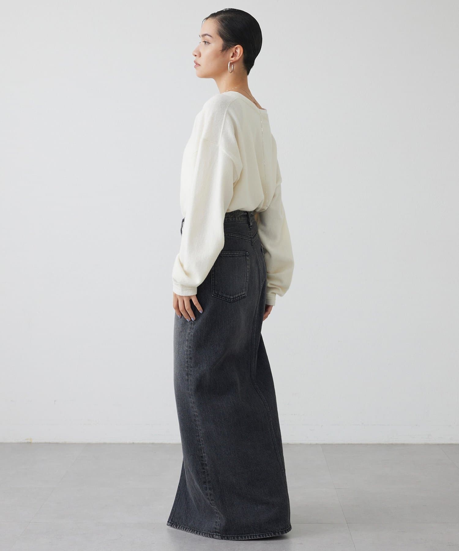 ■首元はインナーが程よく見える広めの開きで、カットソーやニットなどの重ね着を楽しめるのが◎。