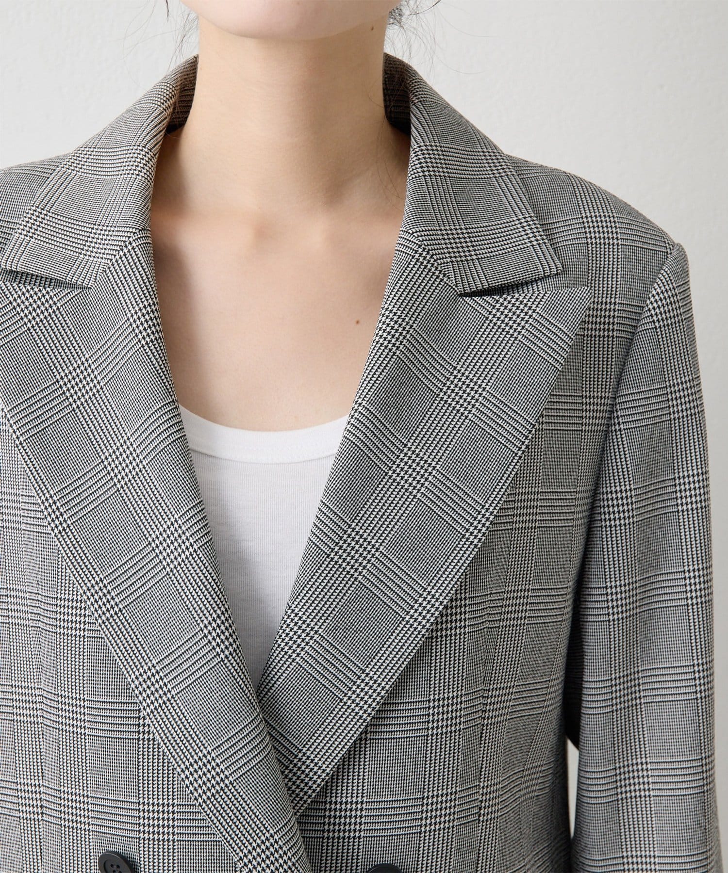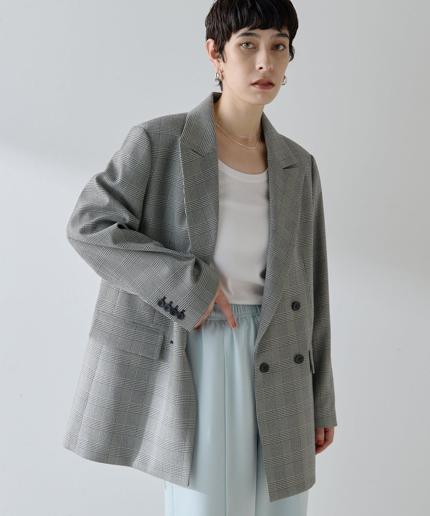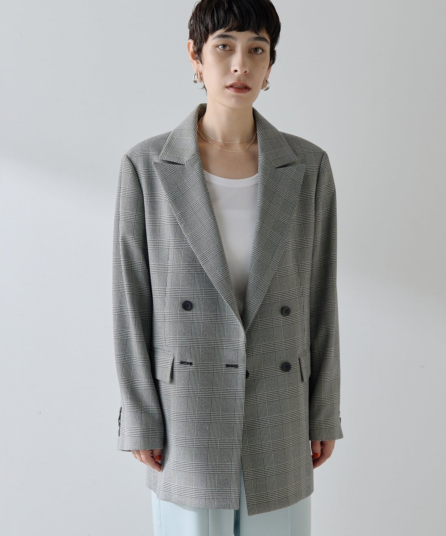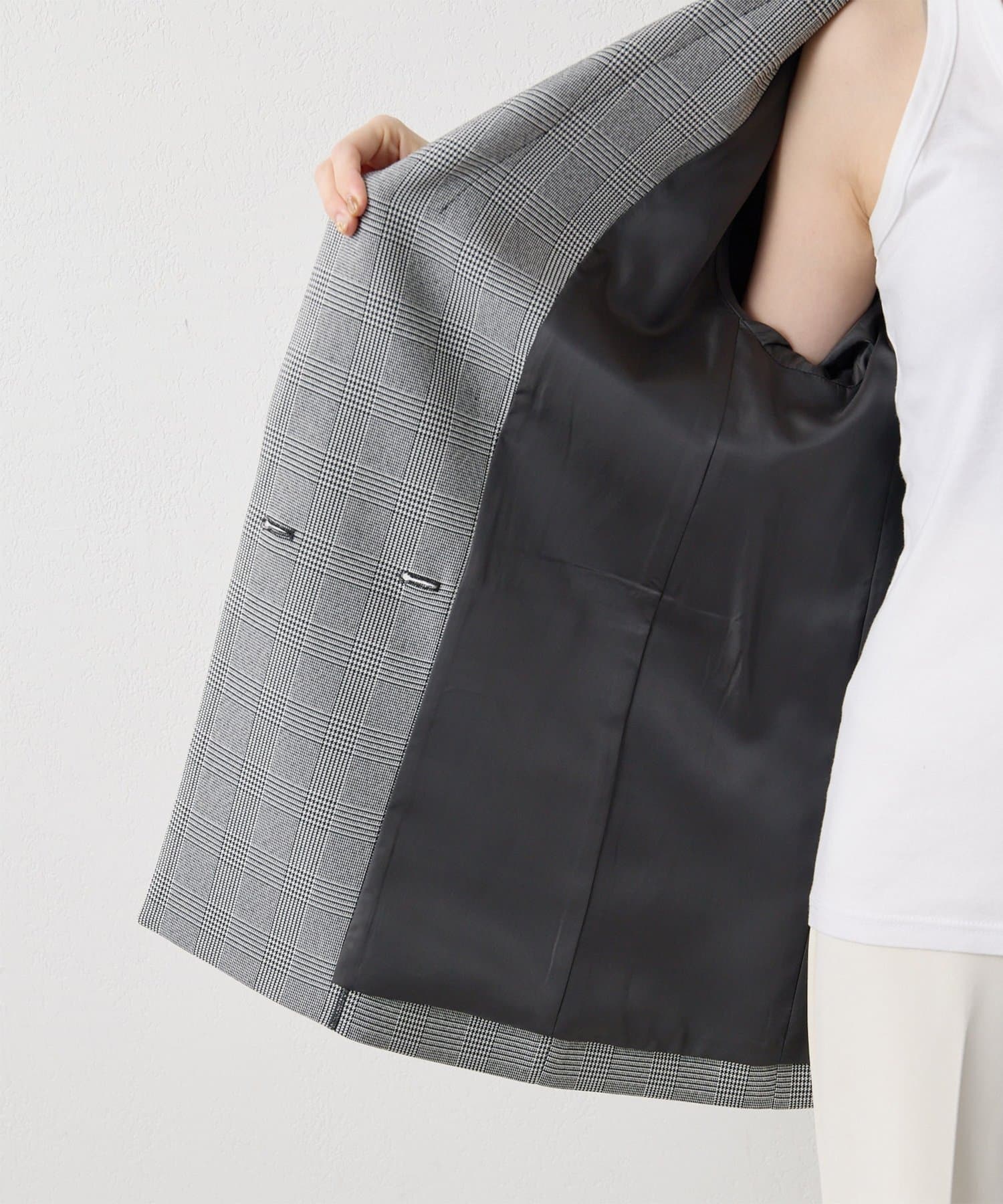 ■チェック柄がクラシカルな印象のダブルジャケット。