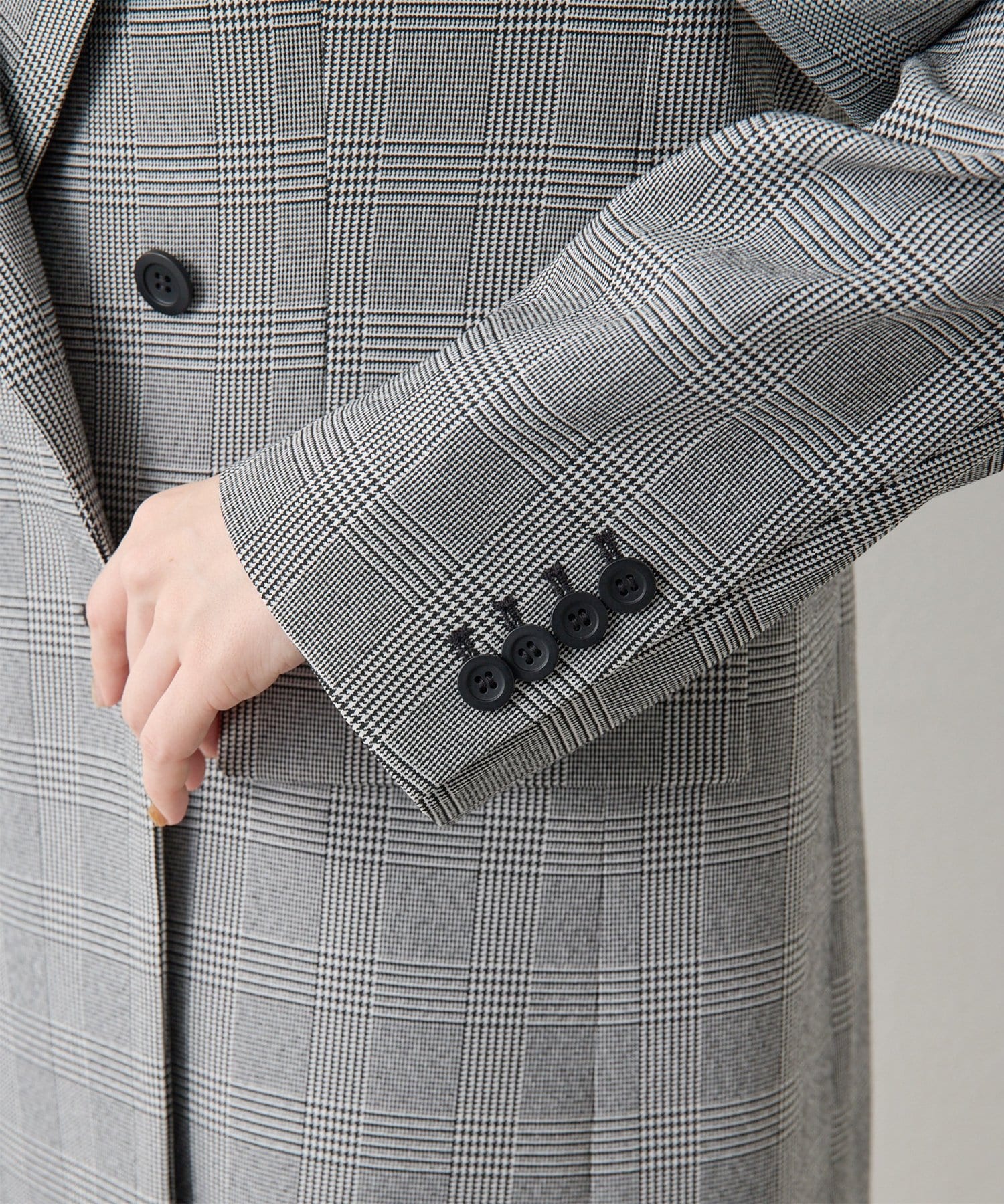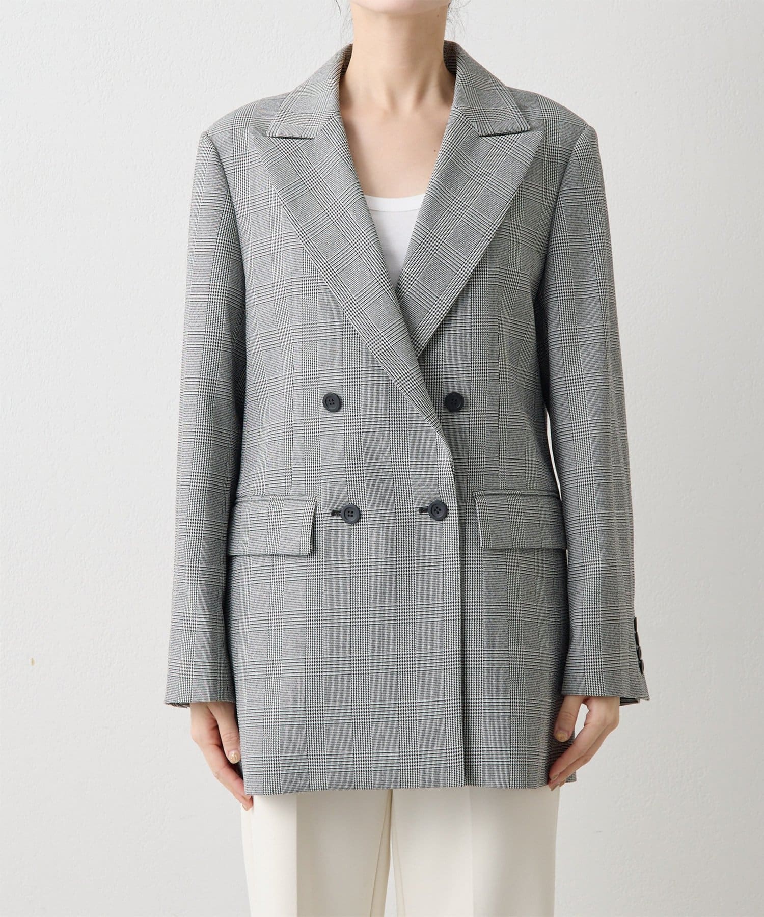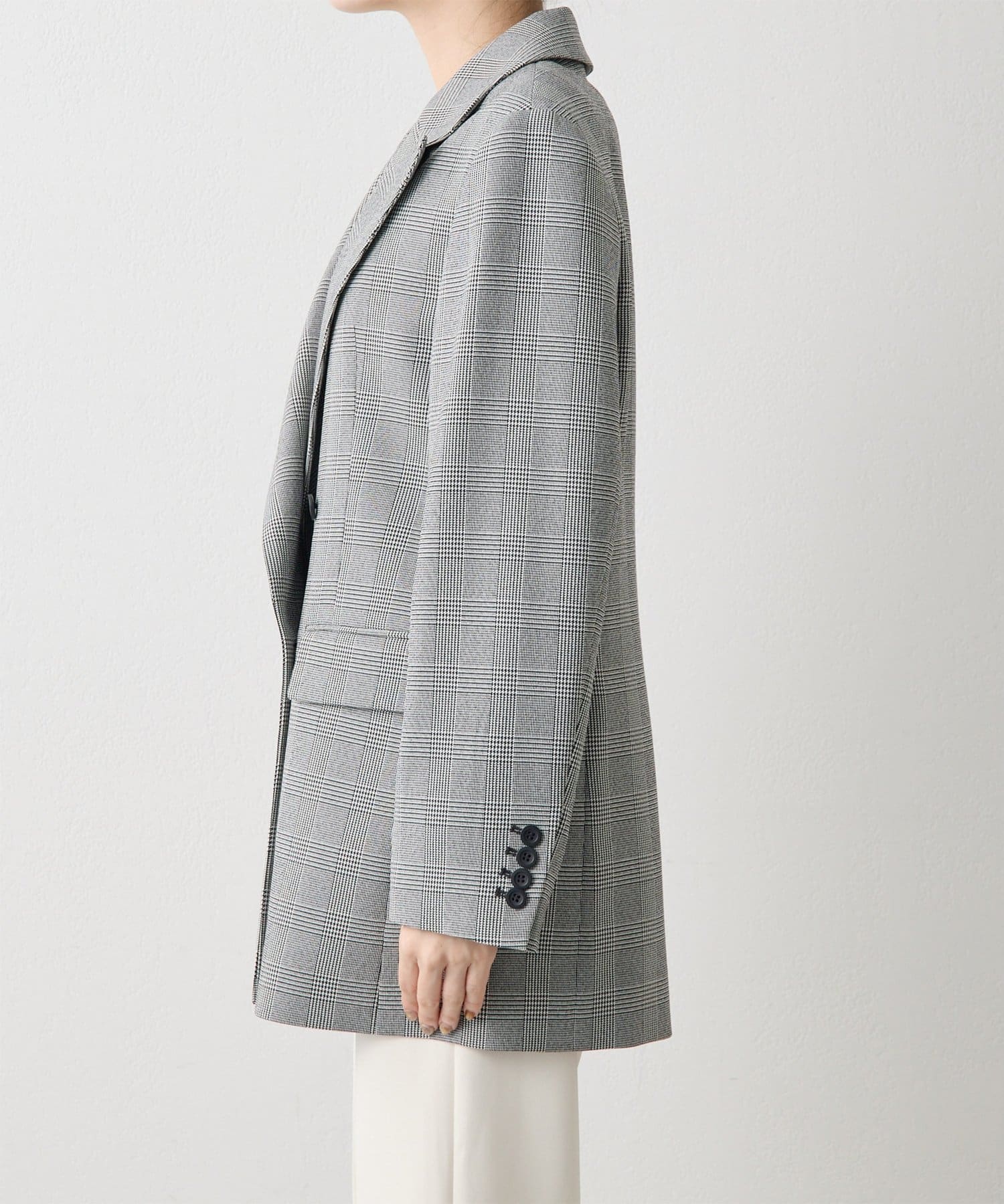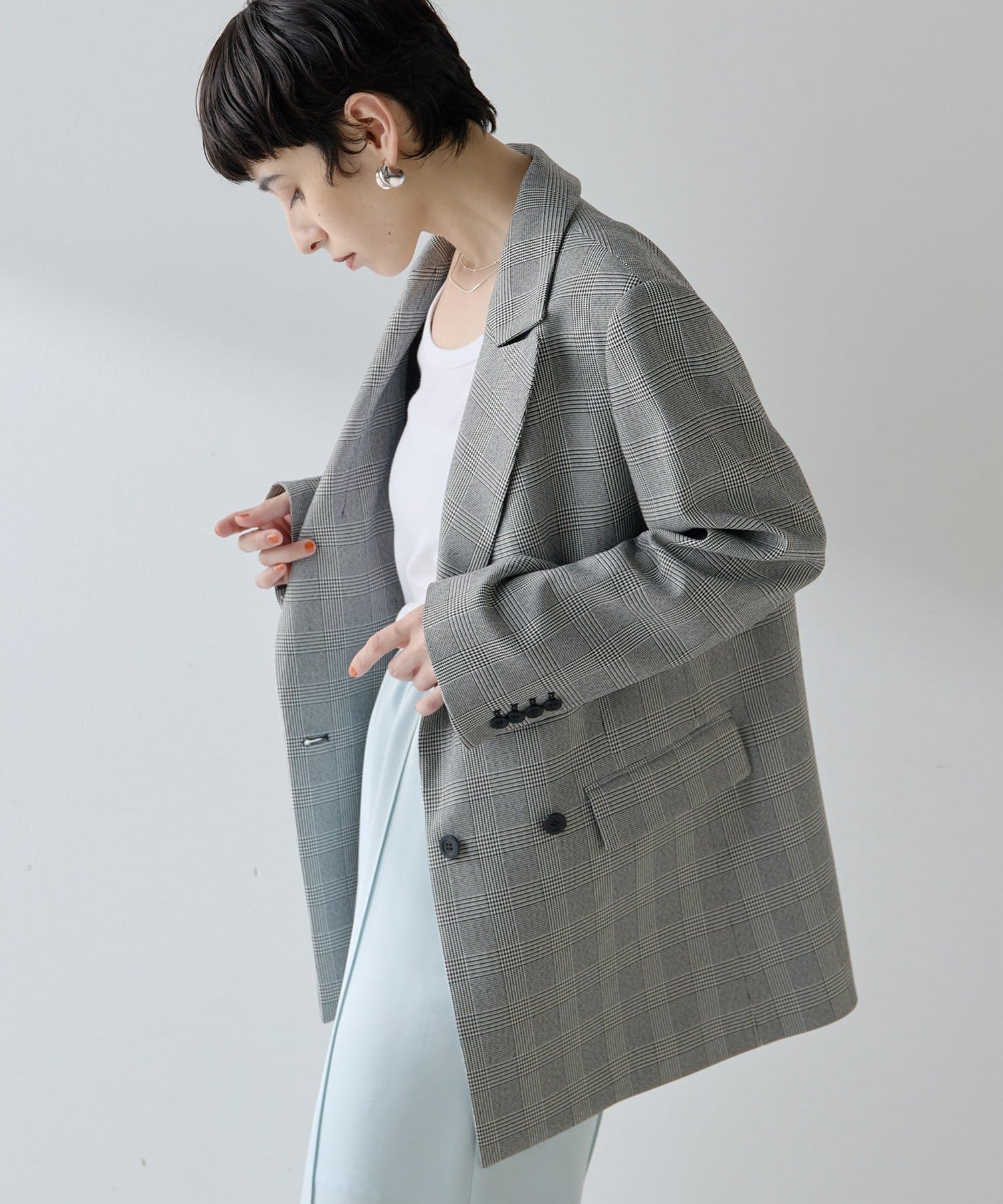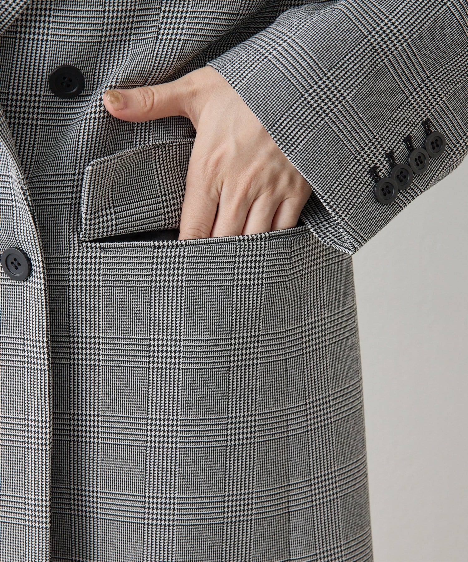 ■チェック柄がクラシカルな印象のダブルジャケット。
