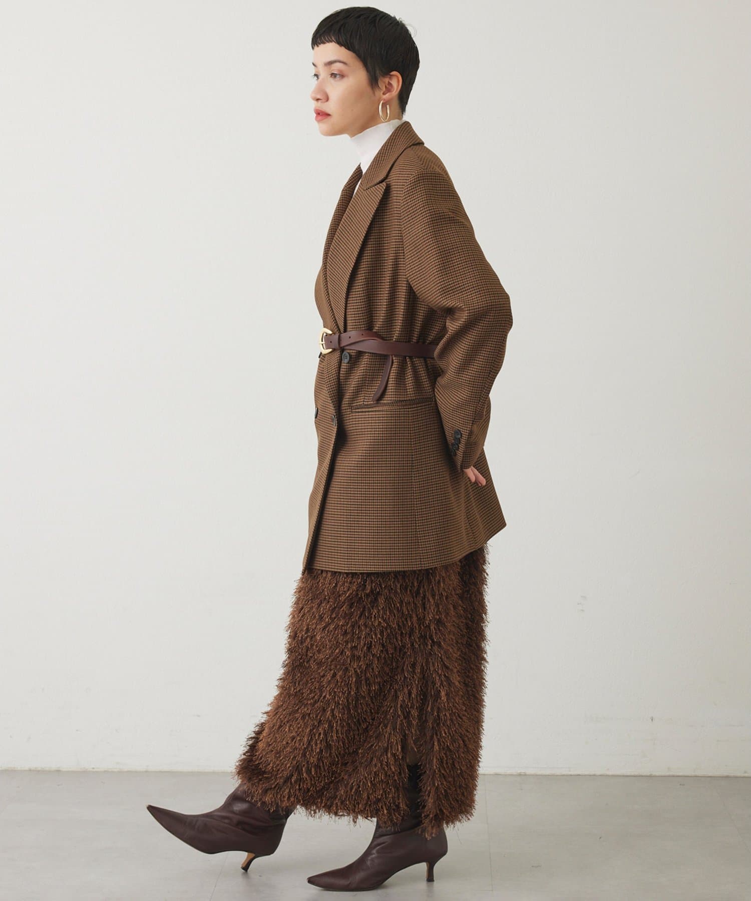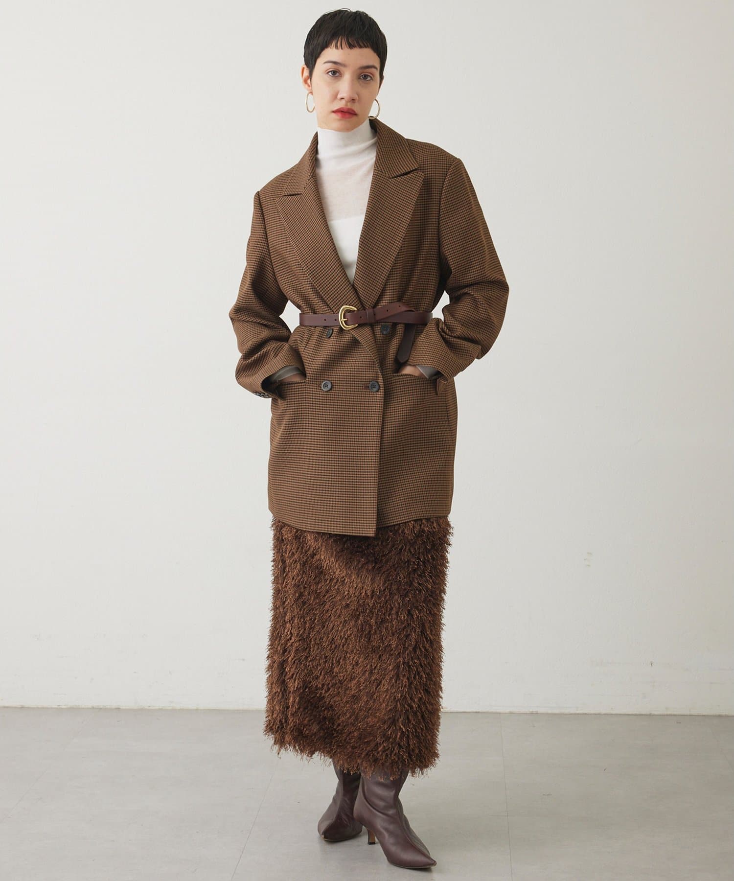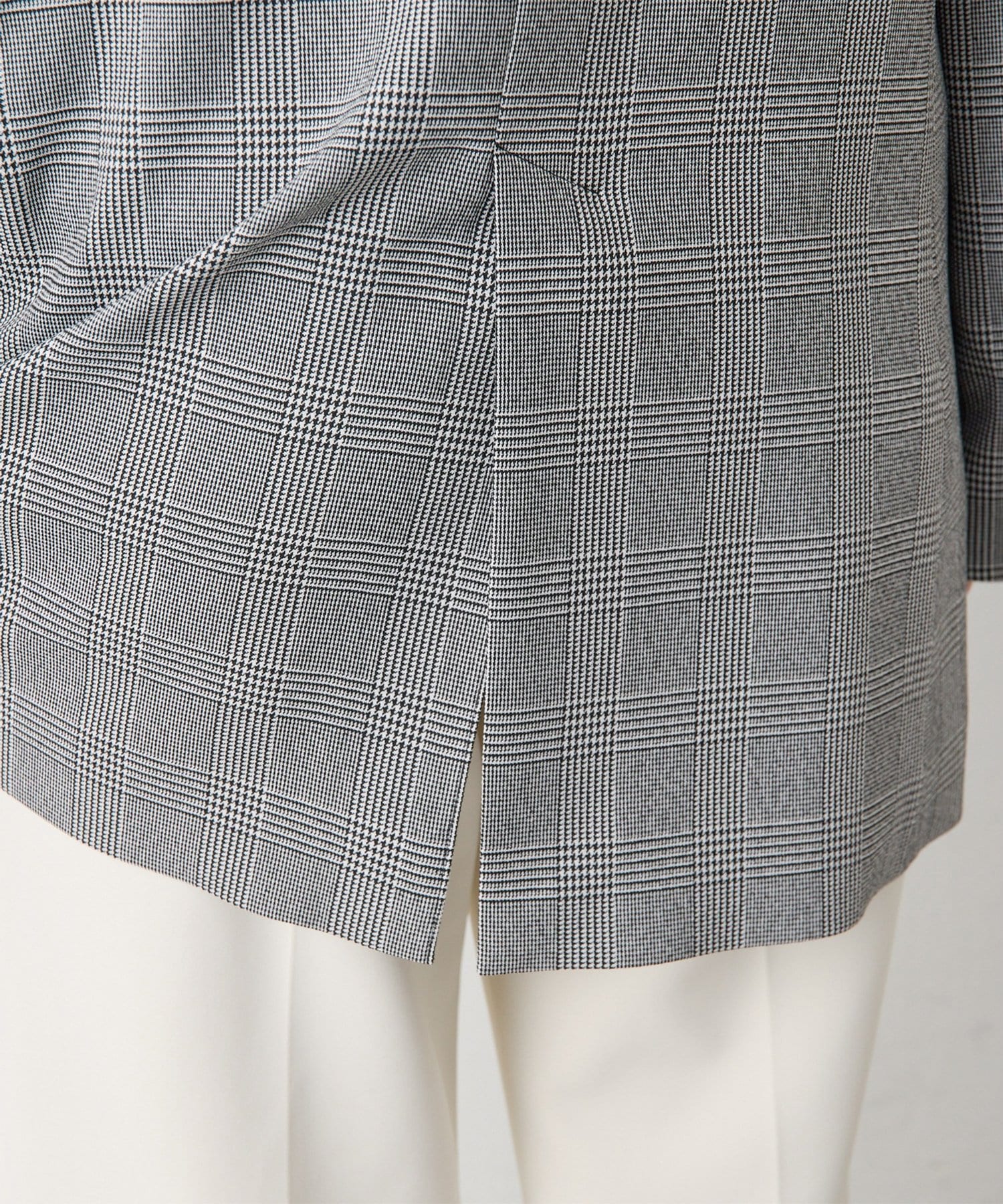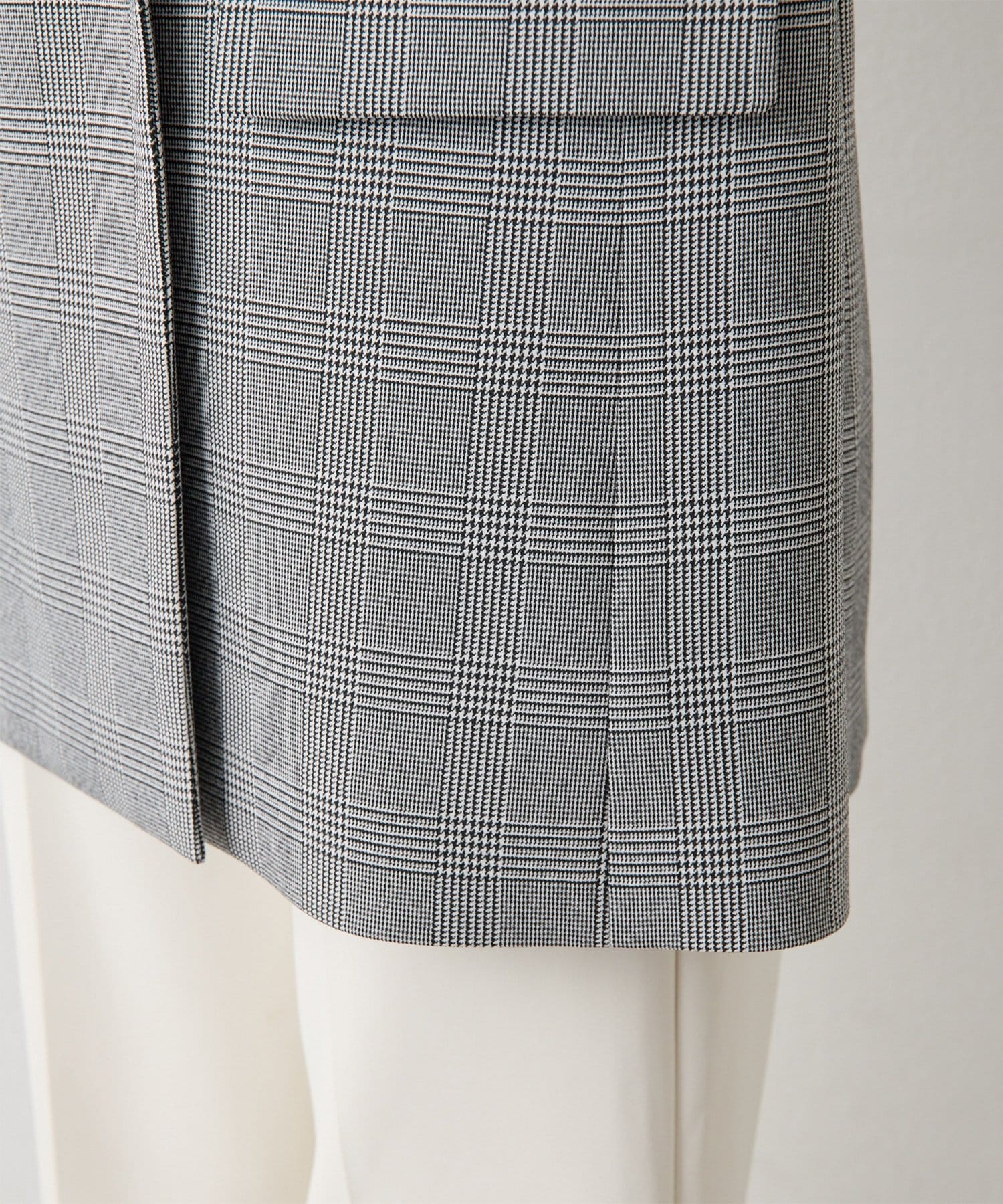 ■チェック柄がクラシカルな印象のダブルジャケット。