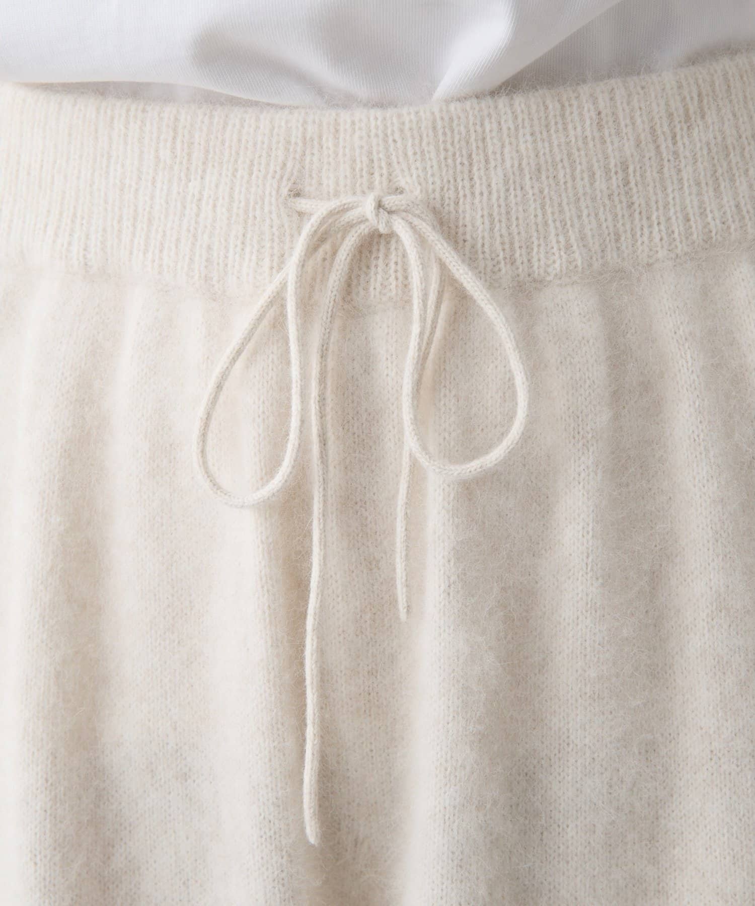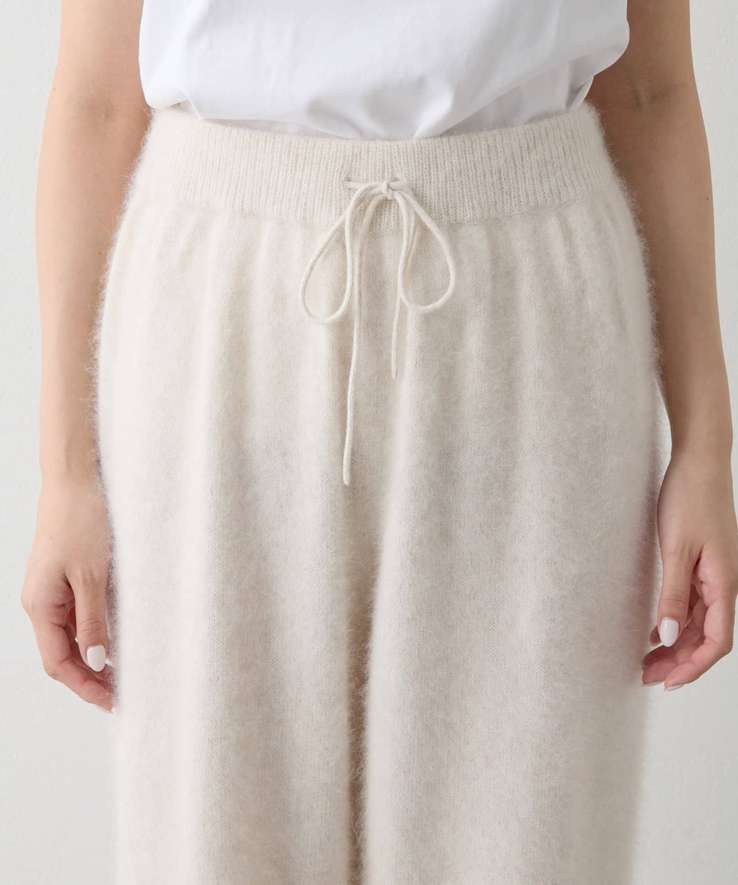 ■毛足感のあるふんわりとしたニット素材を使用したドロストパンツ。