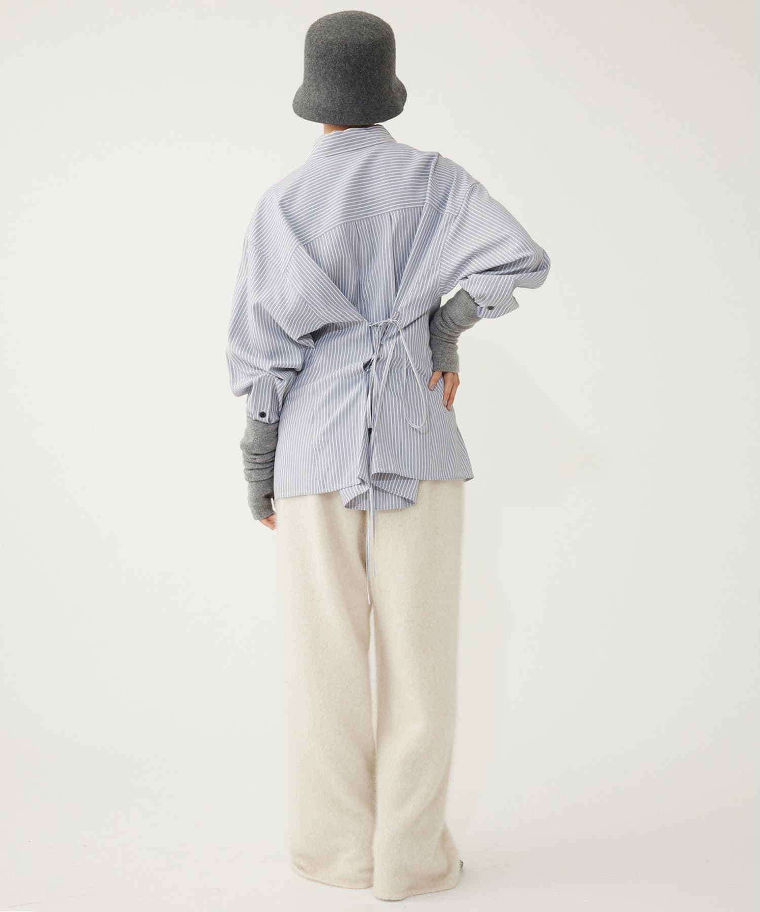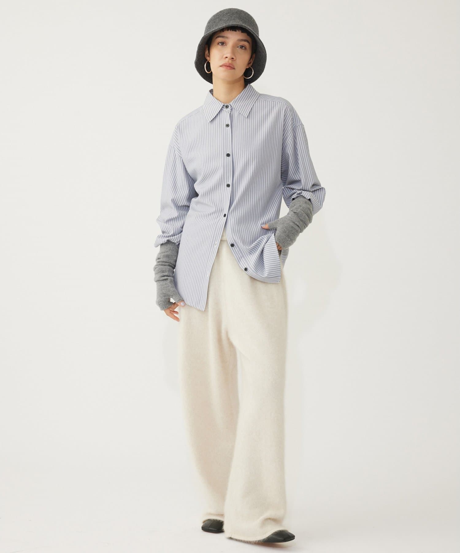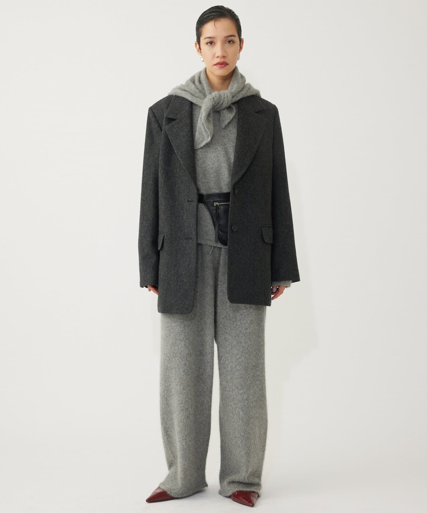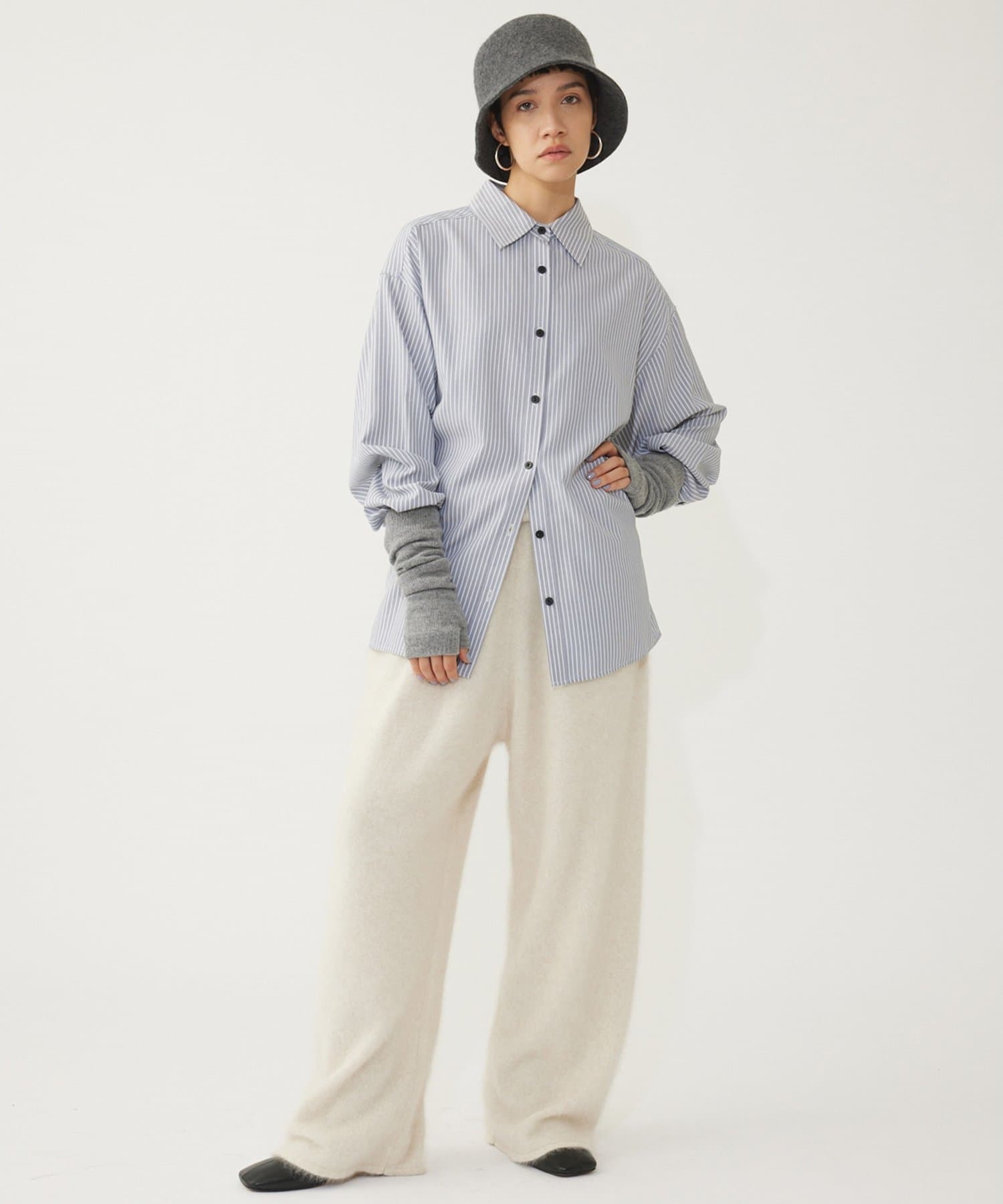 ■フォックス混の柔らかい肌触りや適度な落ち感に加え、ゆったりとしたワイドシルエットがリラクシーな一着。