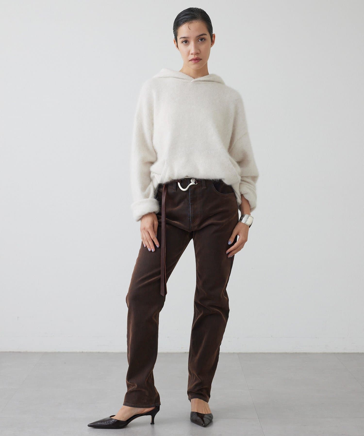 ■ファーニットの上質さもありながら、フードが程よくカジュアルダウンしてくれるデザイン。