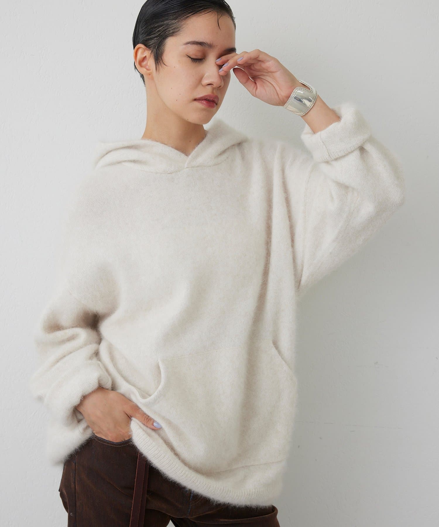上質なファーニットが心地よい、ふんわりニットフーディー