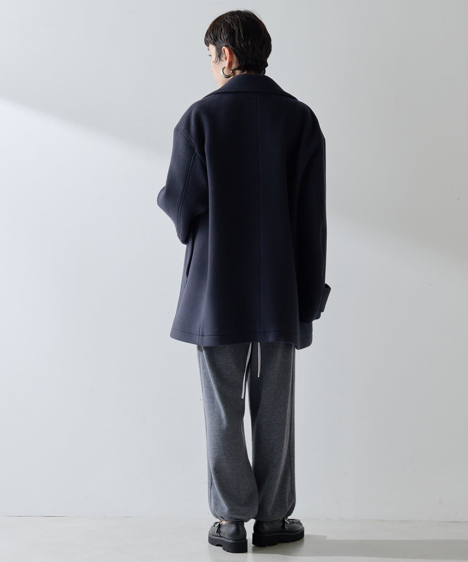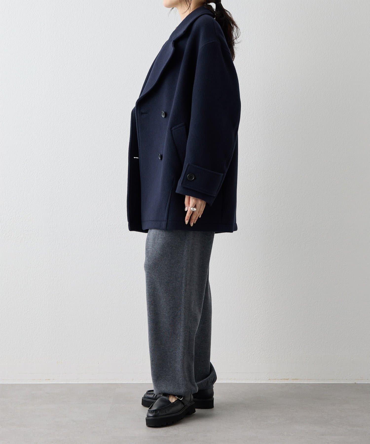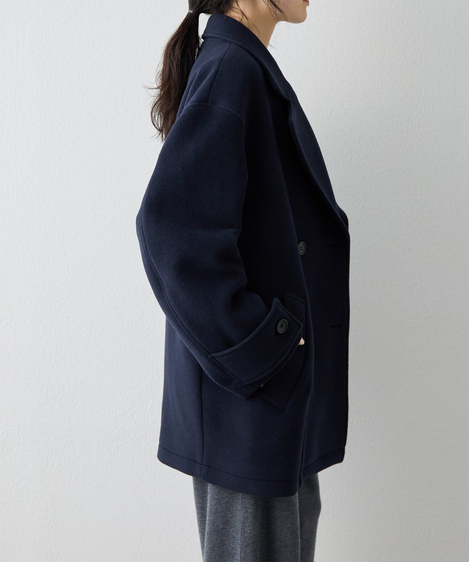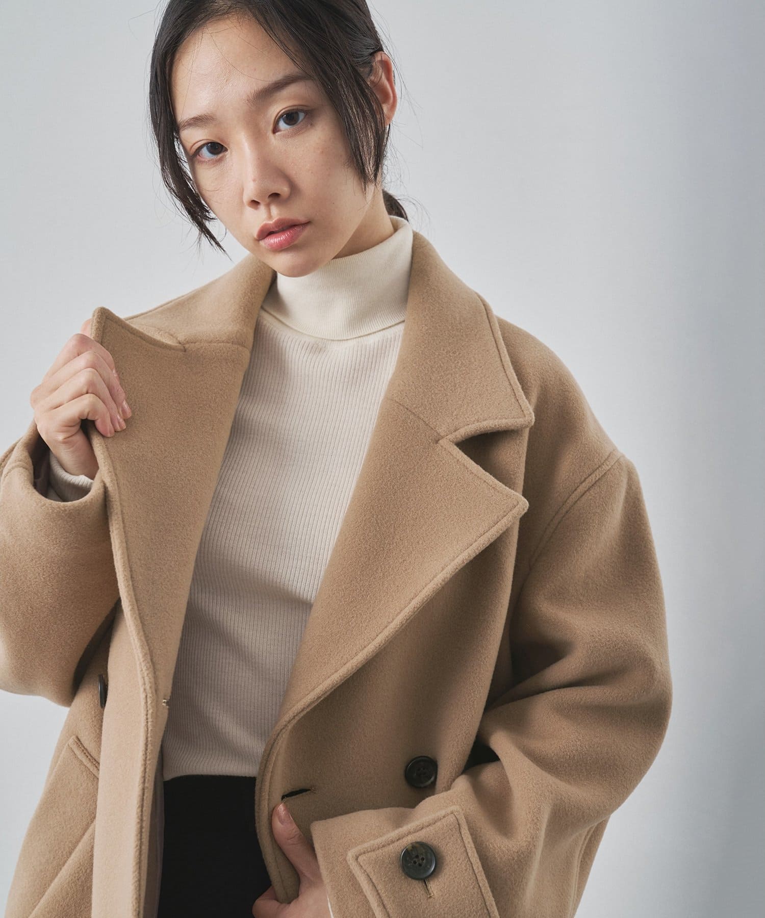 ■ミドル丈で仕上げたオーバーサイズのPコート。