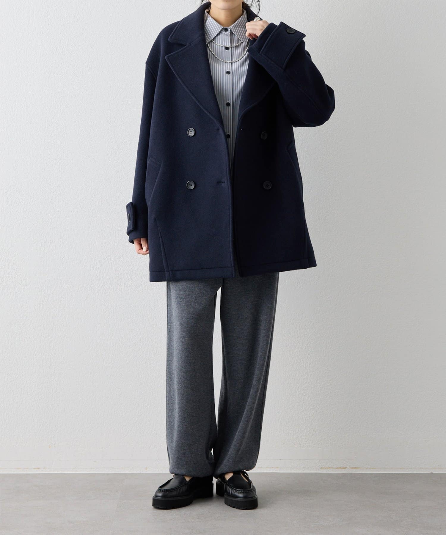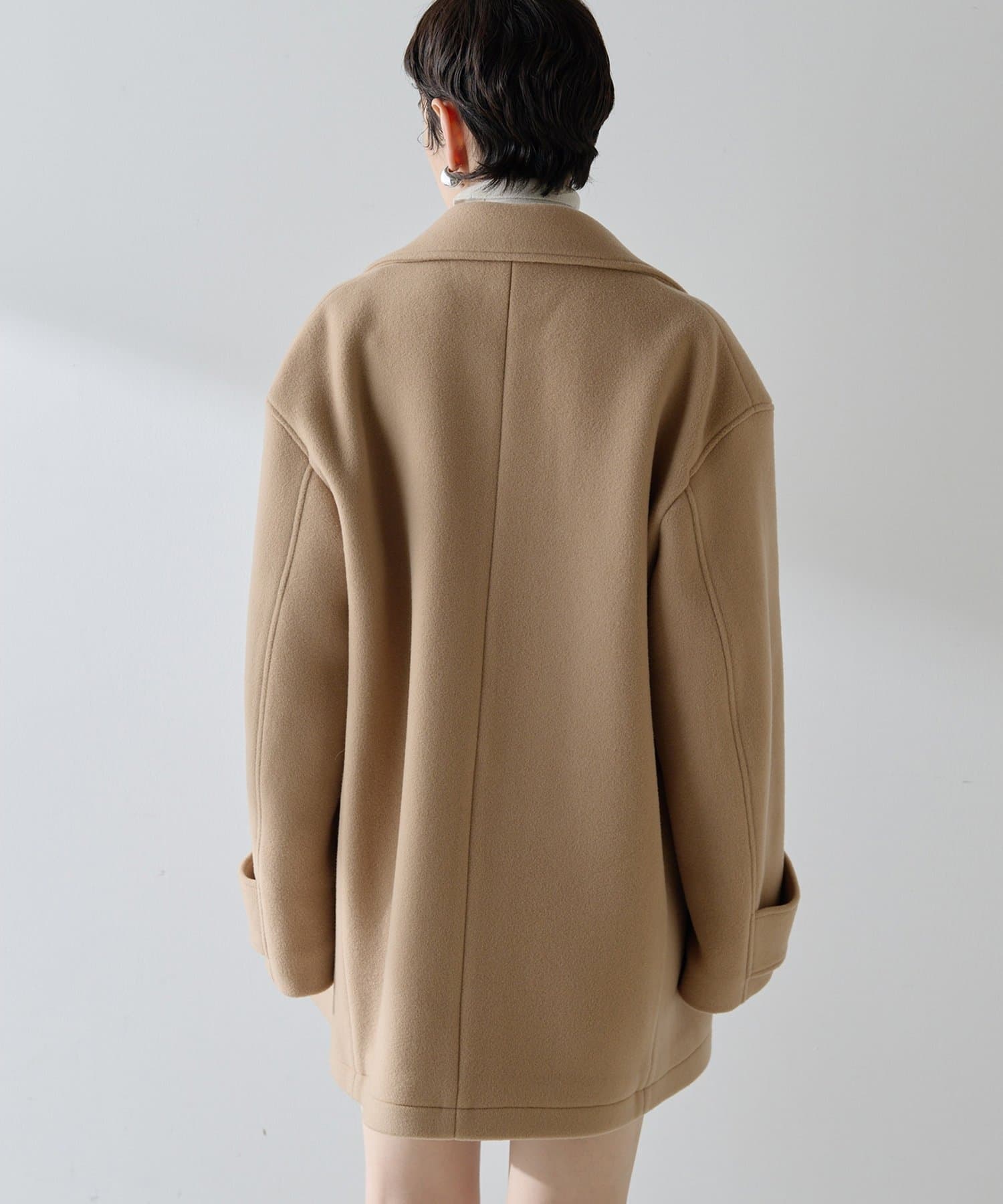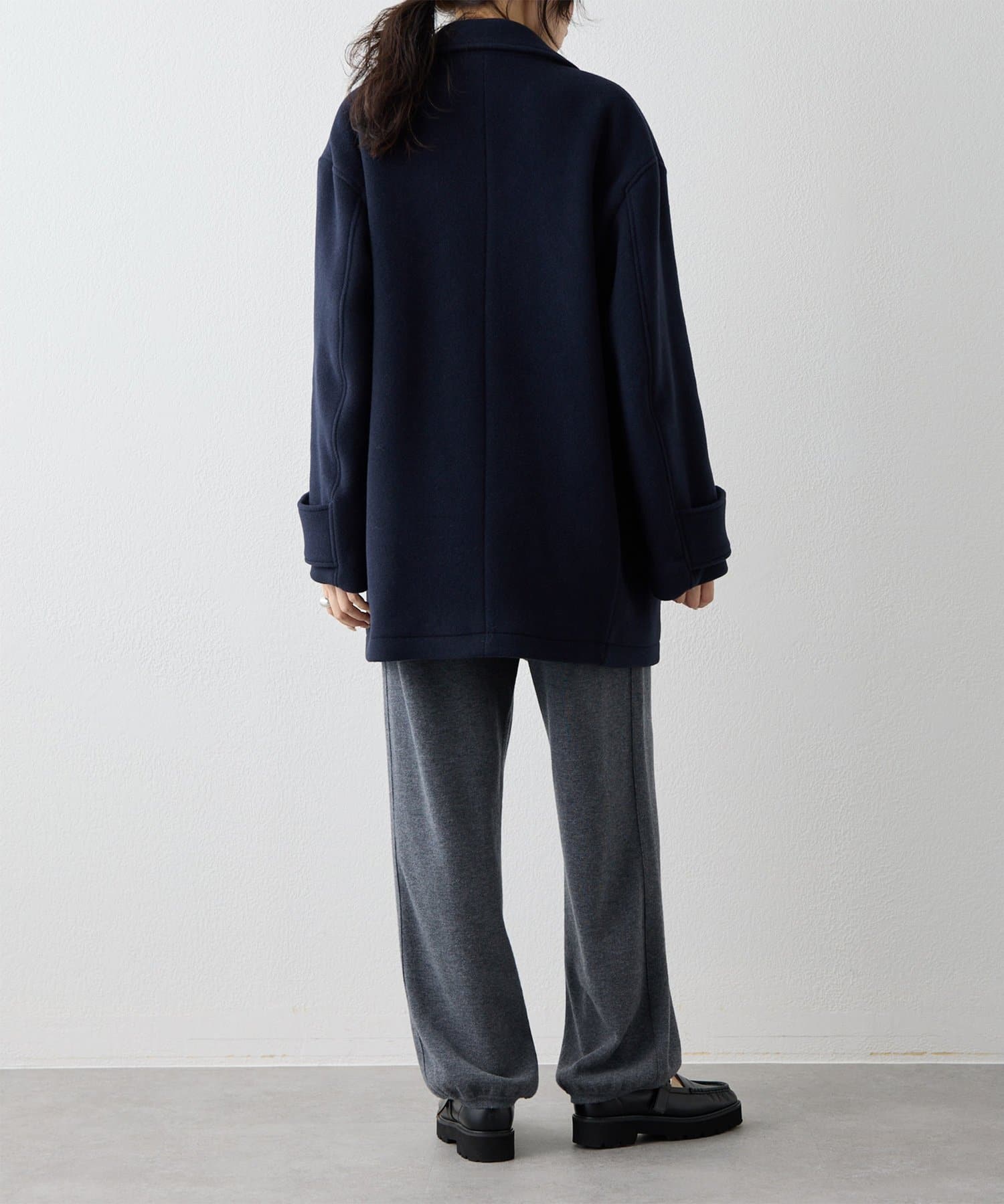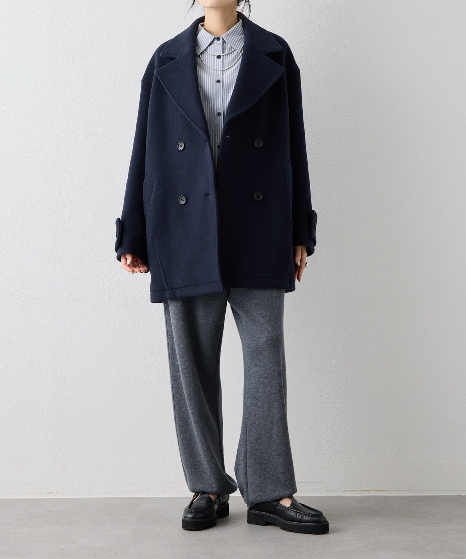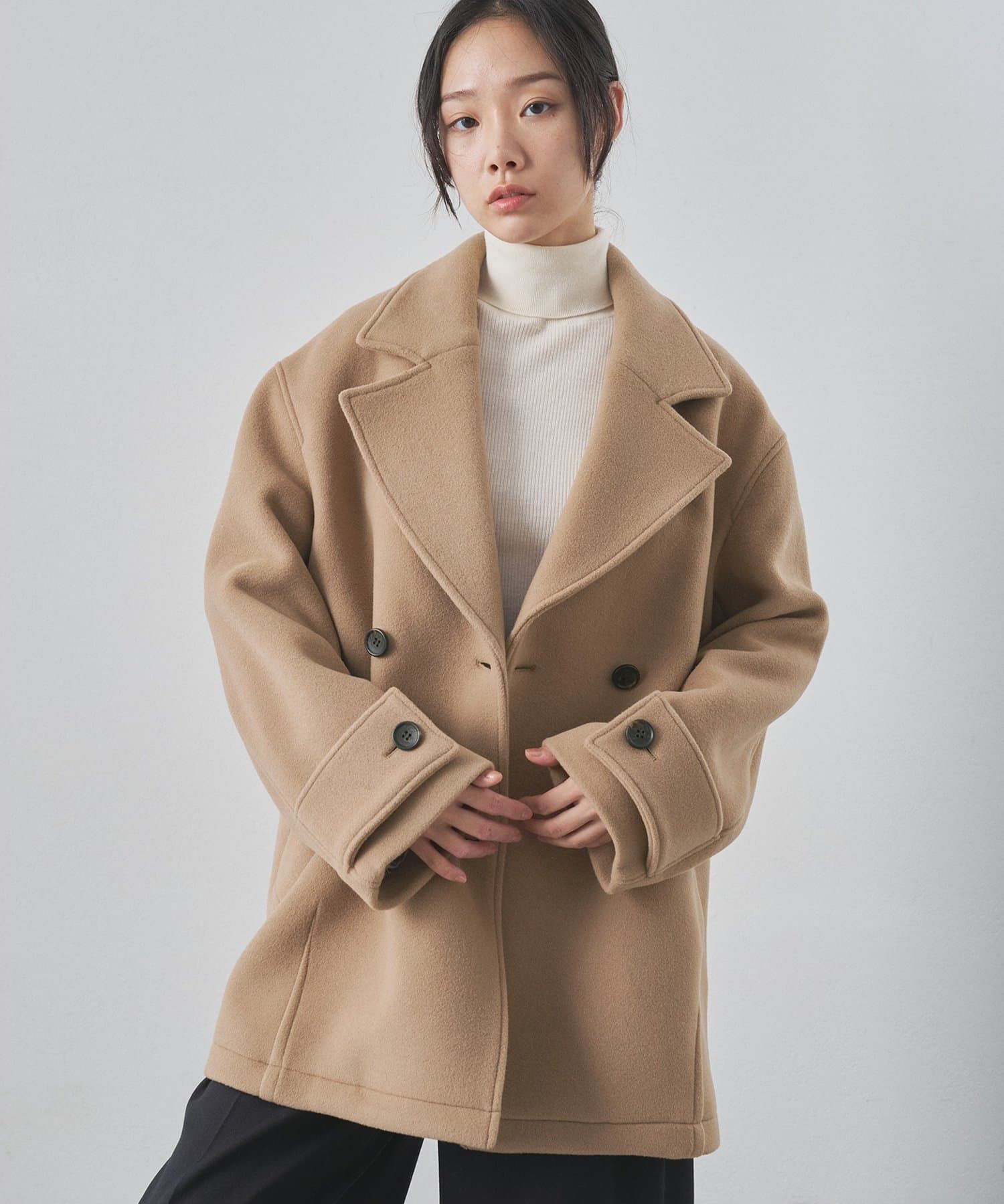 ■ミドル丈で仕上げたオーバーサイズのPコート。