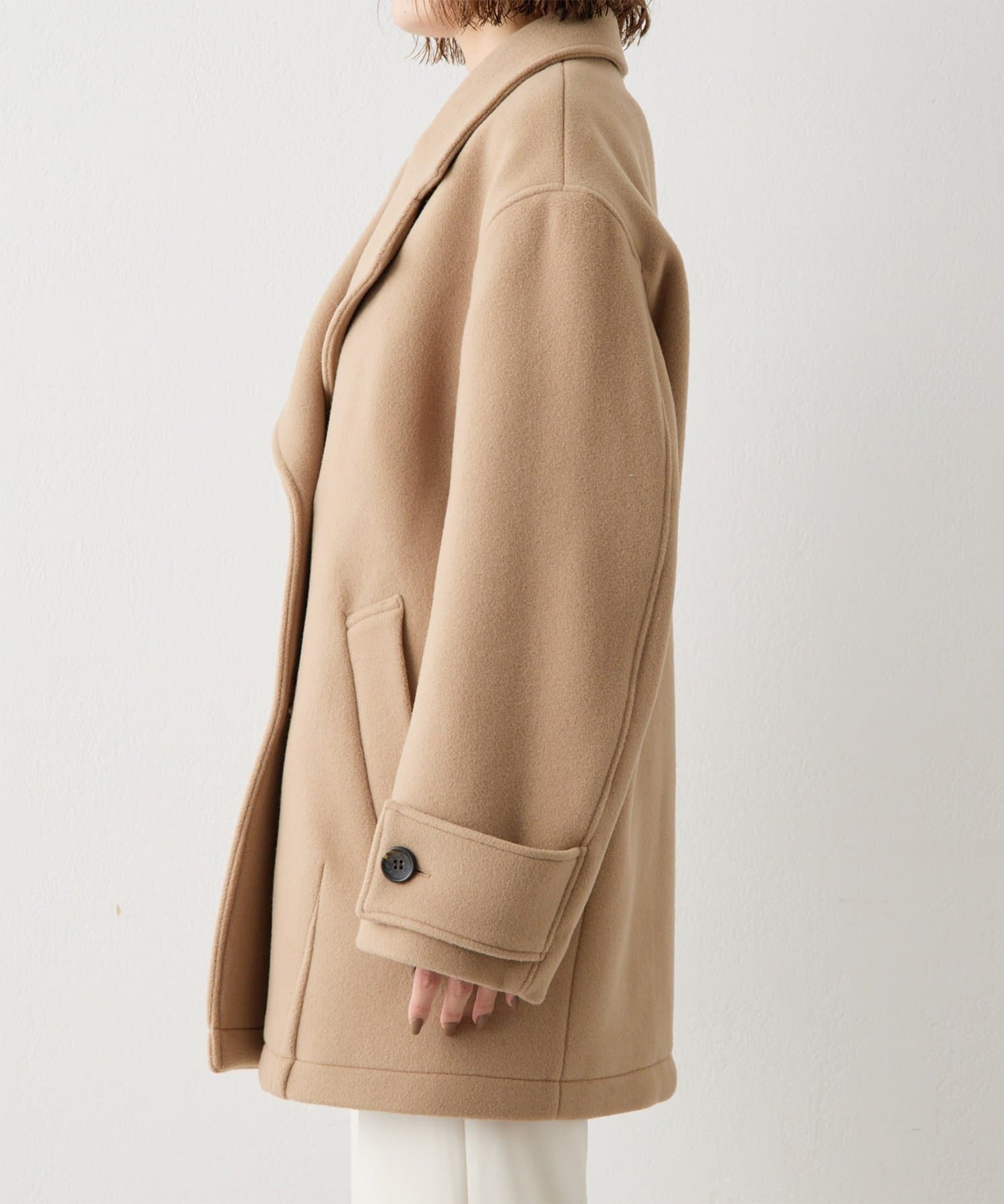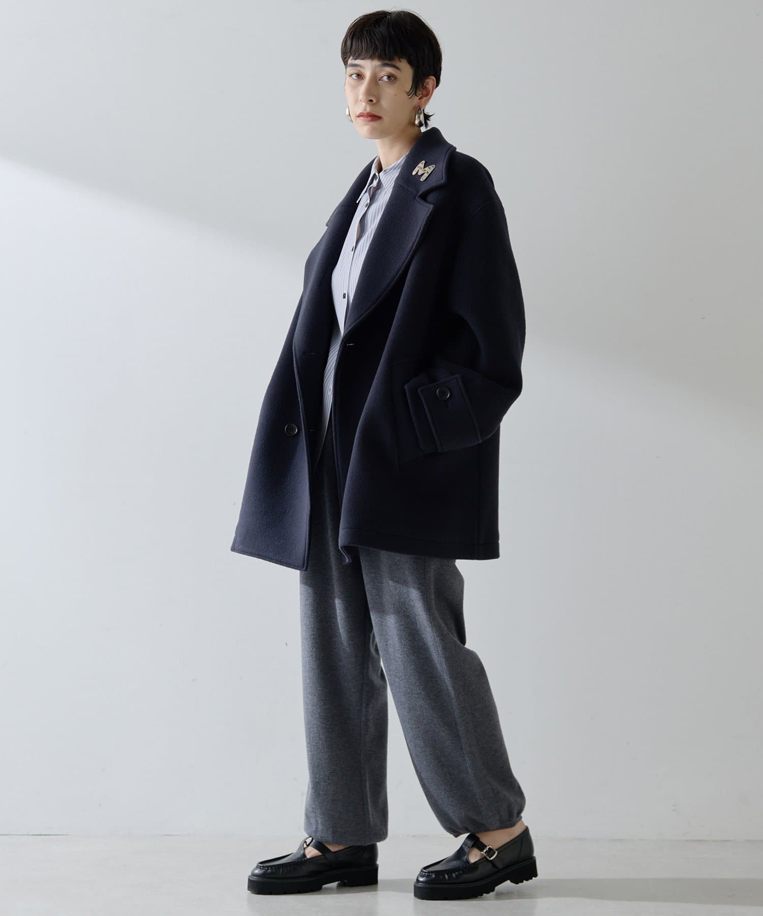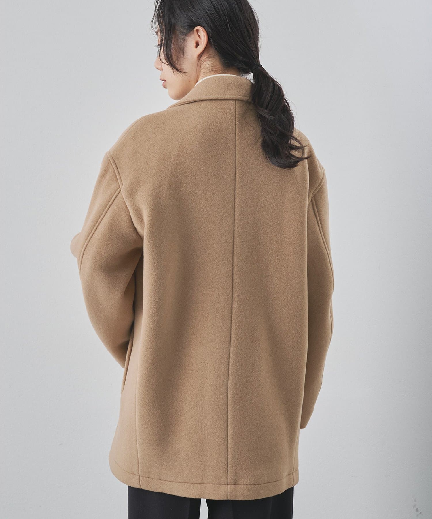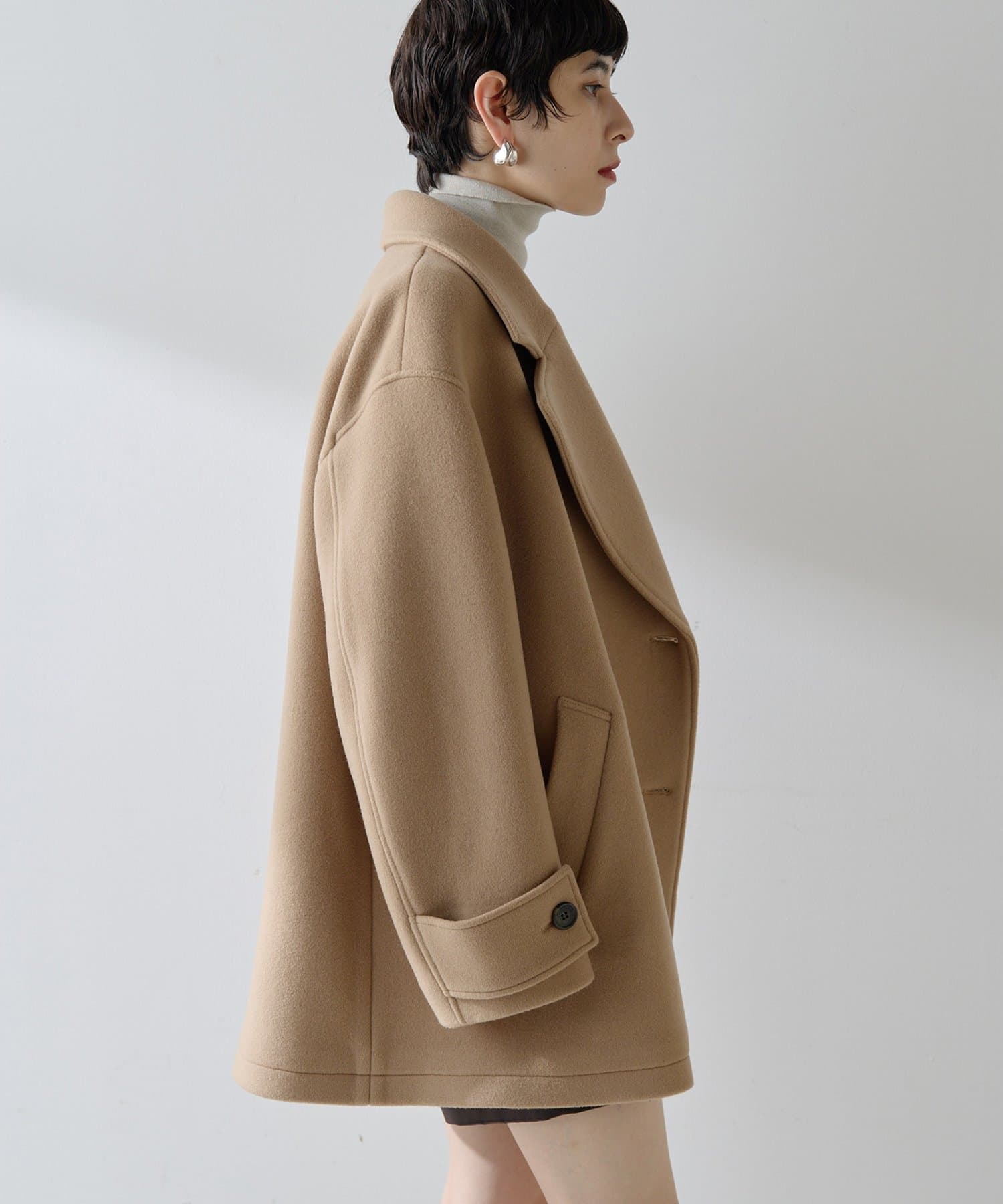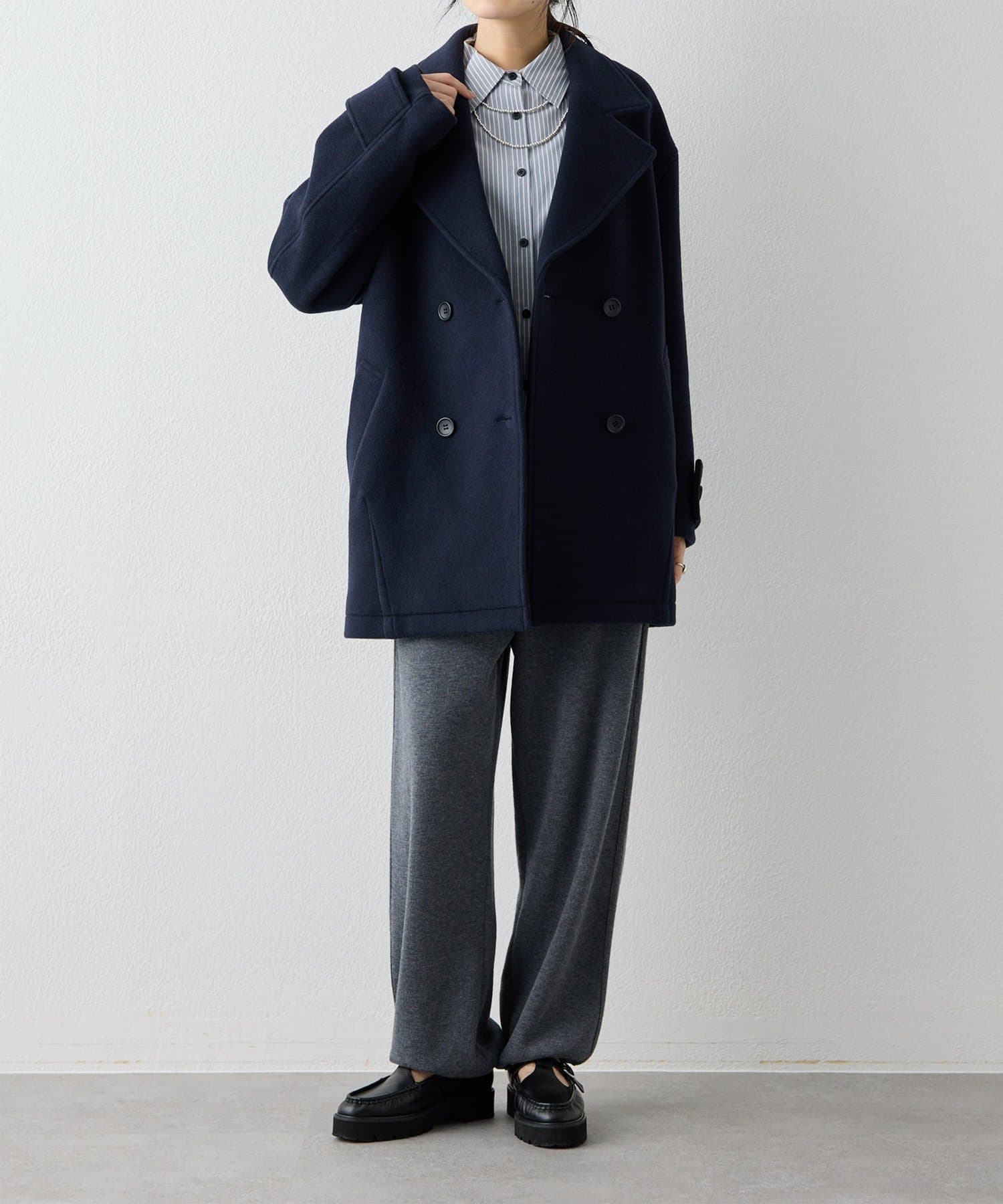 ■ミドル丈で仕上げたオーバーサイズのPコート。