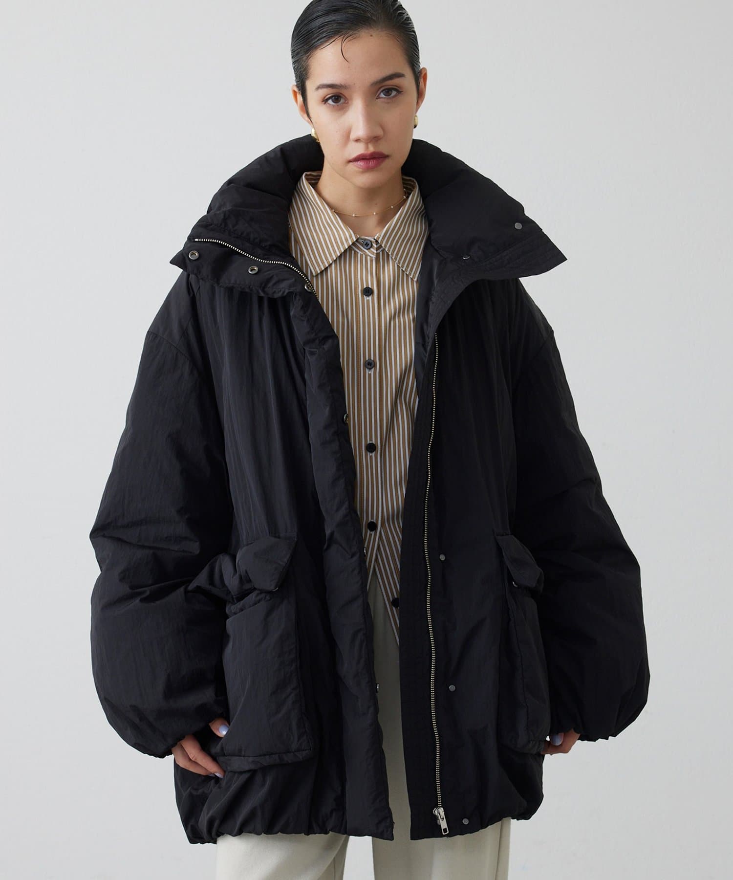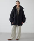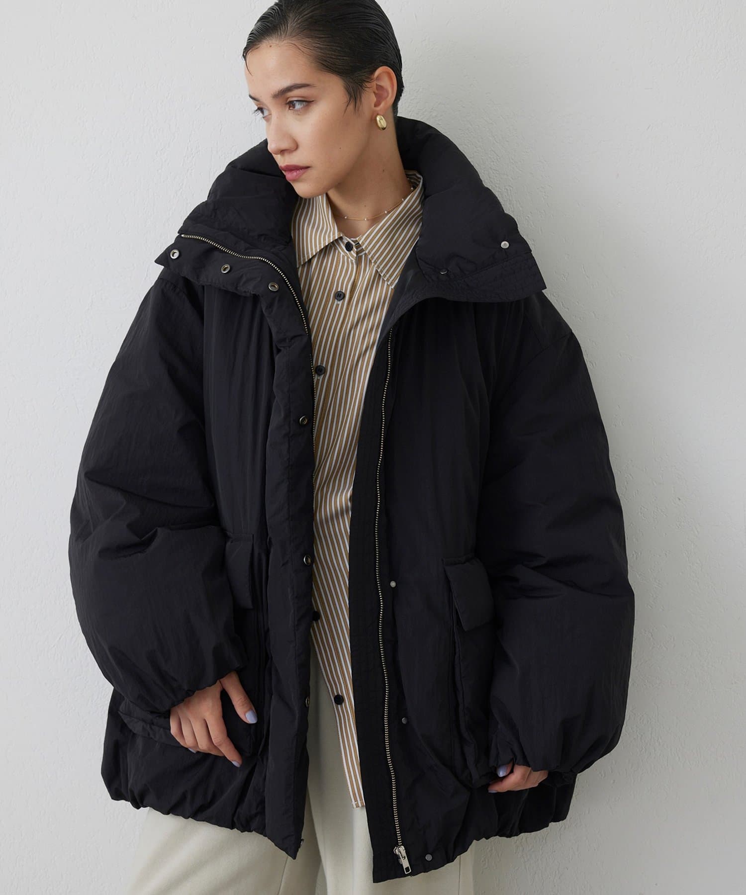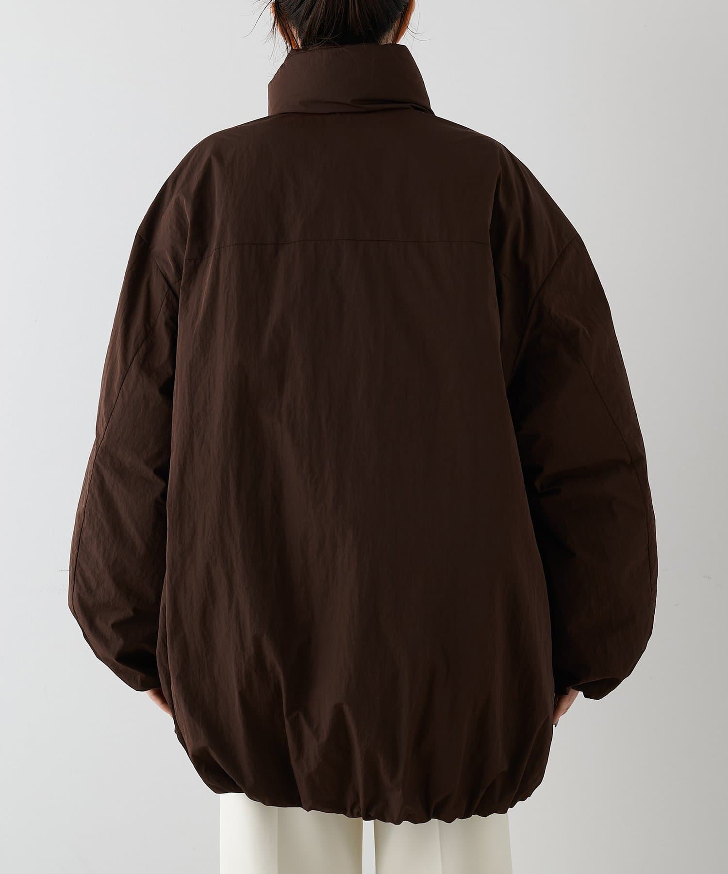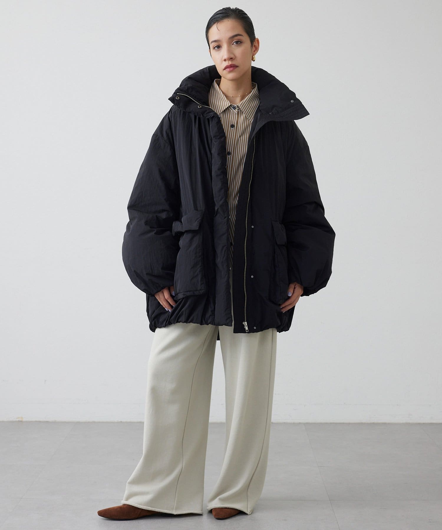 ■肩がすとんと落ちたドロップショルダーやすっきりとしたスタンドカラーで、立体的ながら着膨れしにくいバランスに。