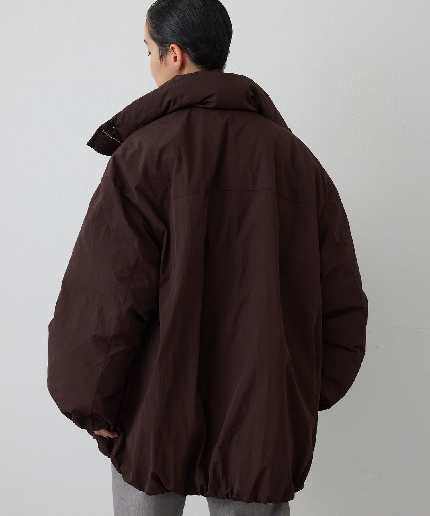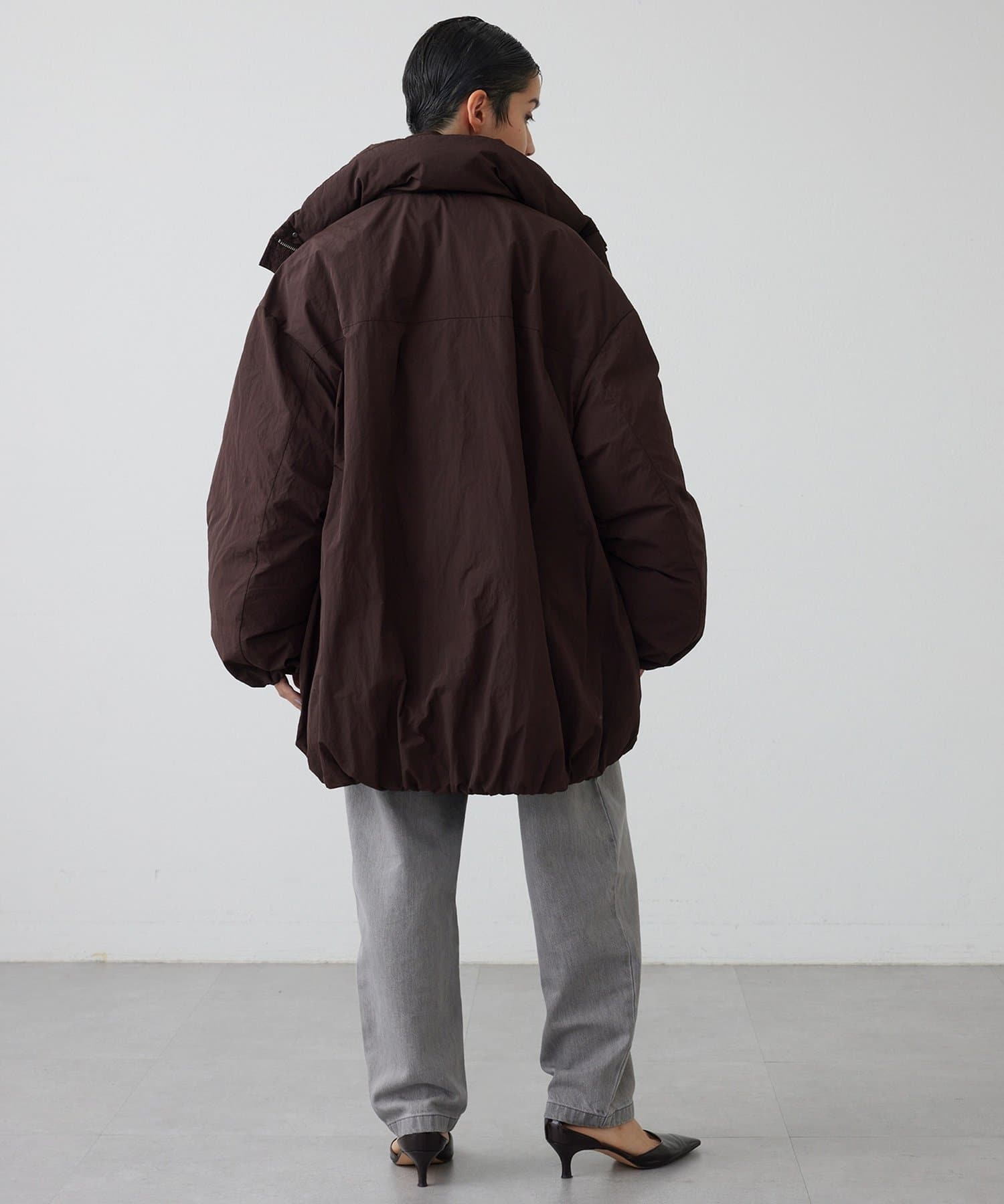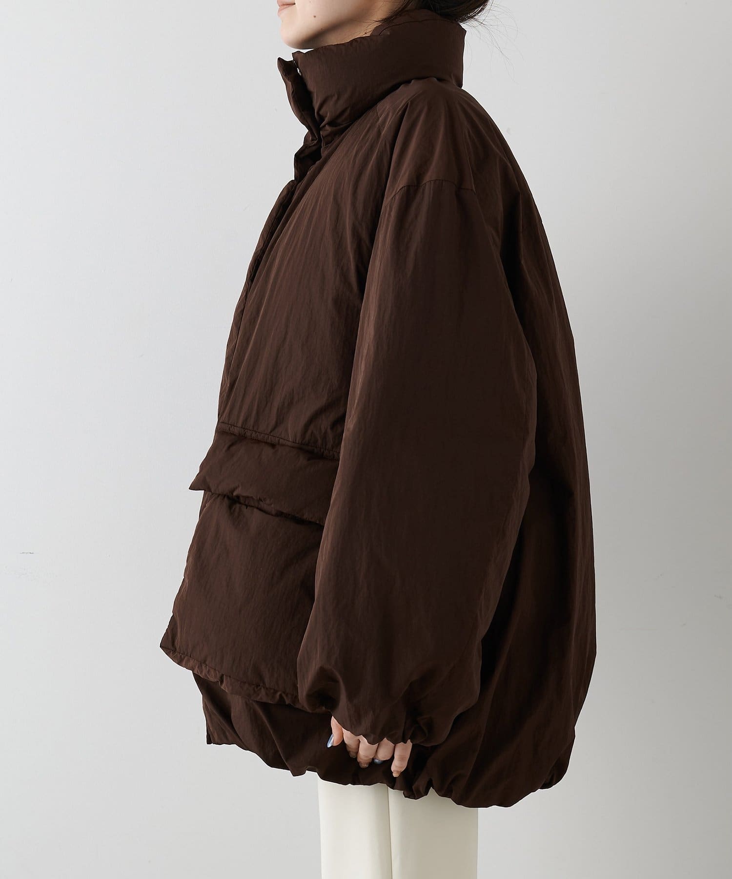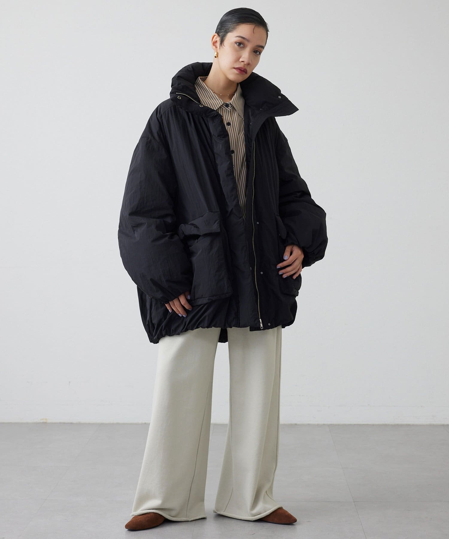 ■肩がすとんと落ちたドロップショルダーやすっきりとしたスタンドカラーで、立体的ながら着膨れしにくいバランスに。