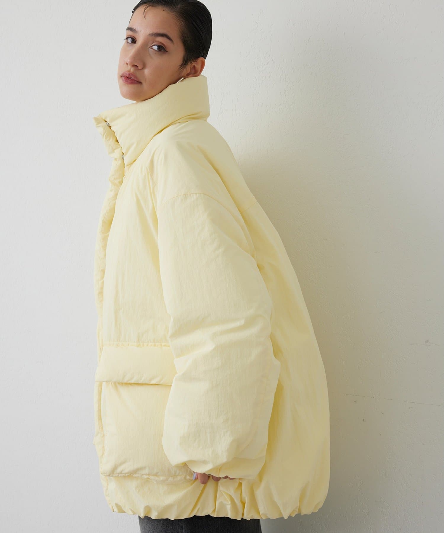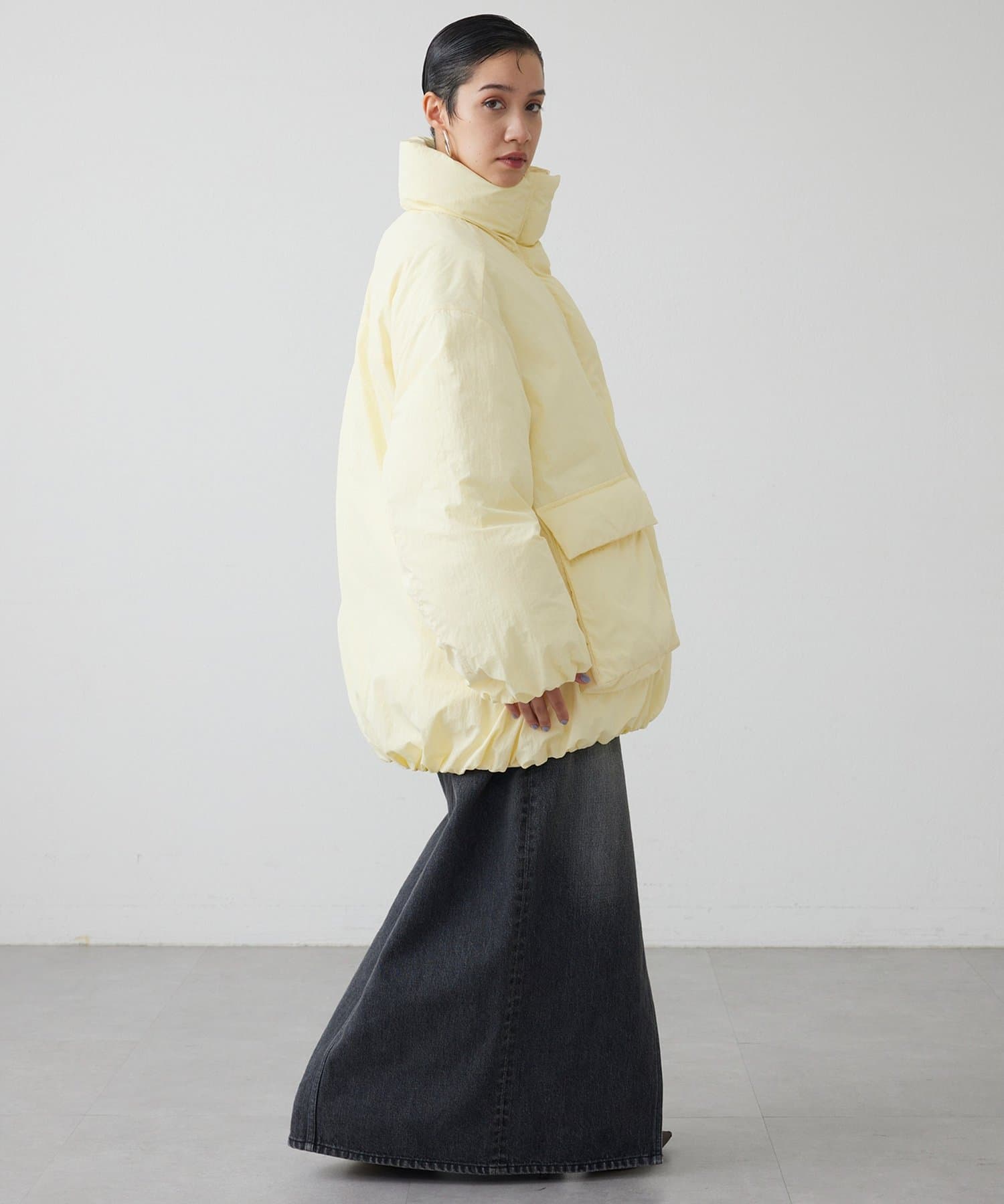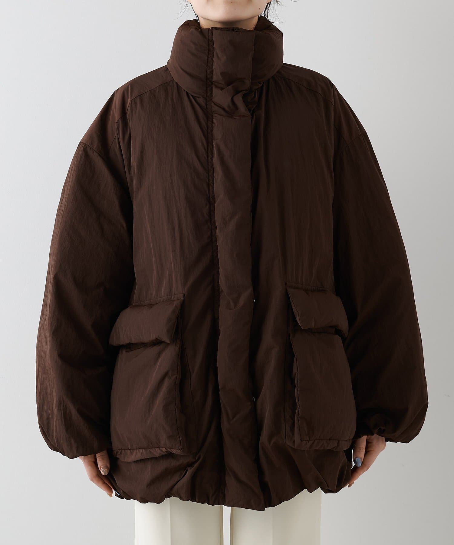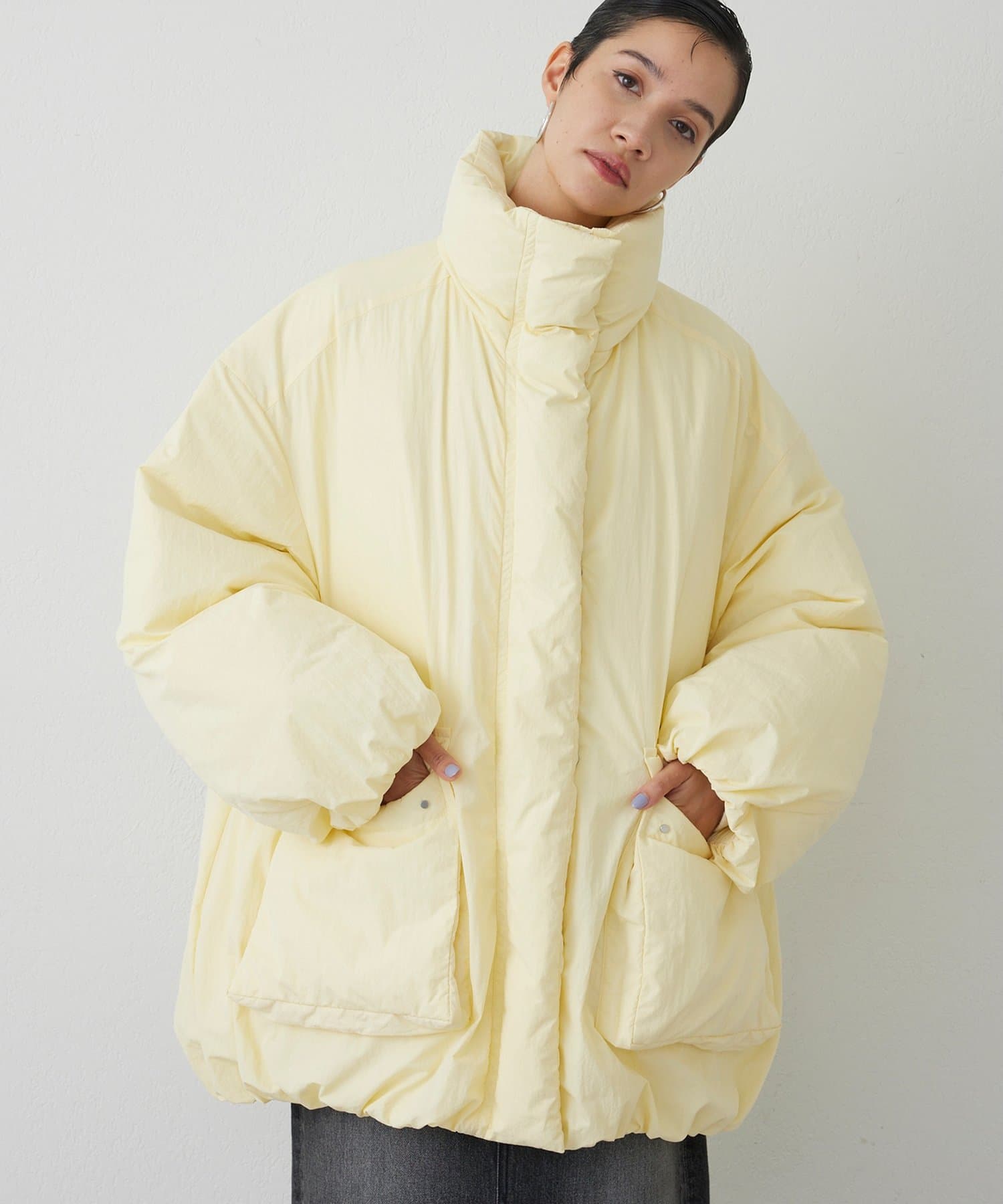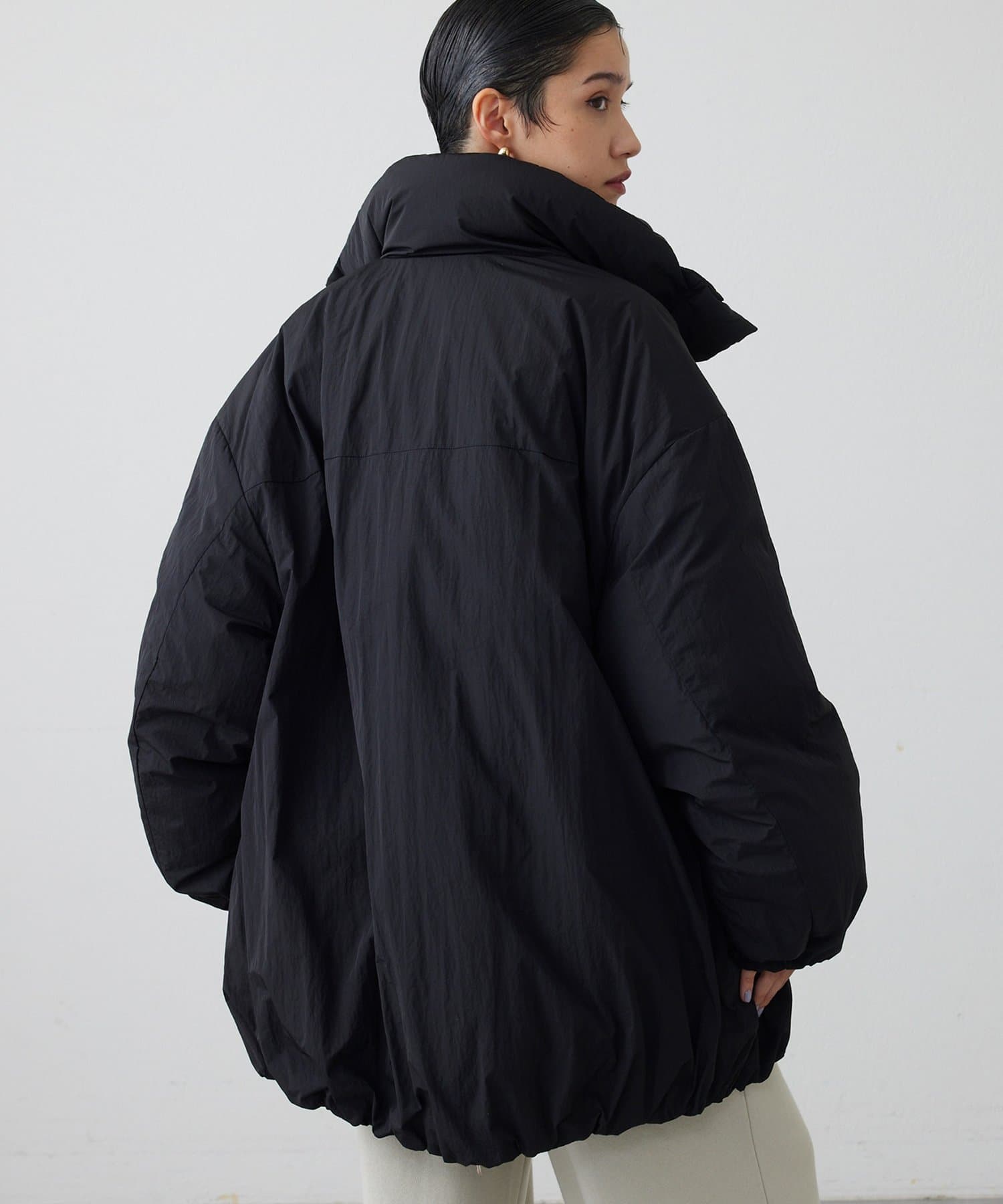 ■肩がすとんと落ちたドロップショルダーやすっきりとしたスタンドカラーで、立体的ながら着膨れしにくいバランスに。