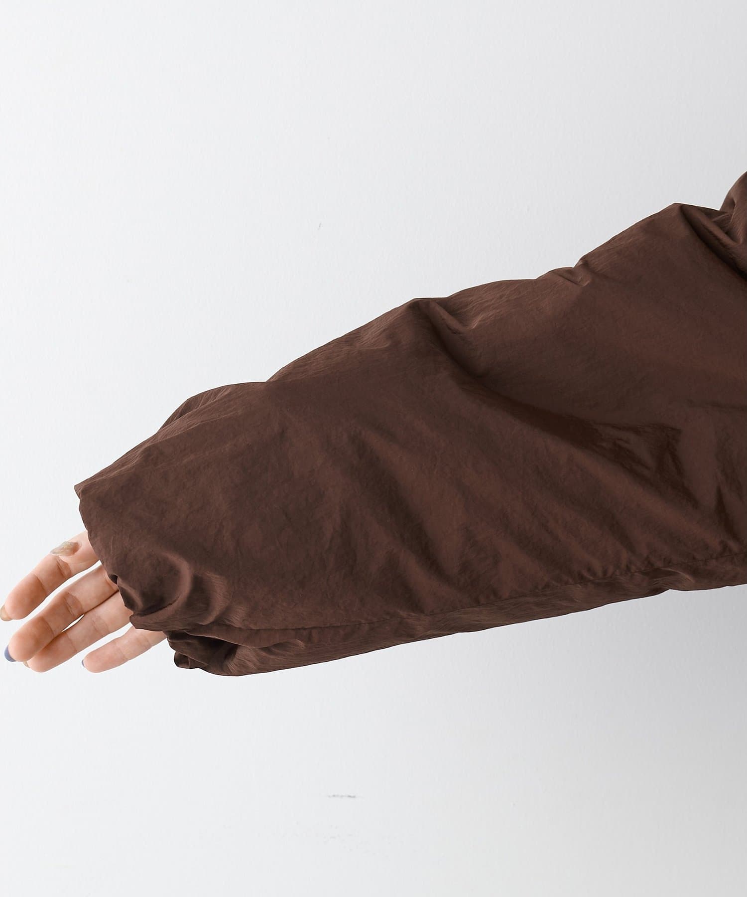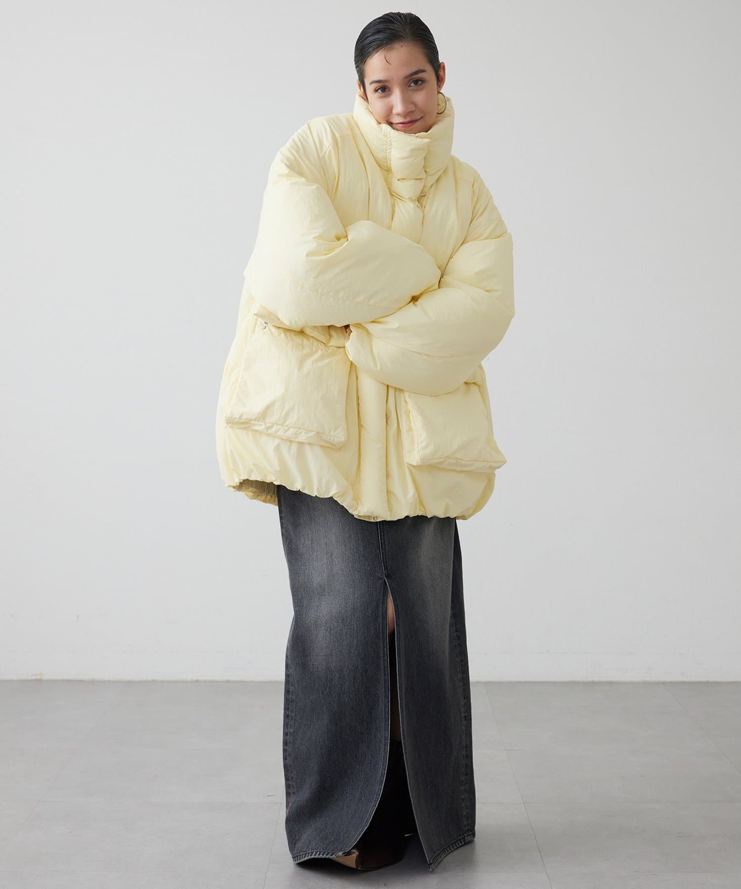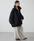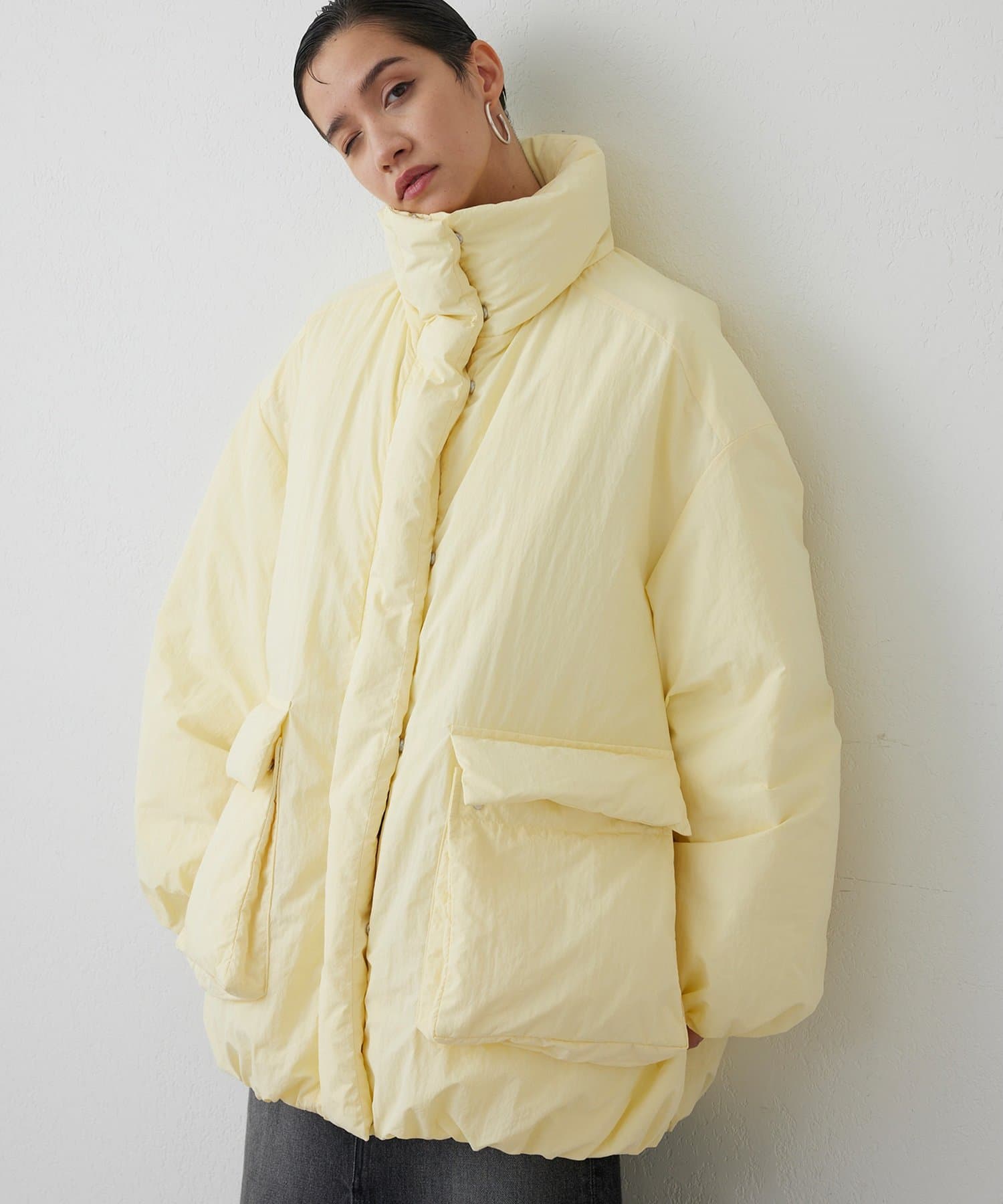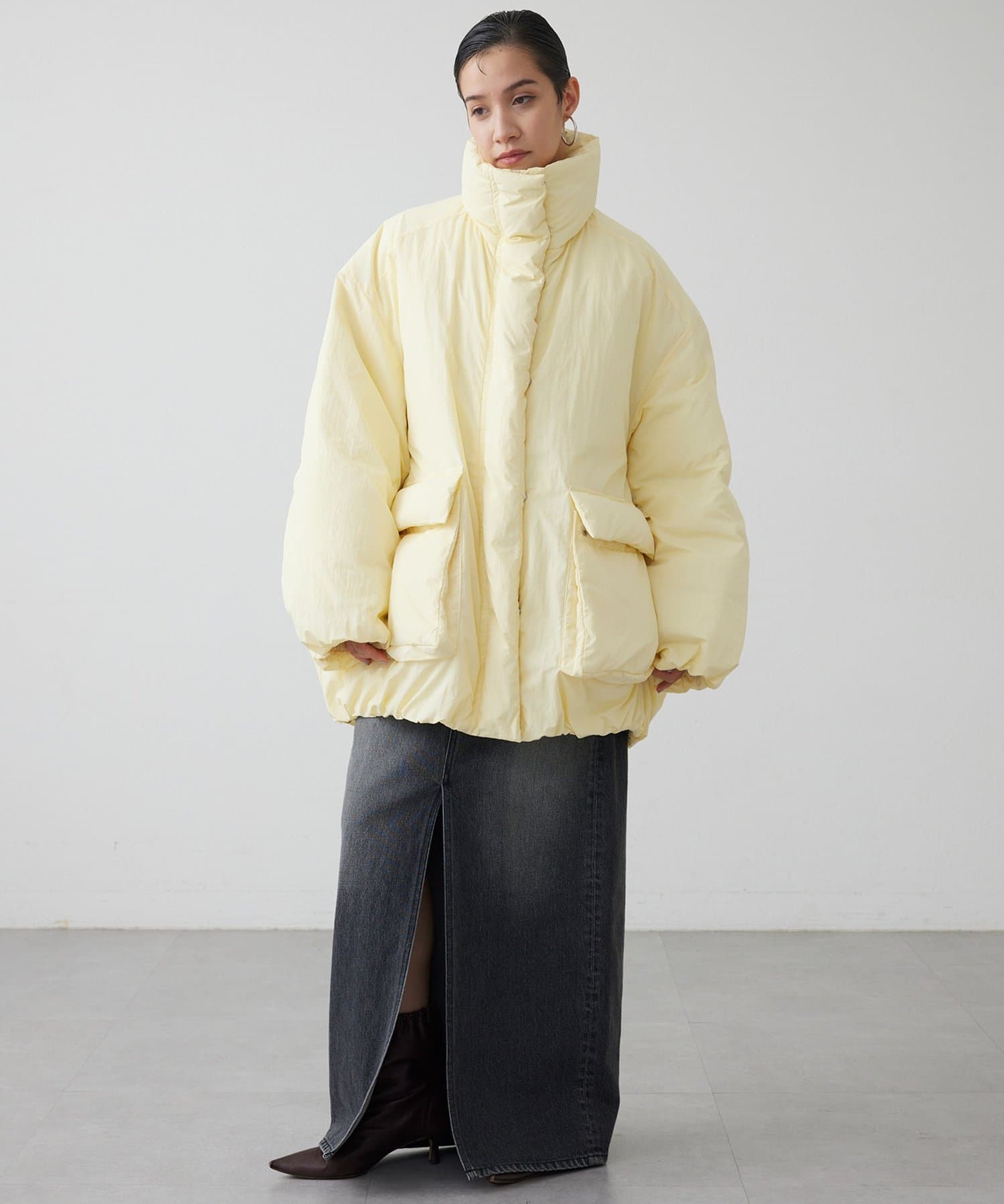 ■肩がすとんと落ちたドロップショルダーやすっきりとしたスタンドカラーで、立体的ながら着膨れしにくいバランスに。
