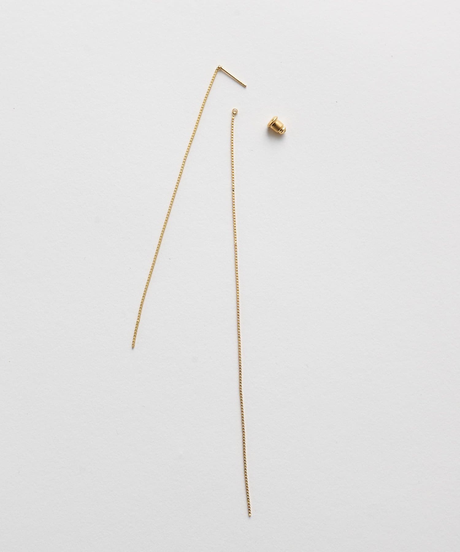 ■長いチェーンは取り外しでき、2本重ねて付ける以外にも、1本で付けたり、長いほうを耳裏に通して付けたりとアレンジ可能。