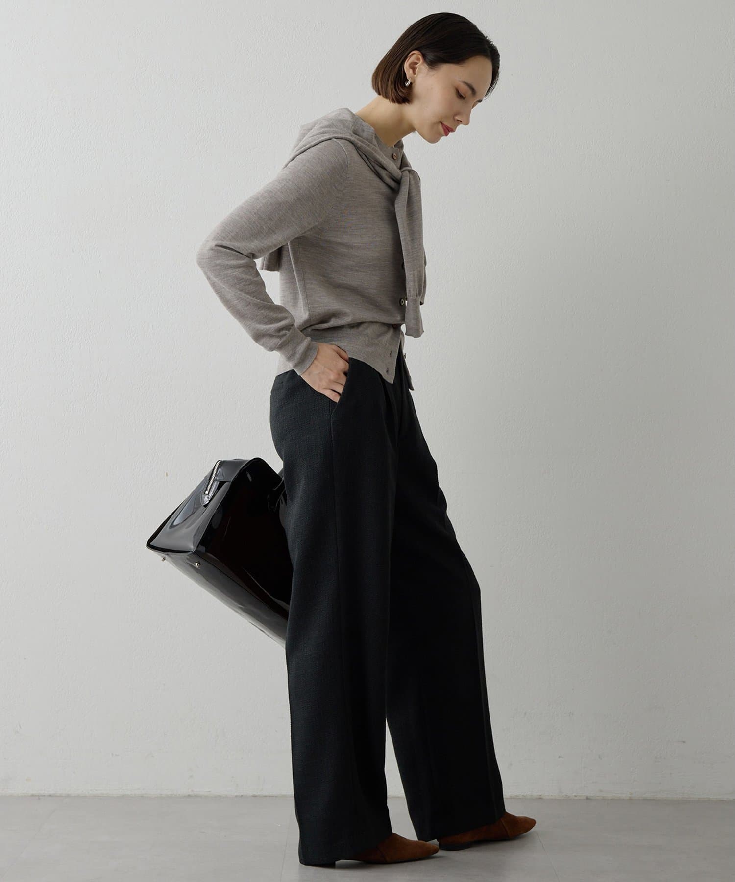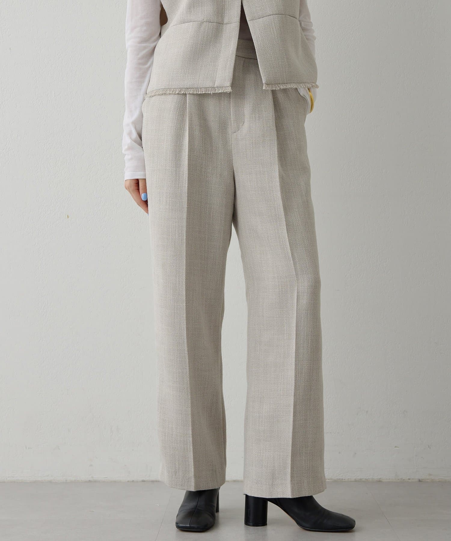 ■楽な履き心地ながら、ツイードの素材感とセンタープレスが上品な印象をプラス。